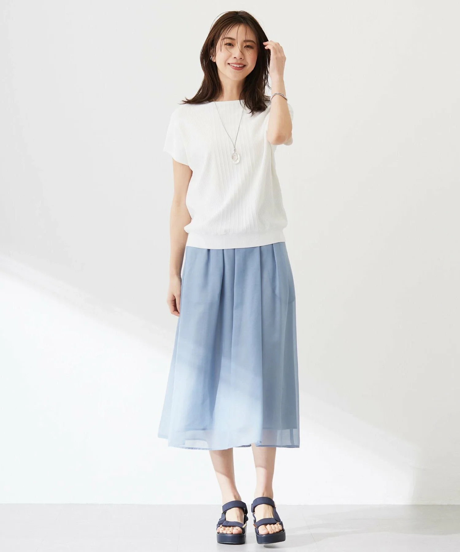 Эта юбка имеет заправленный спереди край для изысканного дизайна. Тонкий материал предотвращает образование складок на животе, создавая обтекаемый силуэт. Боковые молнии и эластичная резинка на поясе сзади обеспечивают удобную посадку. Удлиненная длина идеально подходит для создания элегантных образов. В этом году дизайн обновлен непрозрачной подкладкой. Юбка полностью на подкладке. Доступна в пяти цветах: легко сочетающийся светло-серый (#003), привлекательный оранжевый (#020), приглушенный темно-коричневый (#035), освежающий синий (#073) и базовый темно-синий (#075).
