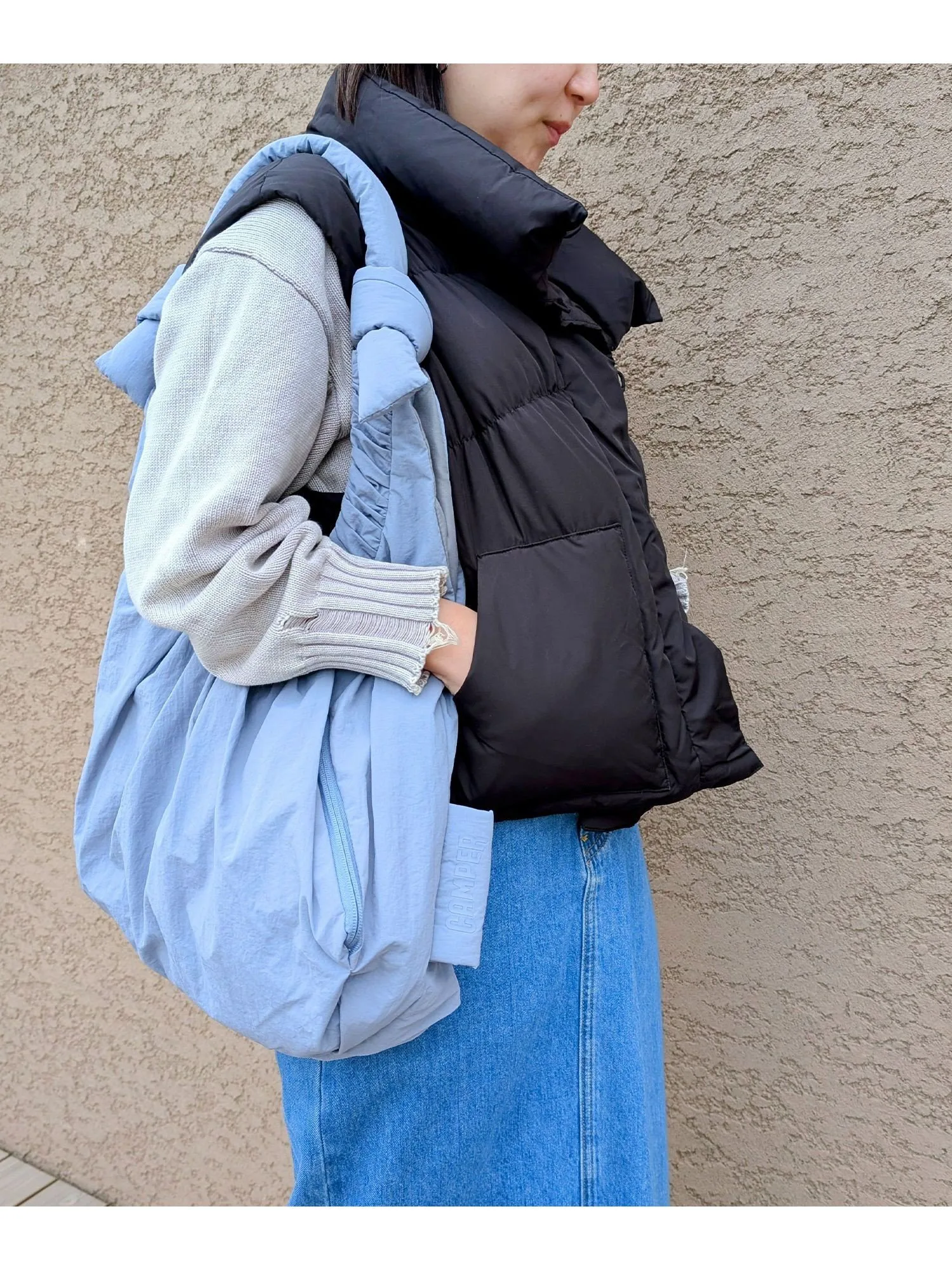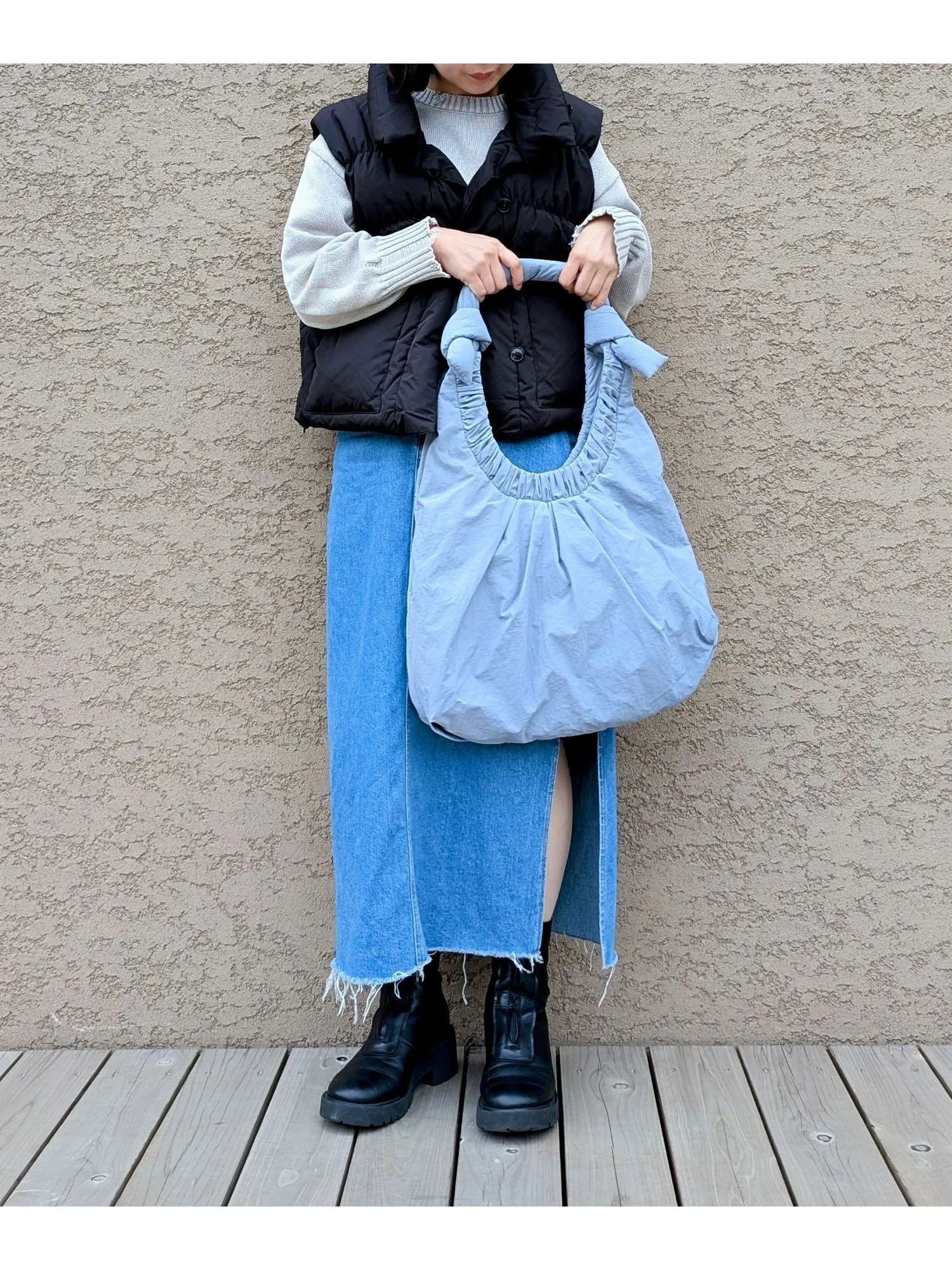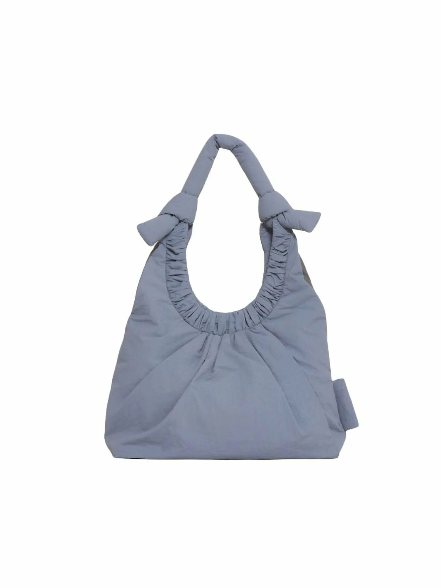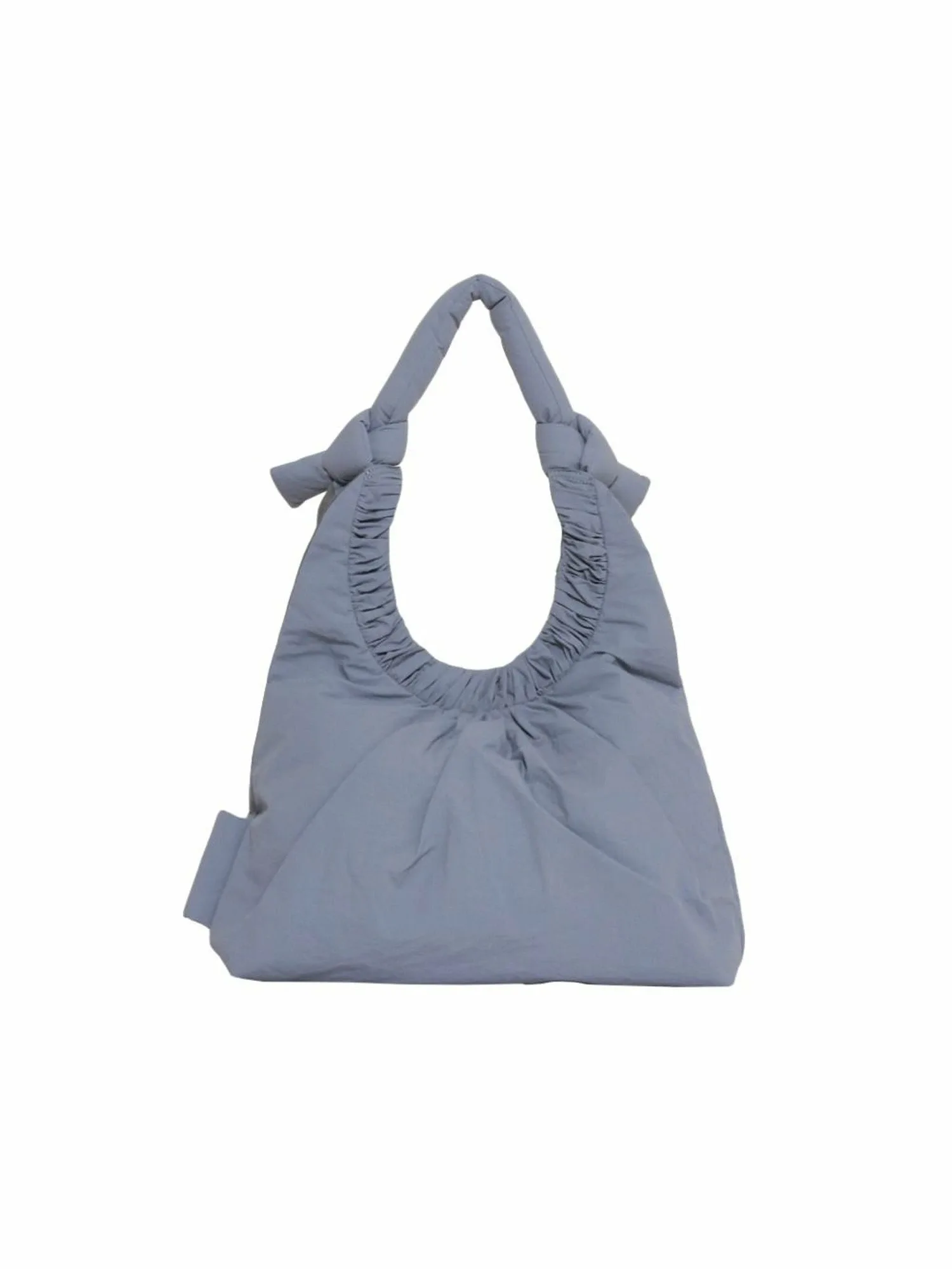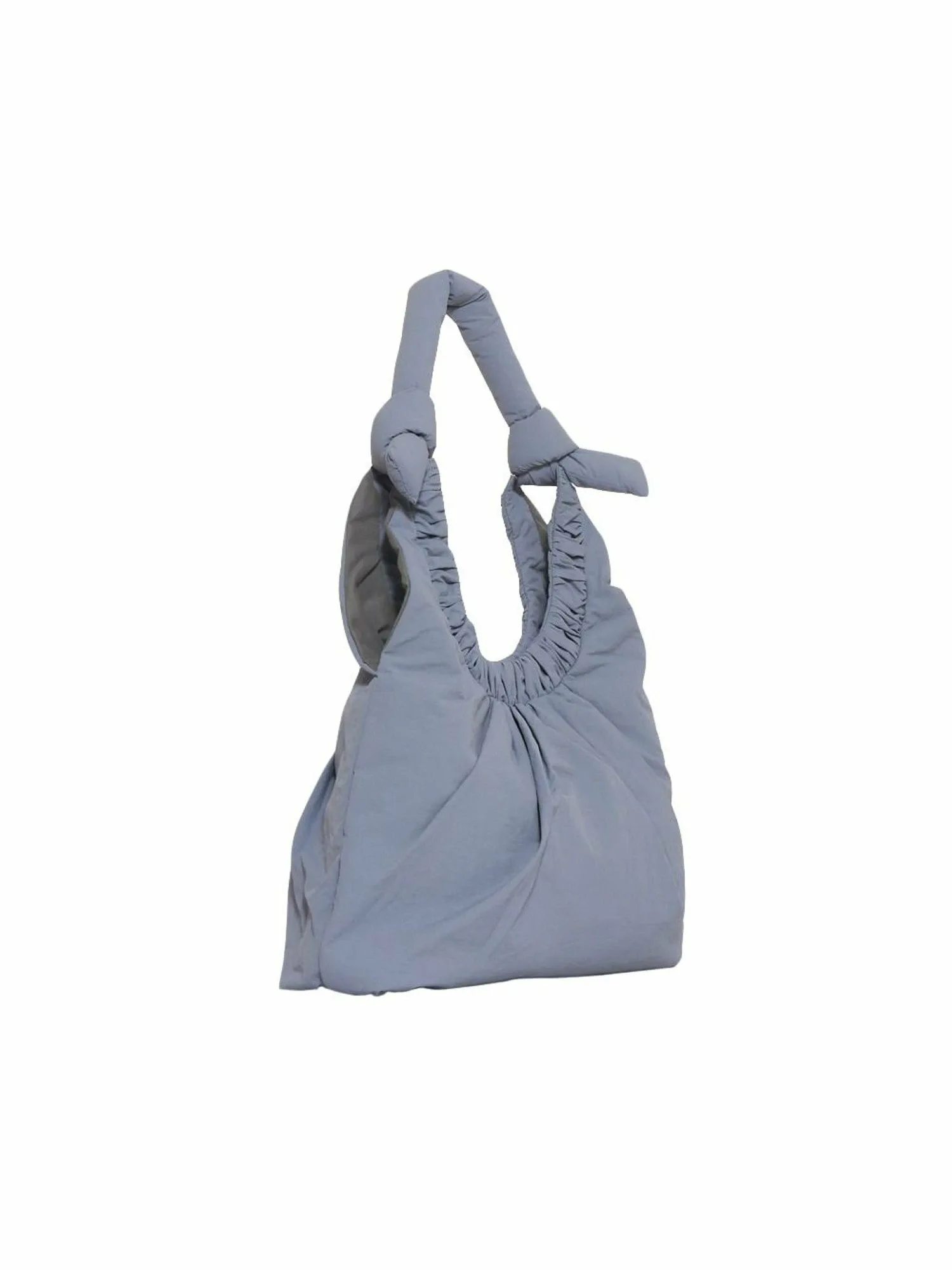 «NONA» — это сумка с присборенным дизайном в качестве главной особенности. Она вдохновлена складками, встречающимися в коллекции обуви. Изготовлена из выстиранного переработанного нейлона, что придает ей текстурированную поверхность. В плечевой ремень вставлена круглая подкладка для уменьшения нагрузки на плечо, а пышная форма также является дизайнерской особенностью. Внешний карман на молнии расположен вдоль линии складок, создавая дизайн, сочетающий функциональность и детали.