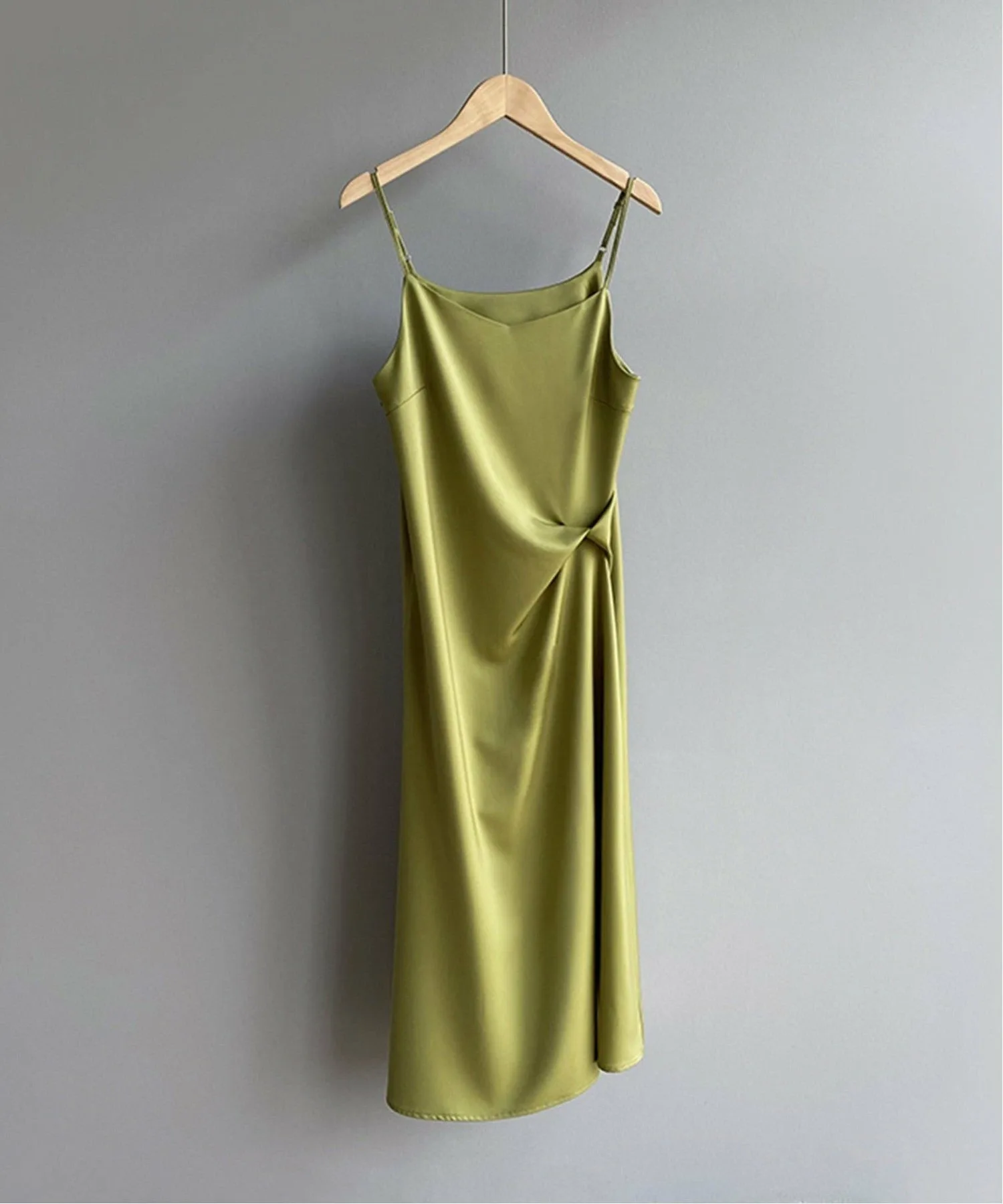 Дизайн создает впечатление, будто один кусок ткани обернут вокруг тела. Элегантный золотистый цвет шампанского излучает утонченное сияние.