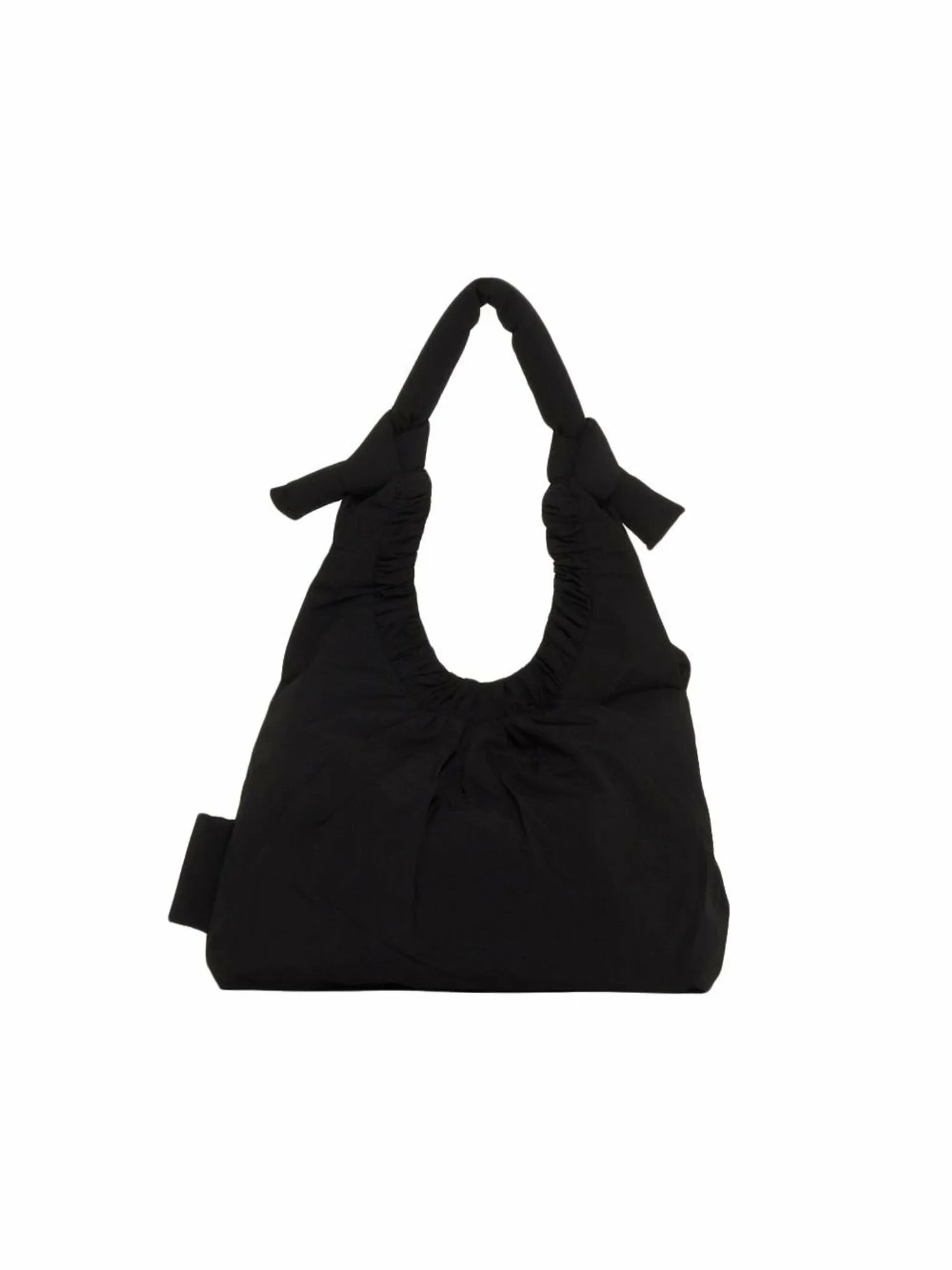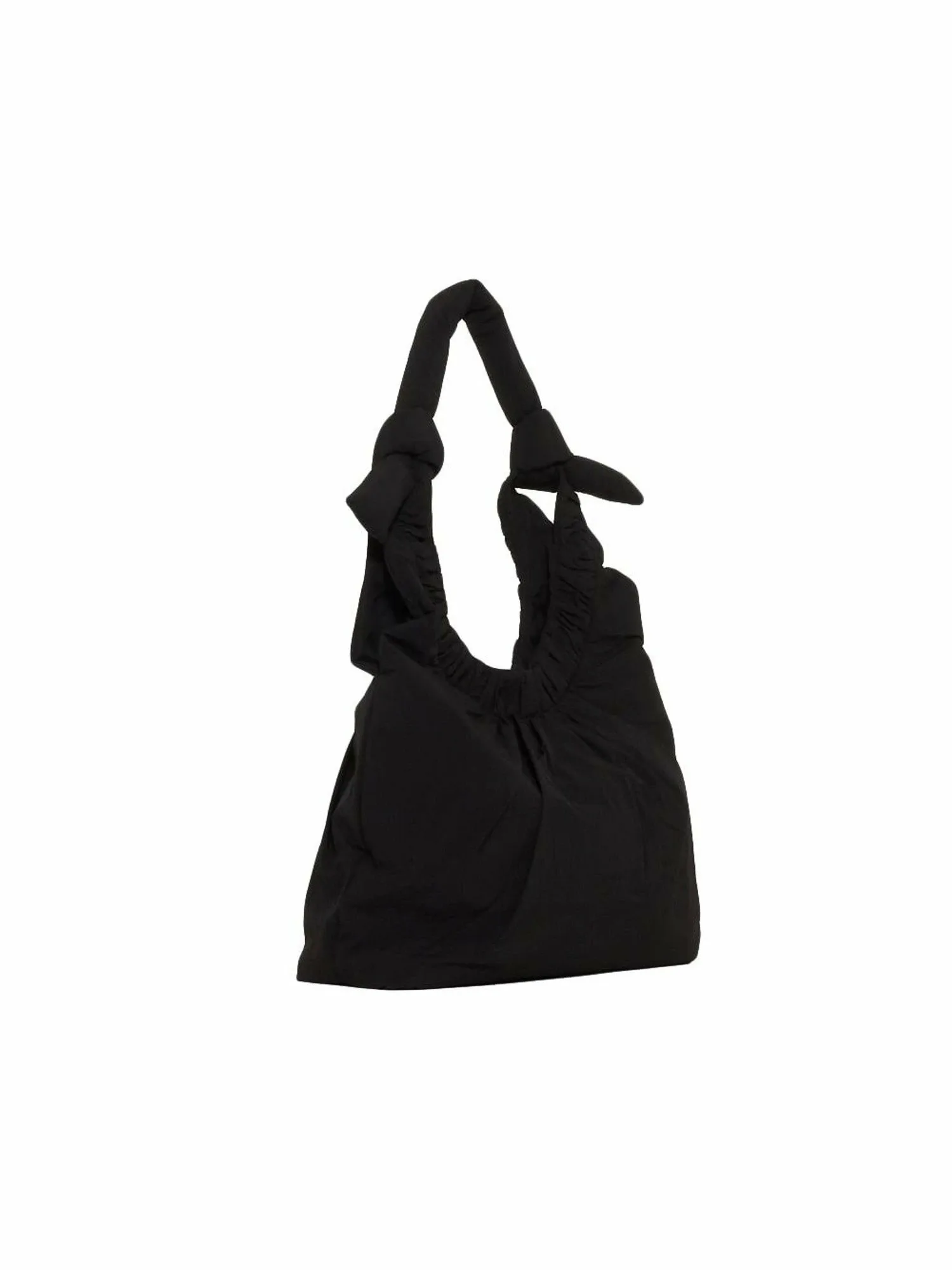 «NONA» — это сумка с присборенным дизайном в качестве главной особенности. Она вдохновлена складками, встречающимися в коллекции обуви. Изготовлена из выстиранного переработанного нейлона, что придает ей текстурированную поверхность. В плечевой ремень вставлена круглая подкладка для уменьшения нагрузки на плечо, а пышная форма также является дизайнерской особенностью. Внешний карман на молнии расположен вдоль линии складок, создавая дизайн, сочетающий функциональность и детали.