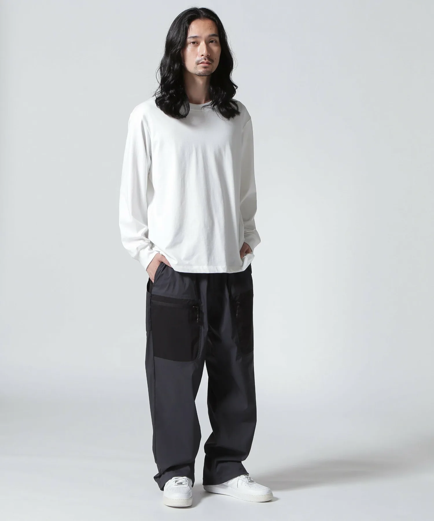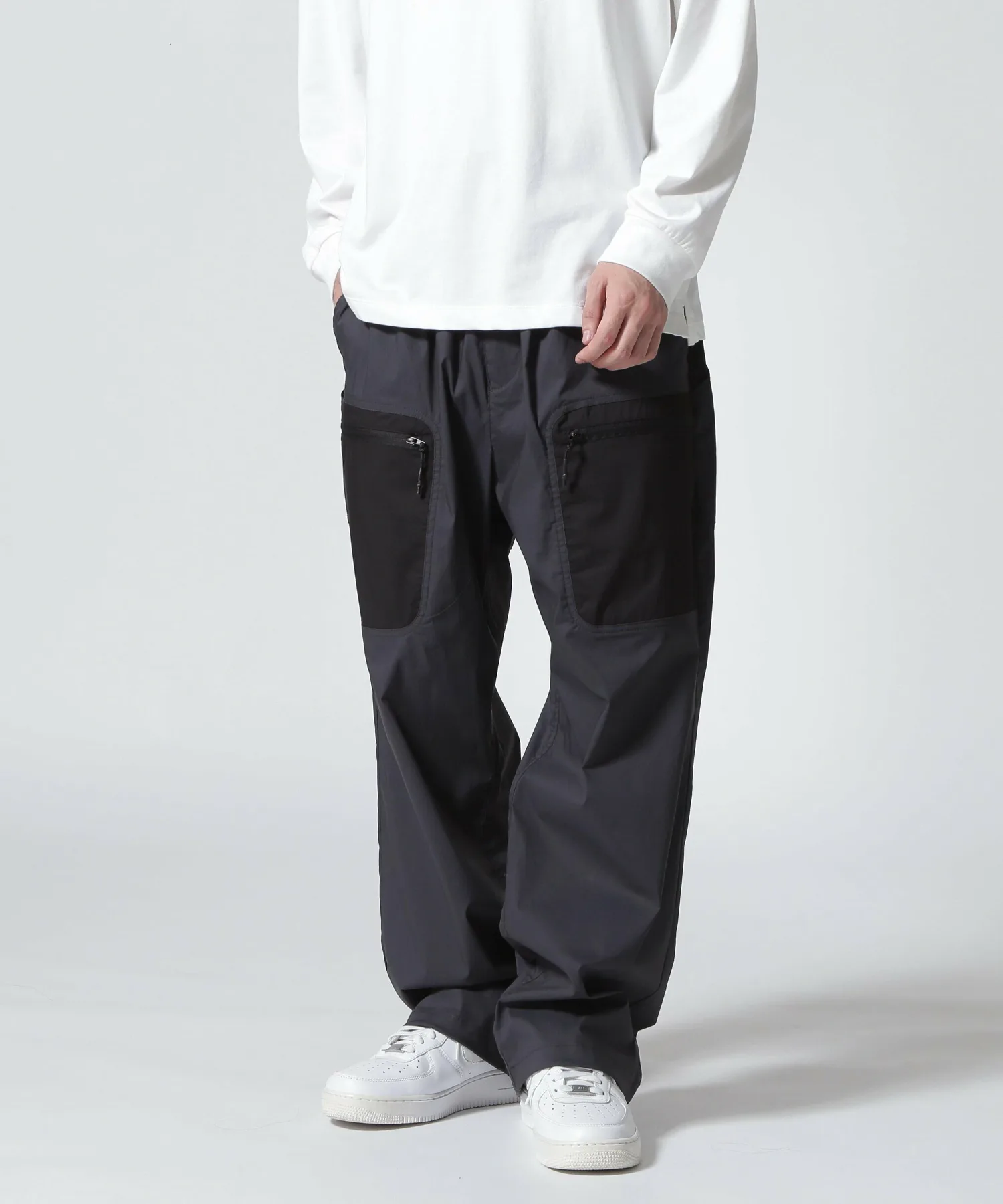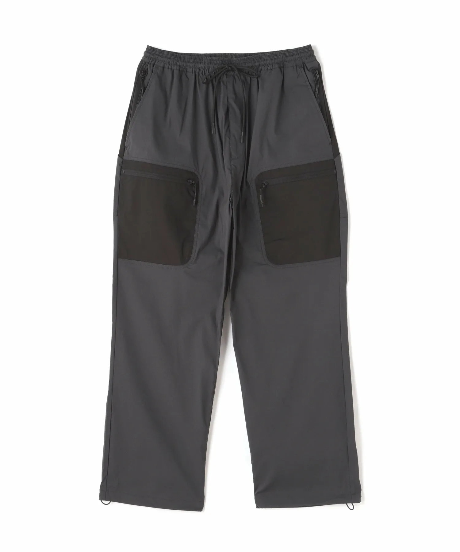 Низ брюк регулируется шнурком, позволяющим менять силуэт.