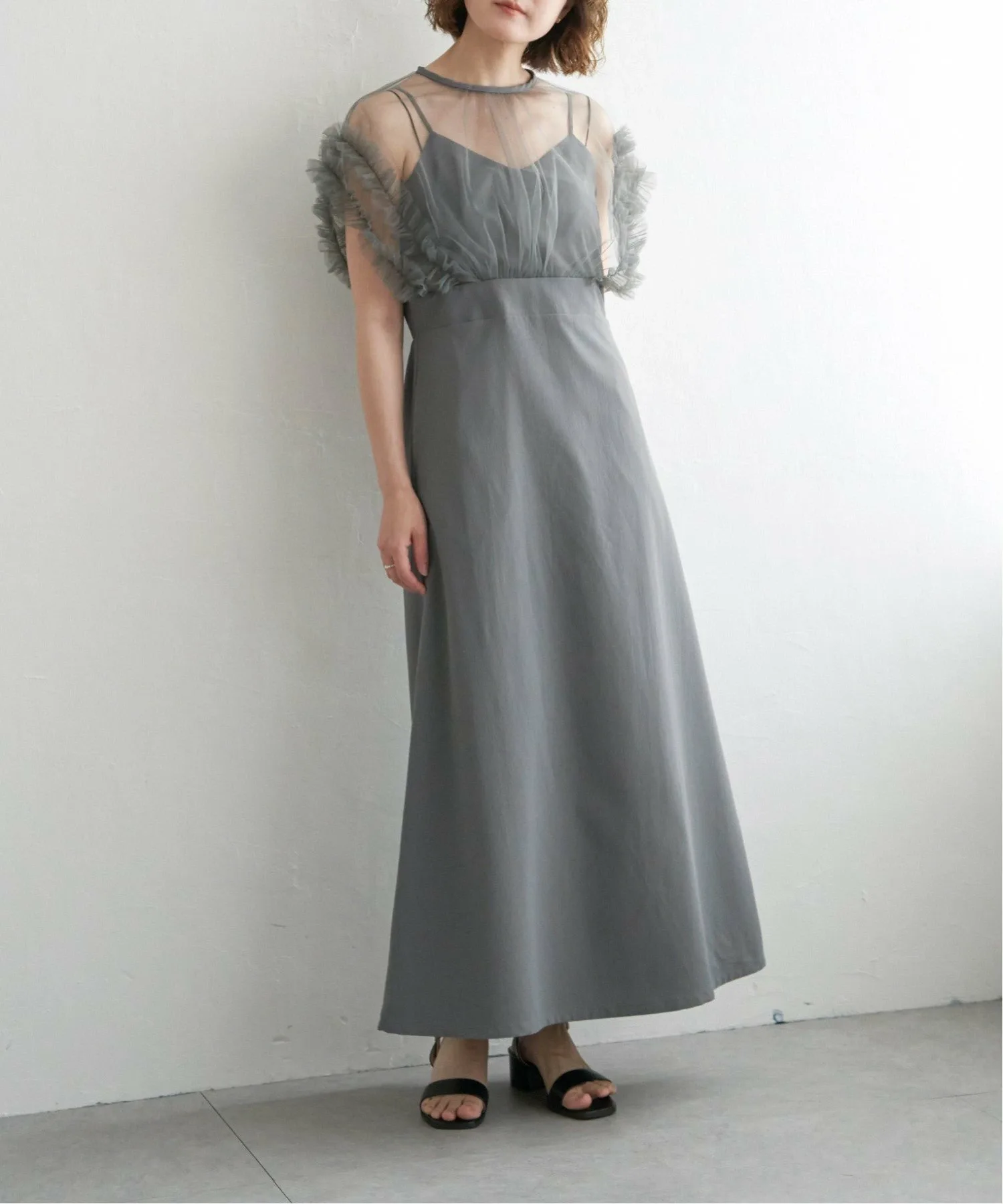 Основа — платье-комбинация с тюлевой отделкой сверху.