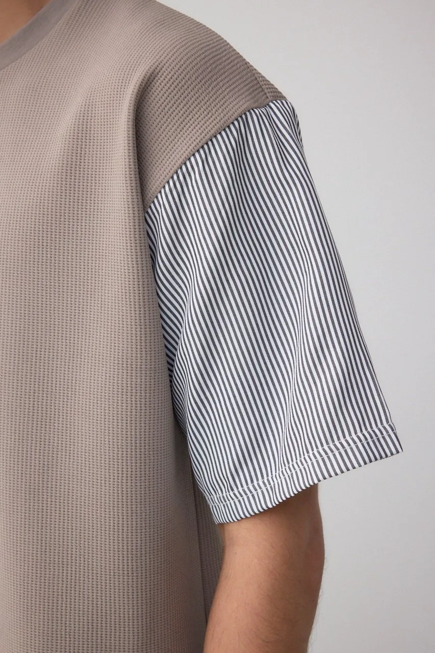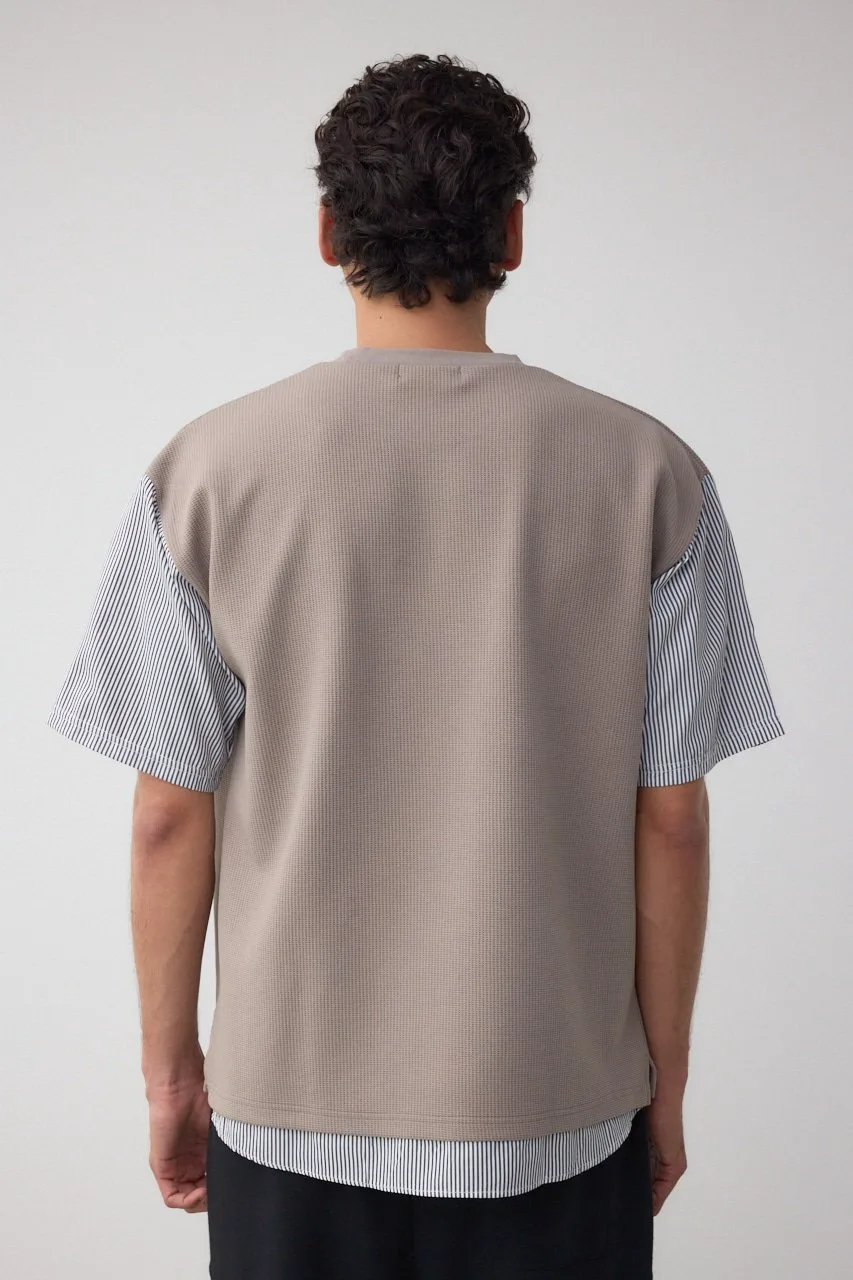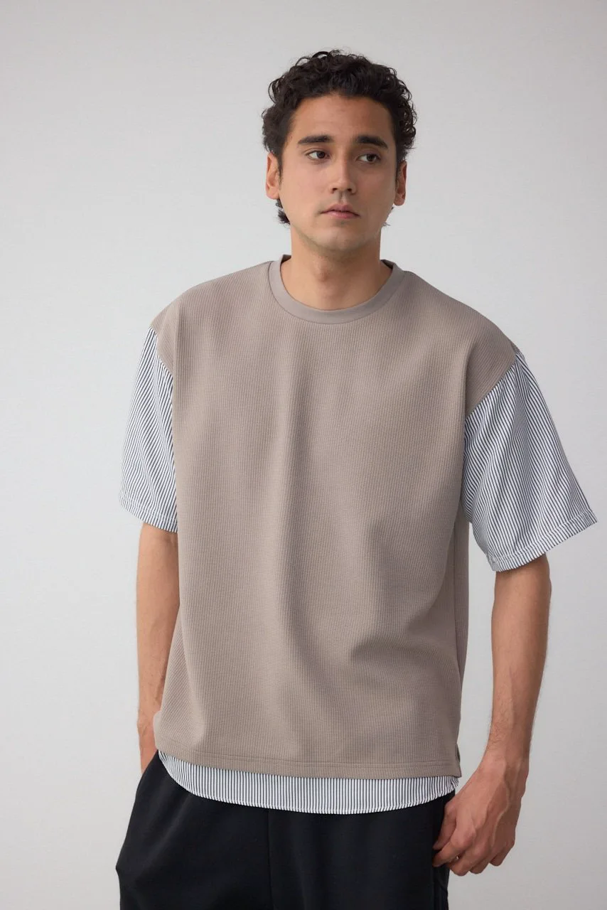 Рукава и нижний край рубашки пришиты к верхней части из фактурной ткани, что позволяет создать многослойный образ с помощью всего одной вещи.