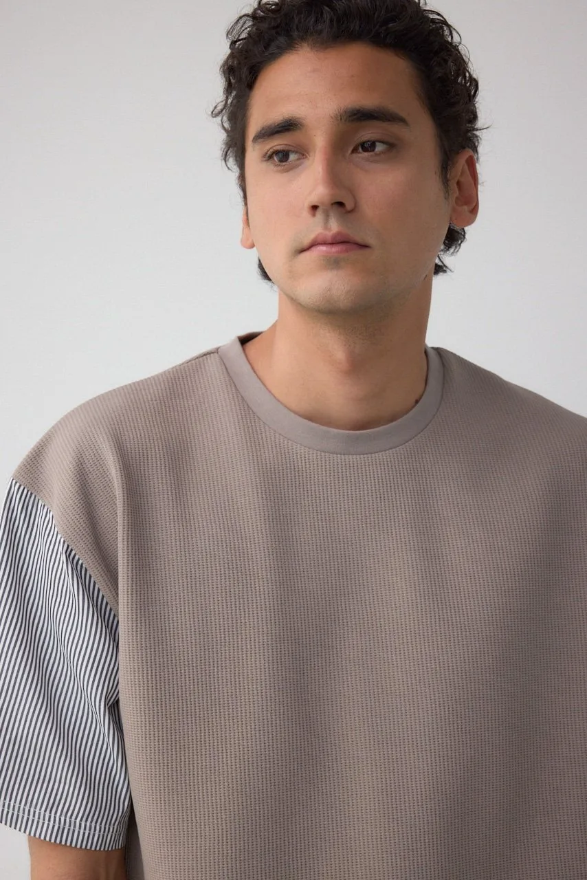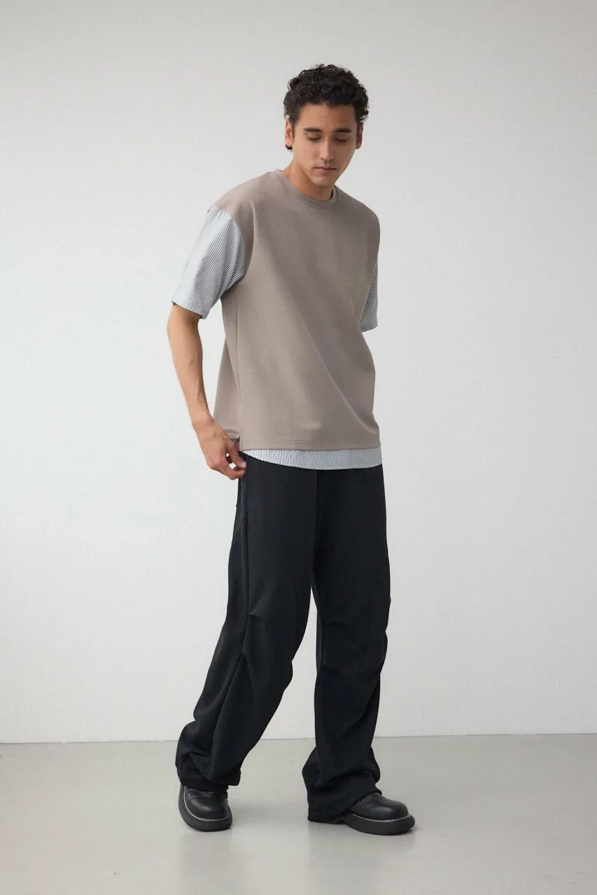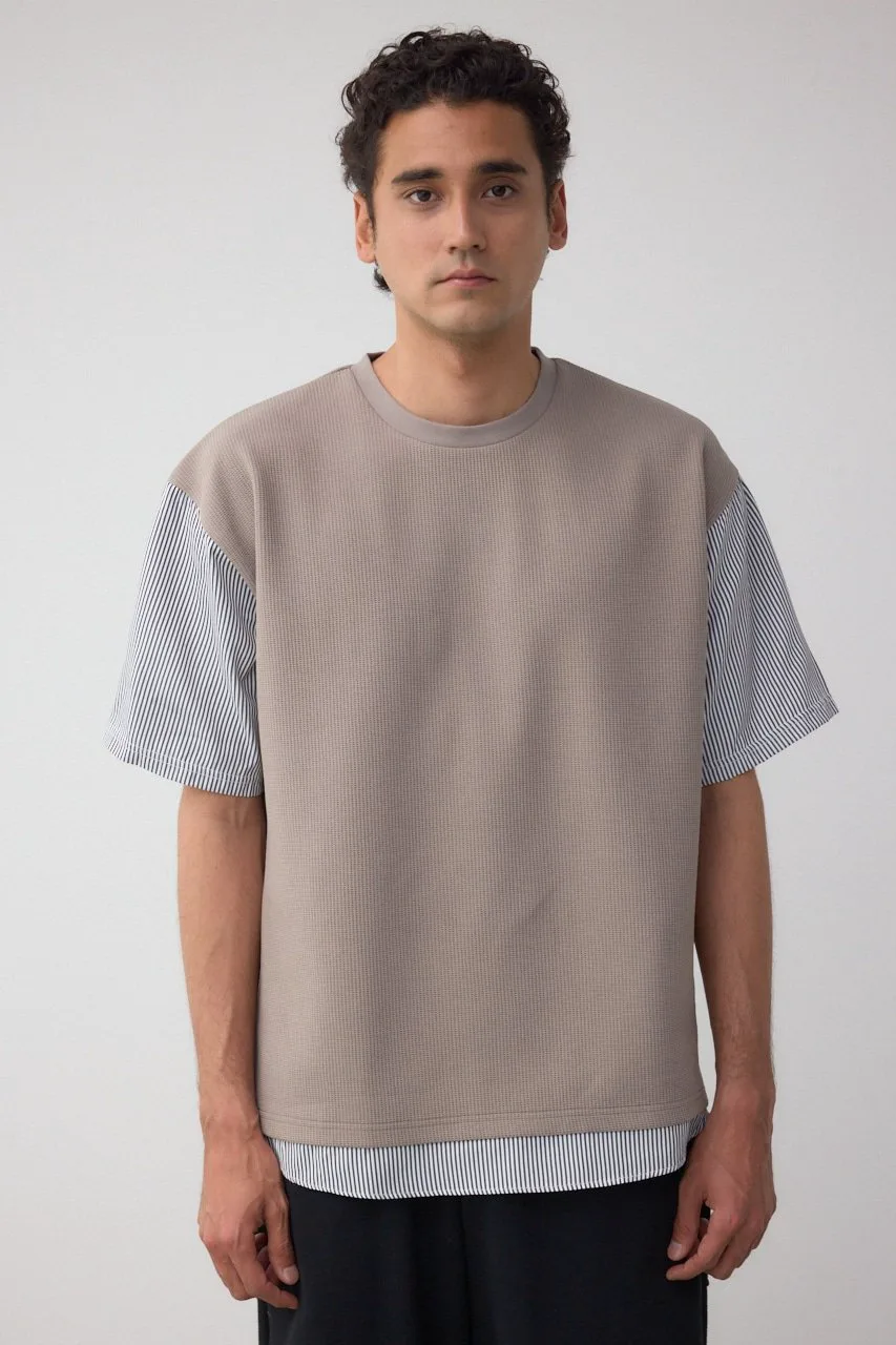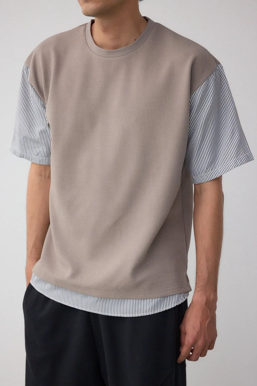 Рукава и нижний край рубашки пришиты к верхней части из фактурной ткани, что позволяет создать многослойный образ с помощью всего одной вещи.