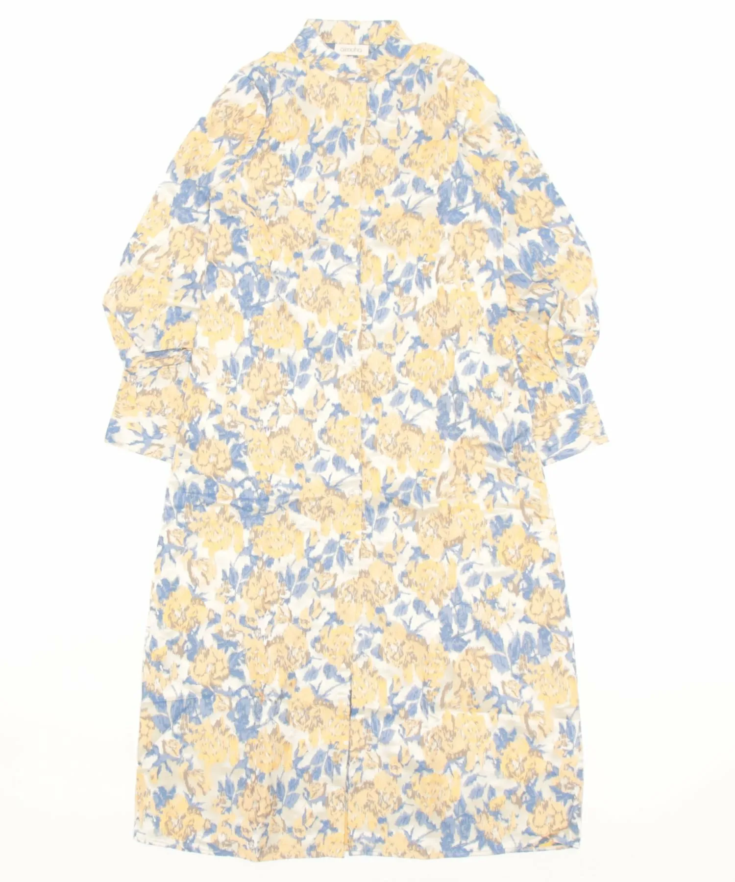 Стильное платье-рубашка А-силуэта с рукавами-фонариками в корейском стиле, изготовленное из смесовой хлопковой ткани и красочного жаккардового полотна с тиснением.