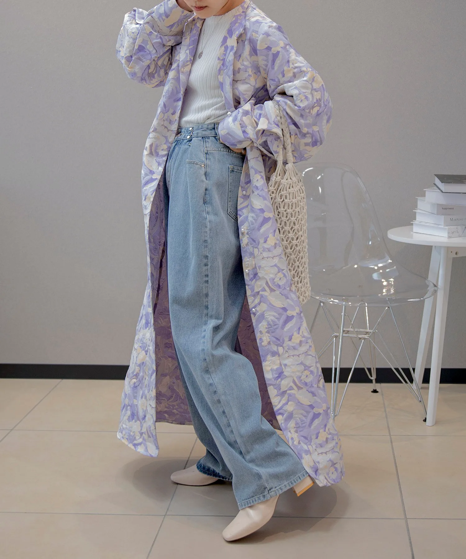 Стильное платье-рубашка А-силуэта с рукавами-фонариками в корейском стиле, изготовленное из смесовой хлопковой ткани и красочного жаккардового полотна с тиснением.