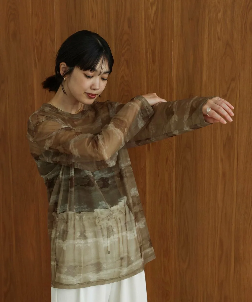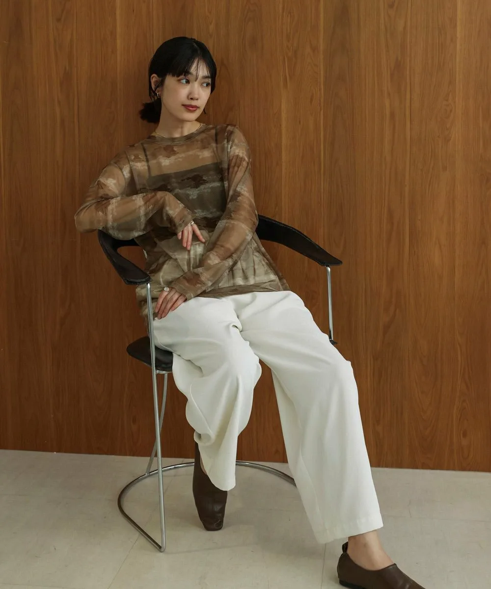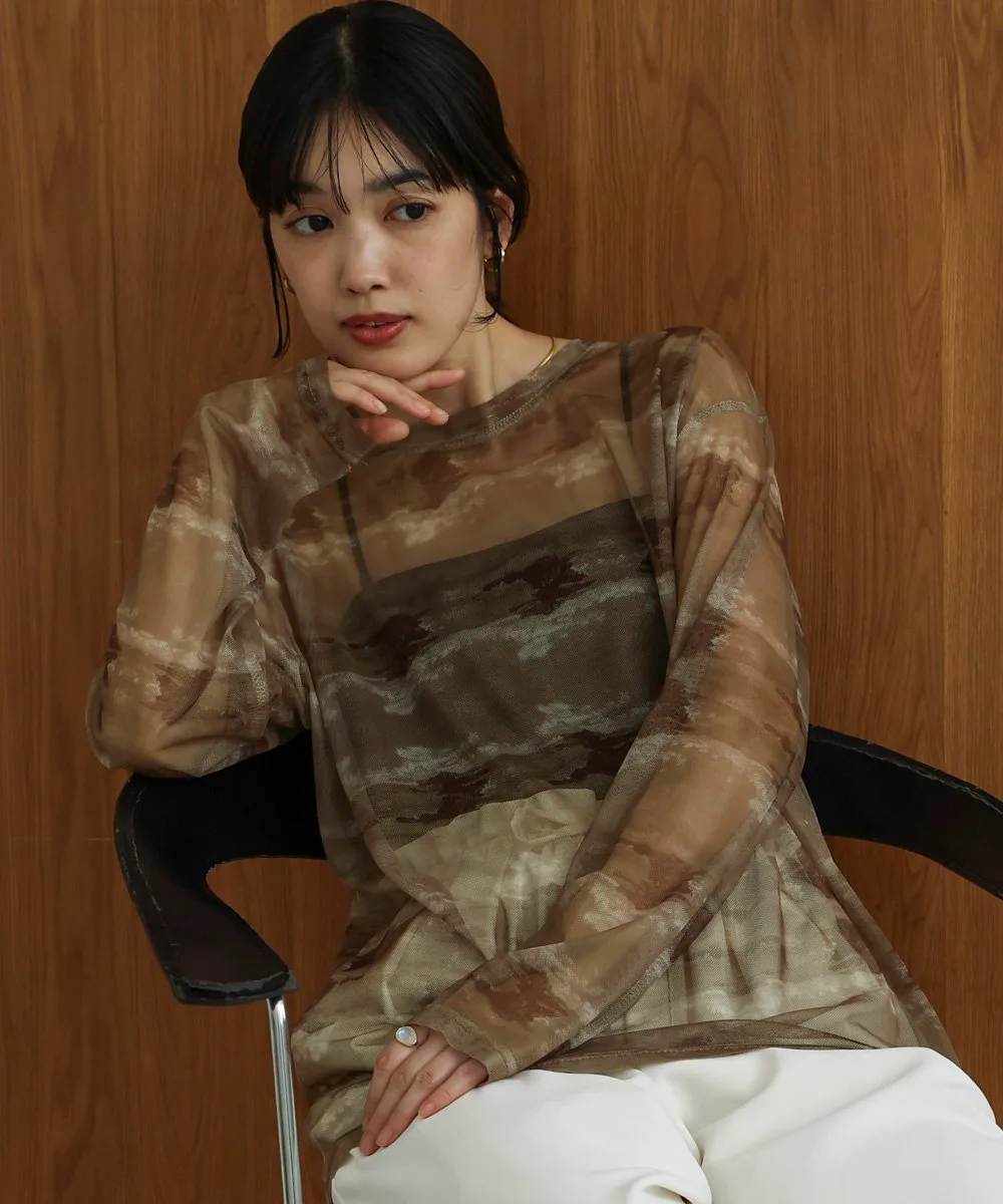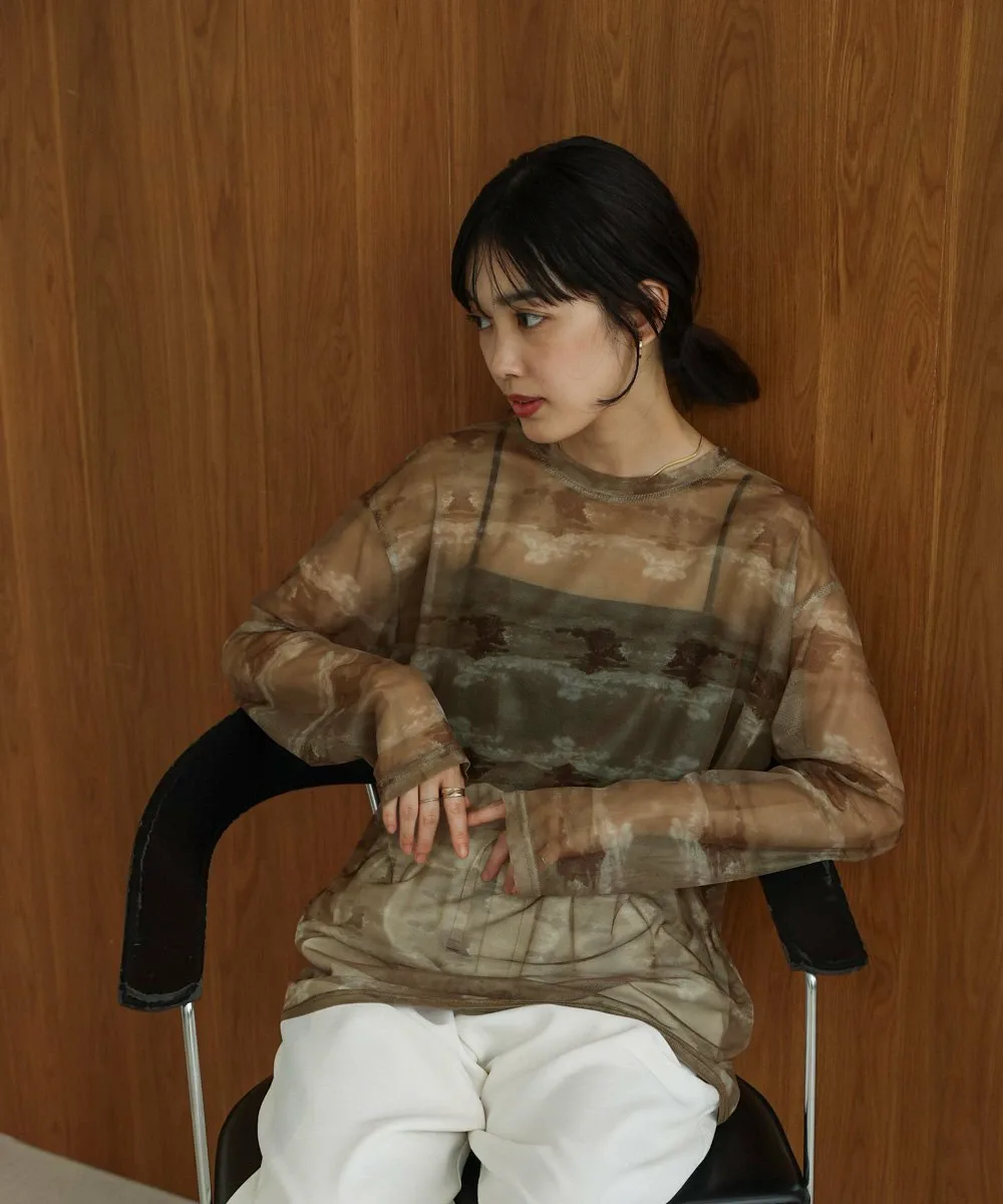 ТОЧКАРазличные нюансированные узоры каждого цвета создают элегантный образ со сдержанной нежностью. Умеренная прозрачность создает расслабленный образ, а вырез горловины аккуратный. Свободный силуэт не облегает тело, поэтому не подчеркивает линии фигуры. Его можно использовать как нижний слой или надевать поверх майки, чтобы создать топ. Он также хорошо смотрится под платьем, жакетом или трикотажем.