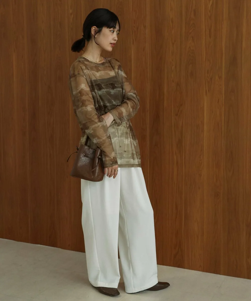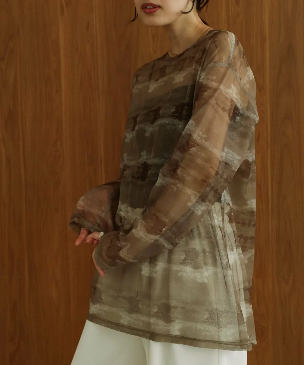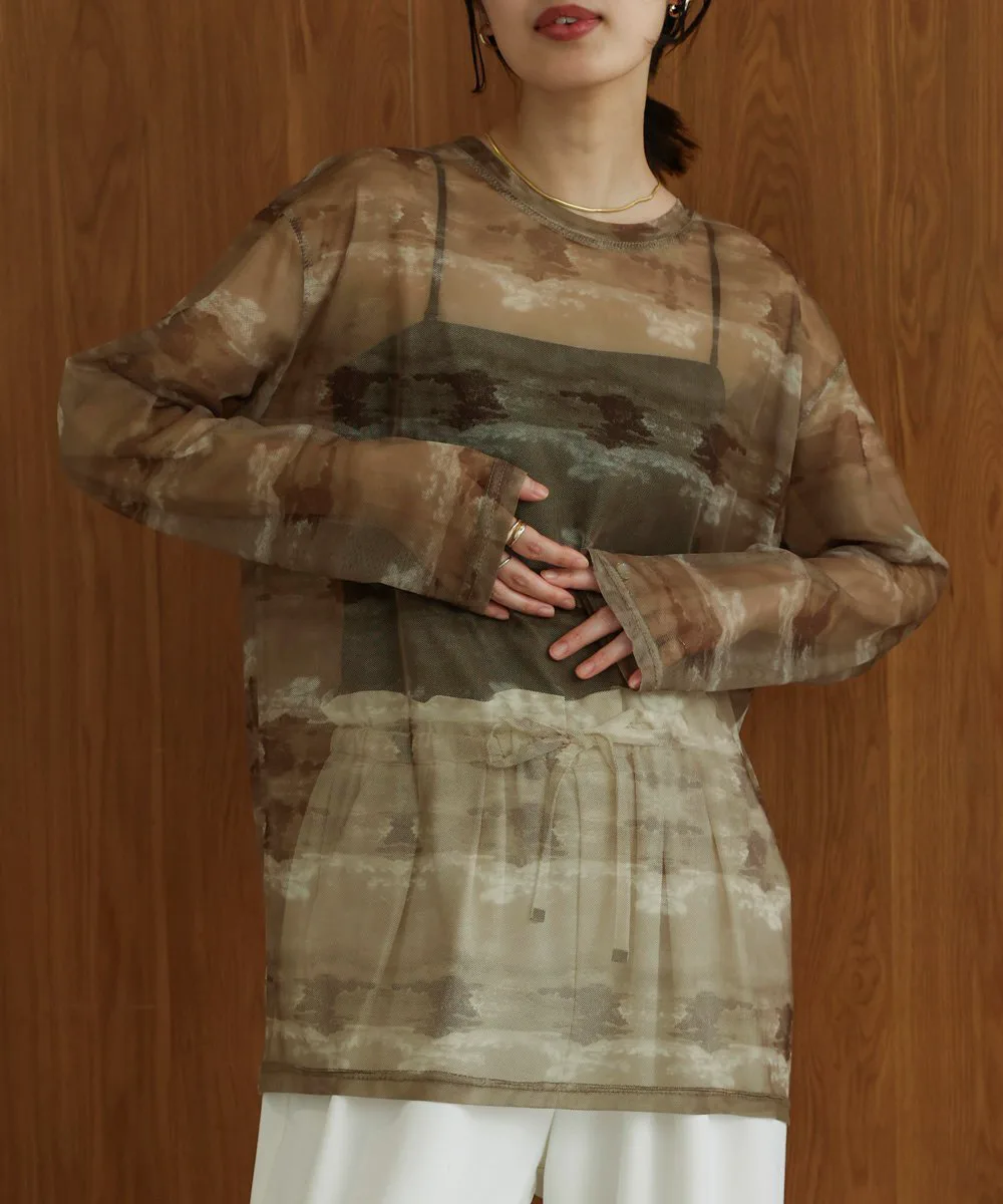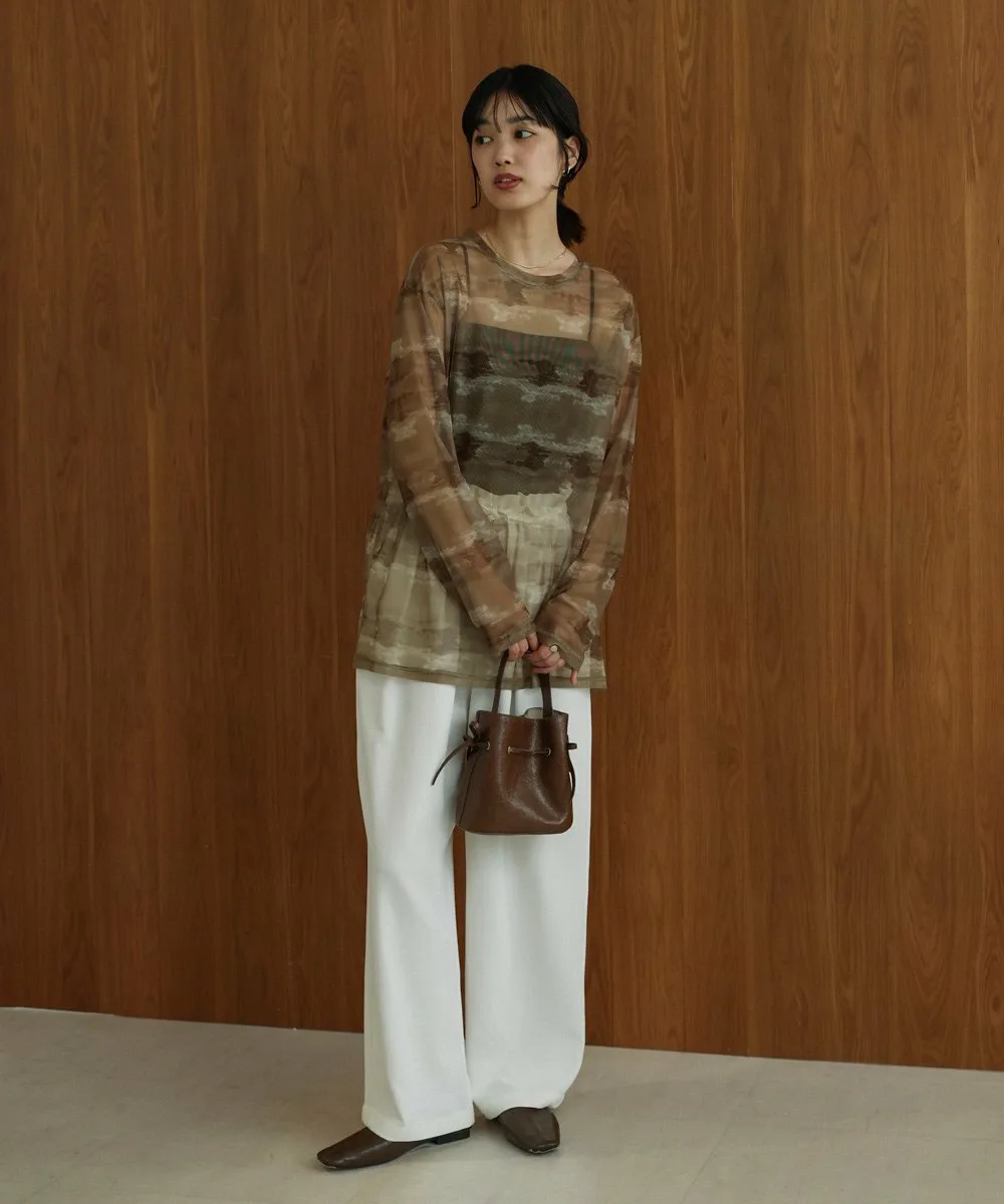ТОЧКАРазличные нюансированные узоры каждого цвета создают элегантный образ со сдержанной нежностью. Умеренная прозрачность создает расслабленный образ, а вырез горловины аккуратный. Свободный силуэт не облегает тело, поэтому не подчеркивает линии фигуры. Его можно использовать как нижний слой или надевать поверх майки, чтобы создать топ. Он также хорошо смотрится под платьем, жакетом или трикотажем.