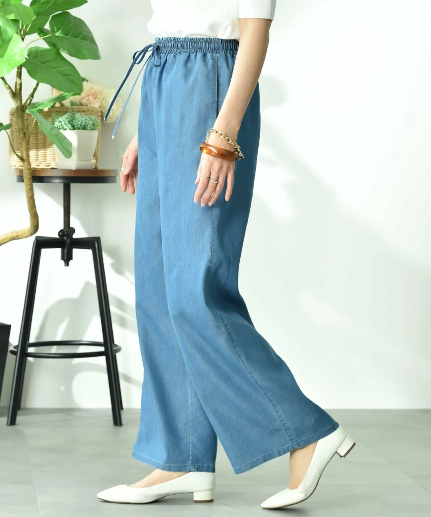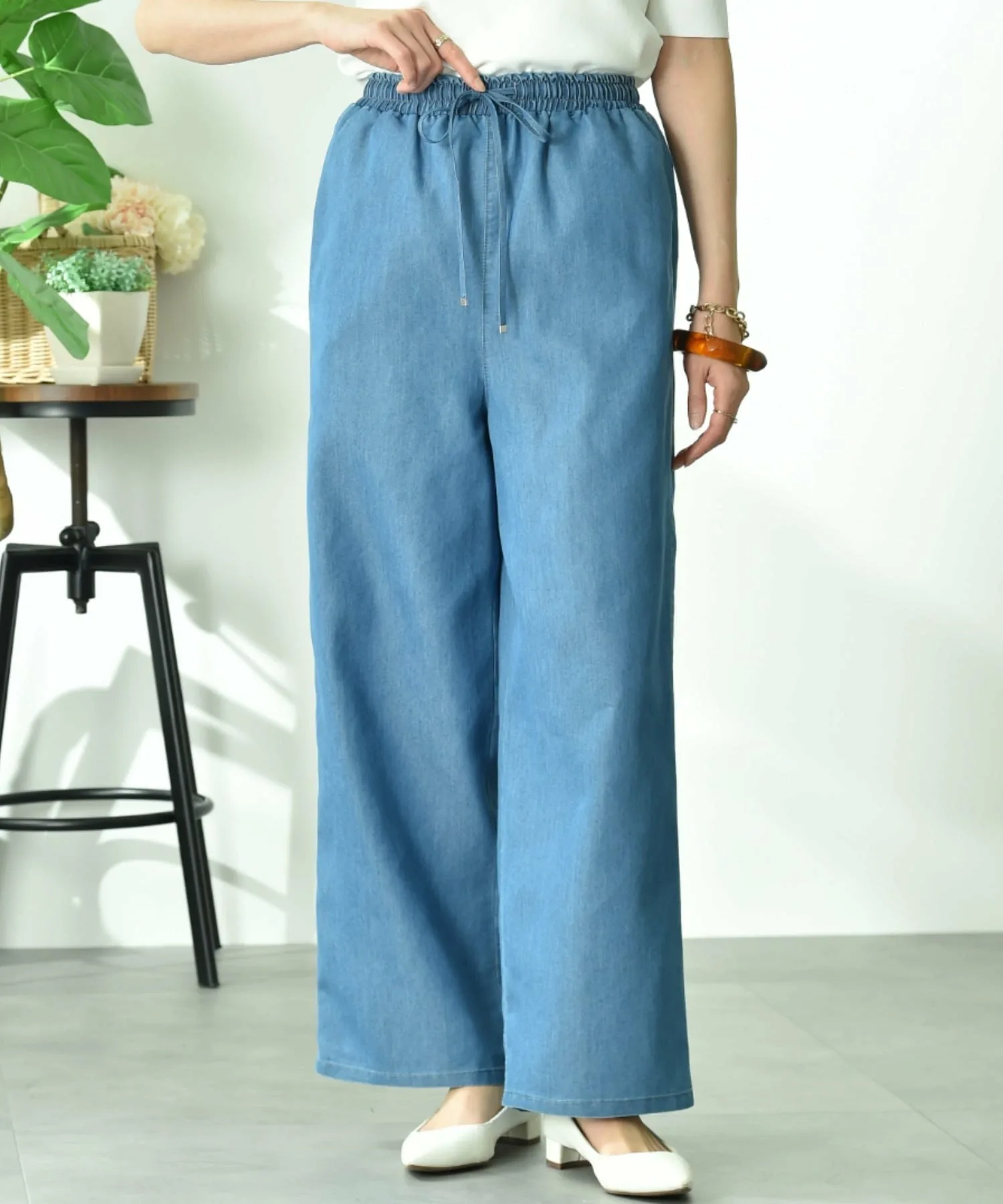 Эти джинсы широкого кроя не подчеркивают линии тела, что делает их привлекательным выбором для непринужденного и расслабленного стиля. Брюки изготовлены из комбинации хлопка, обладающего высокой впитываемостью и воздухопроницаемостью, и полиэстера, приятного на ощупь и износостойкого. Шнурок и эластичный пояс позволяют точно отрегулировать размер. Рост модели: 162 см, размер F.