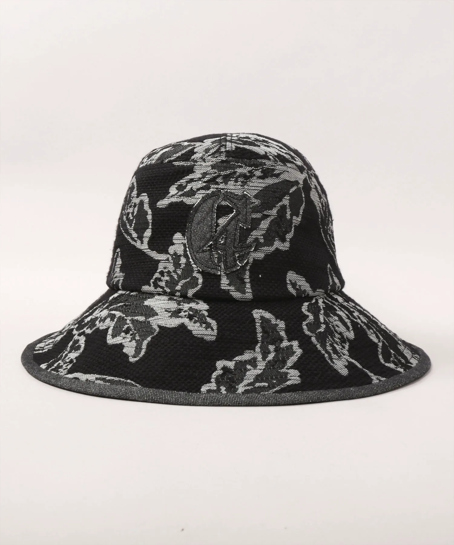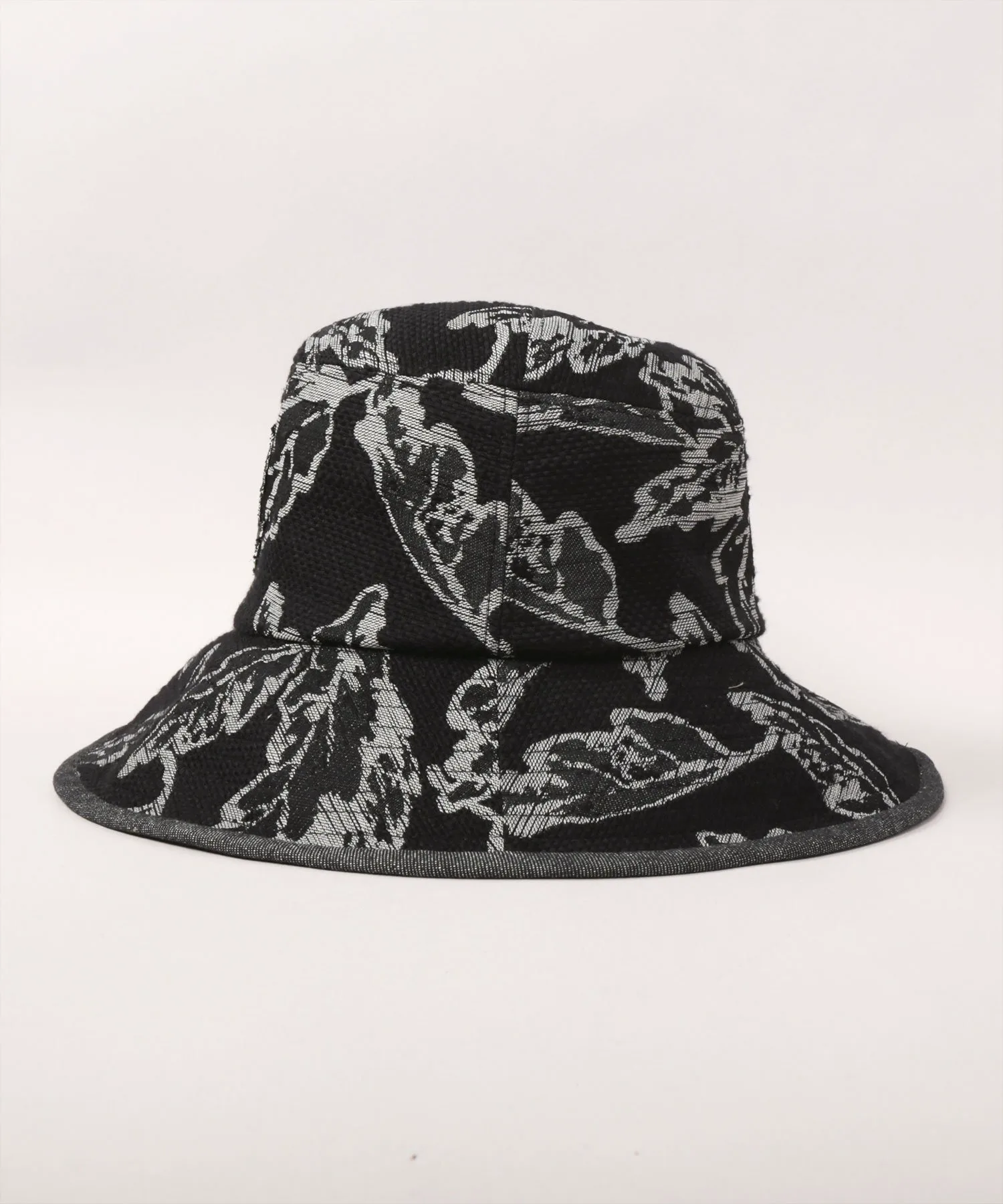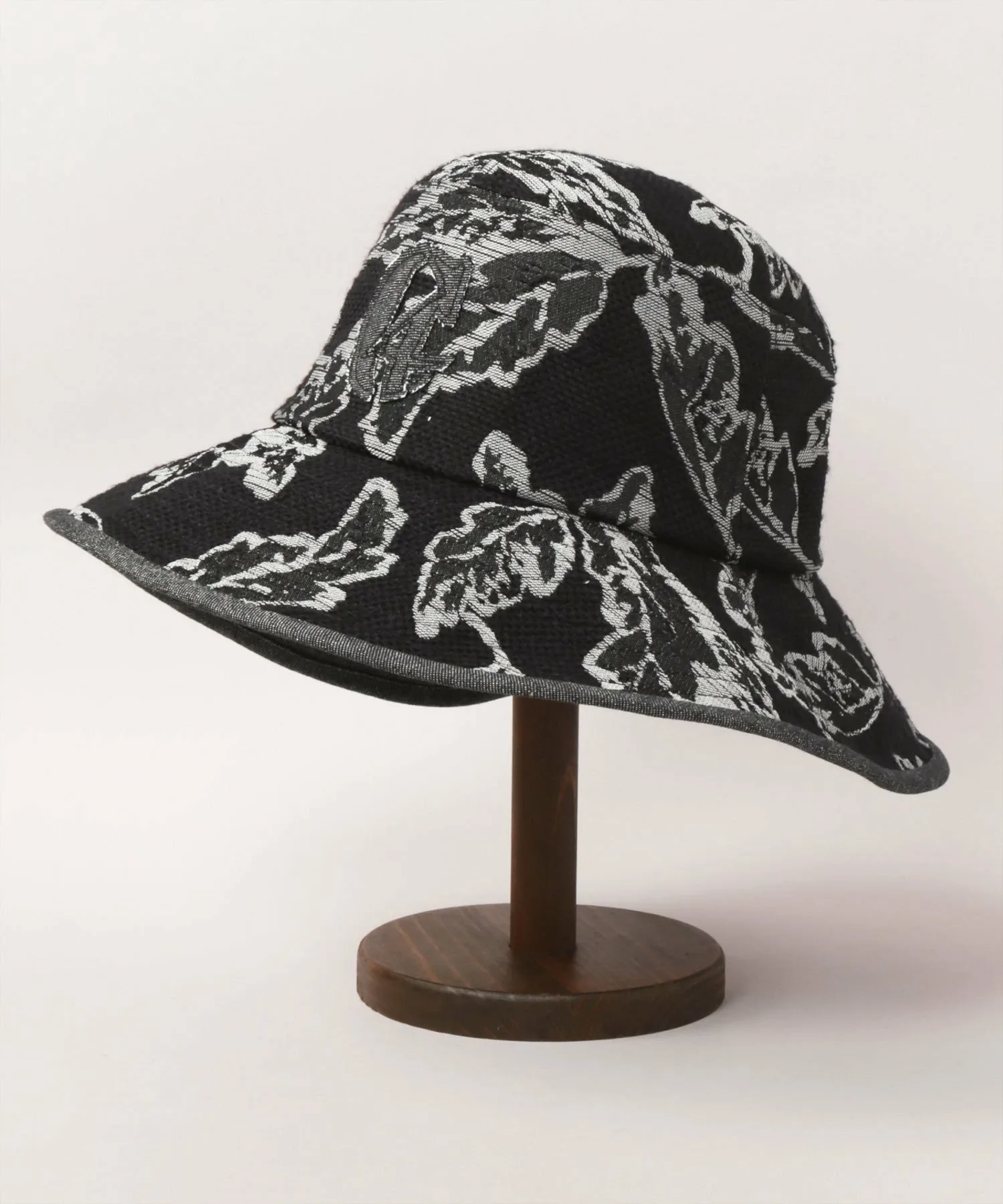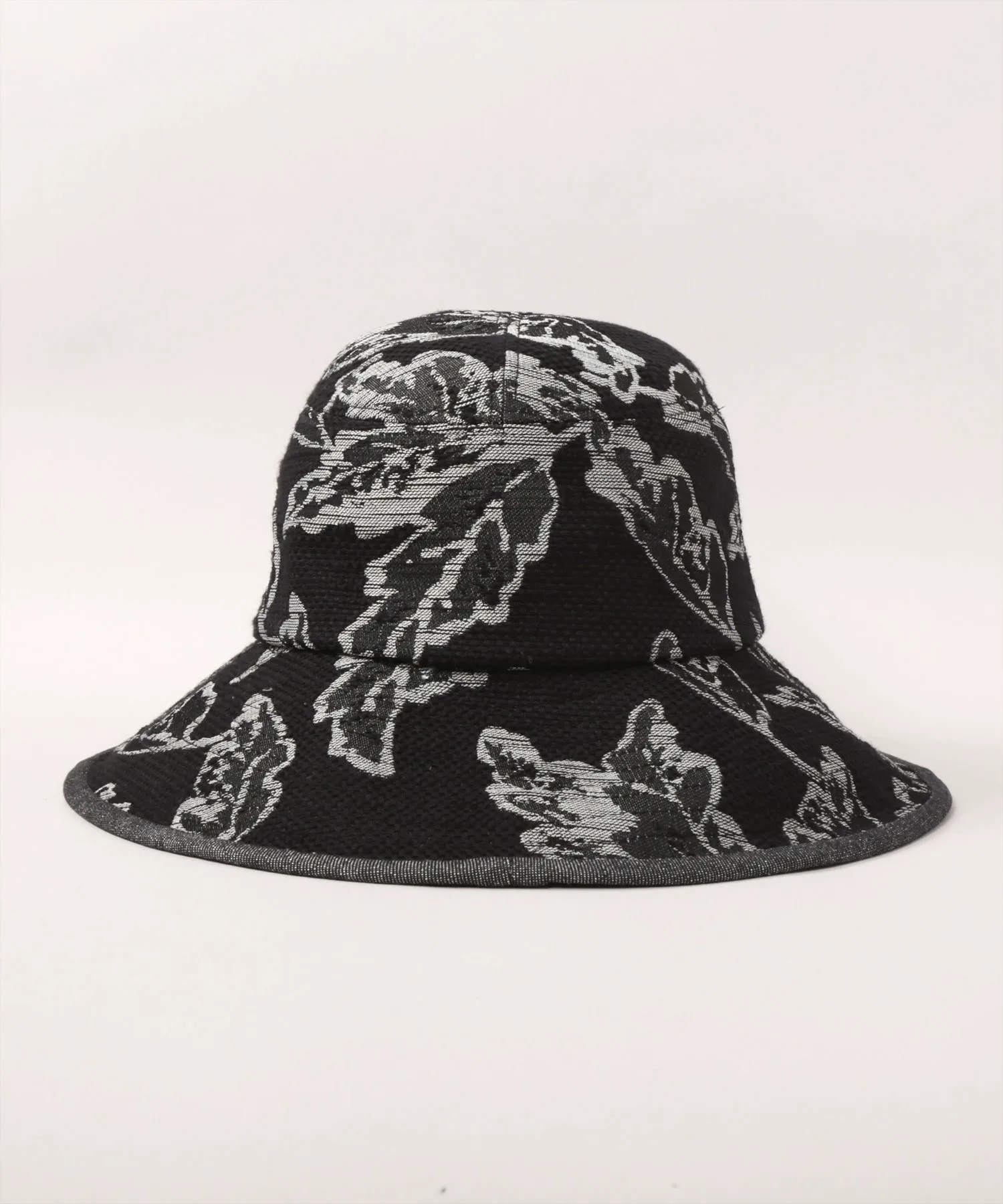 Шляпа из жаккардовой ткани с узором в виде листьев.