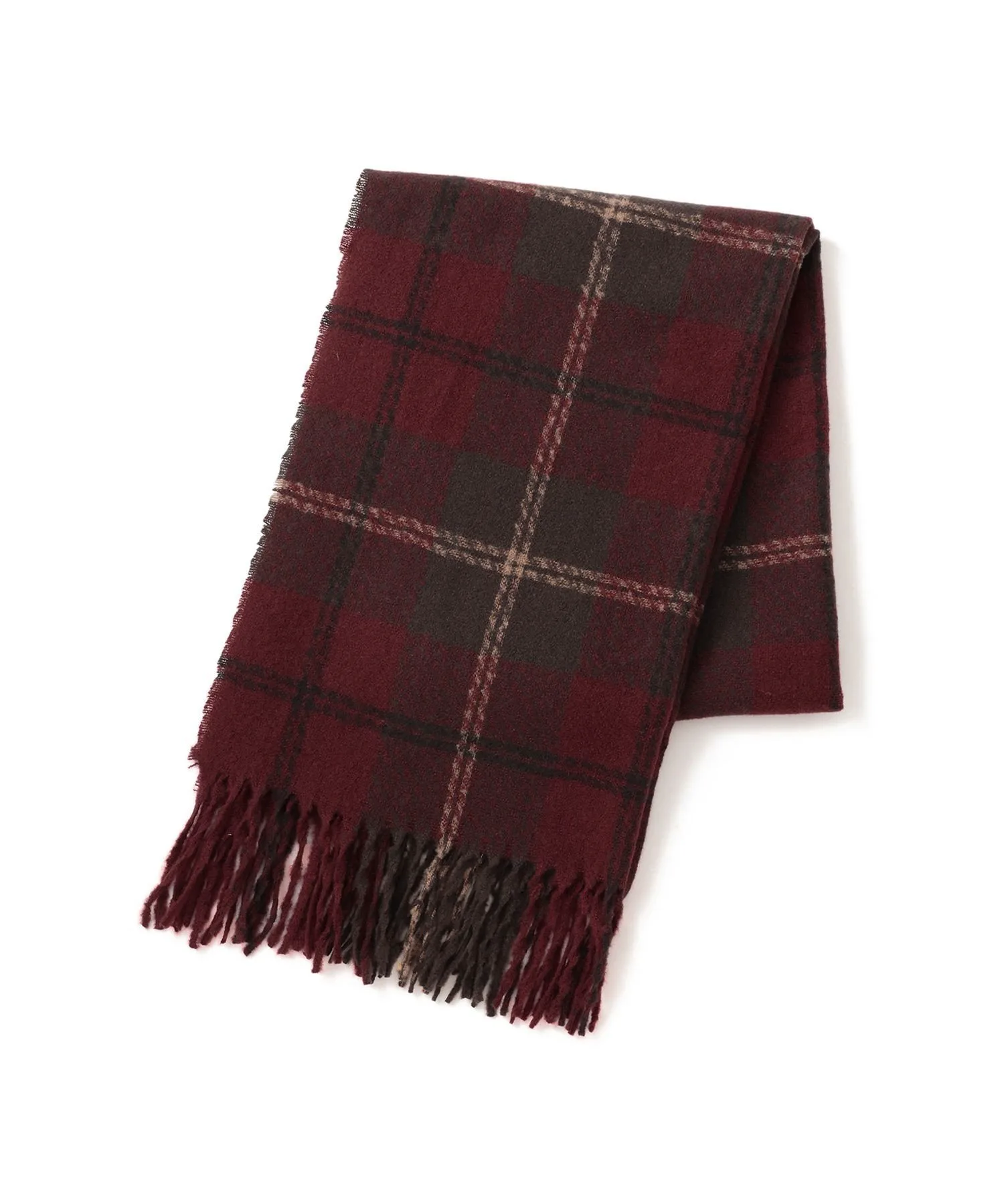 Этот шарф выполнен в простом и стильном клетчатом узоре с бахромой.