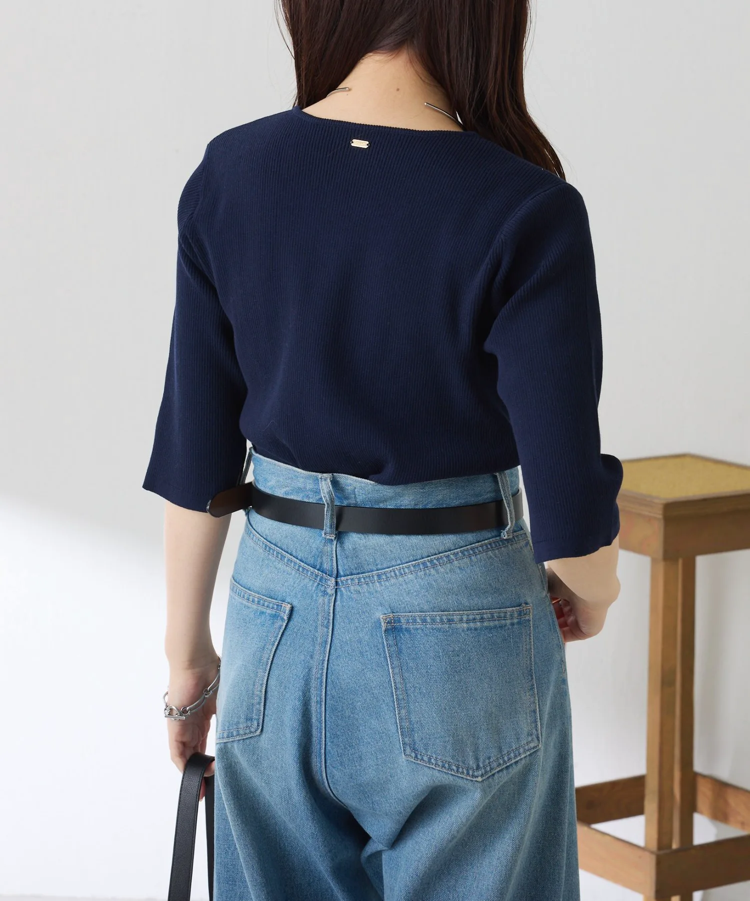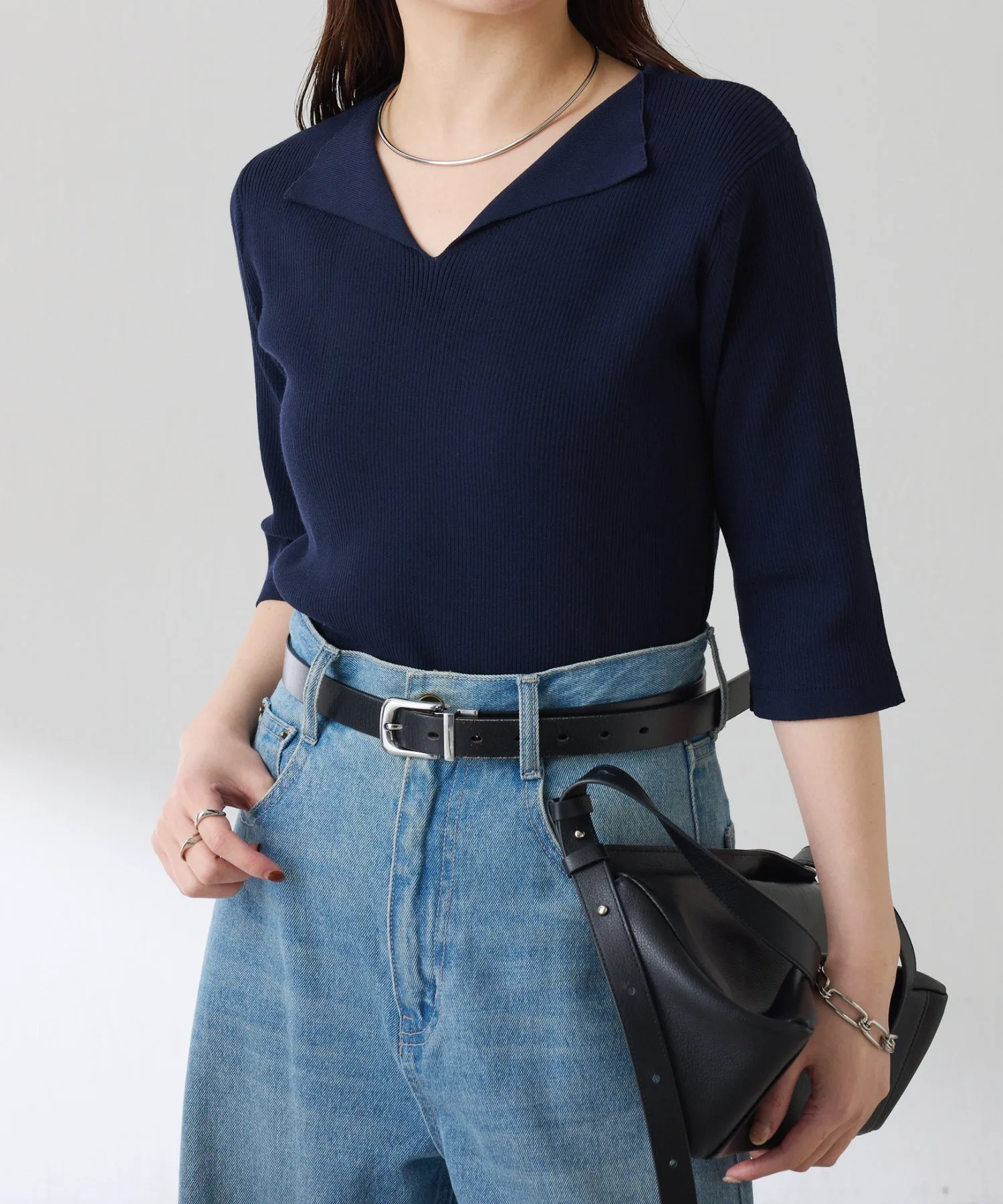 - Трикотаж в рубчик с компактным силуэтом, который можно носить как самостоятельно, так и в качестве нижнего слоя под пиджак.
