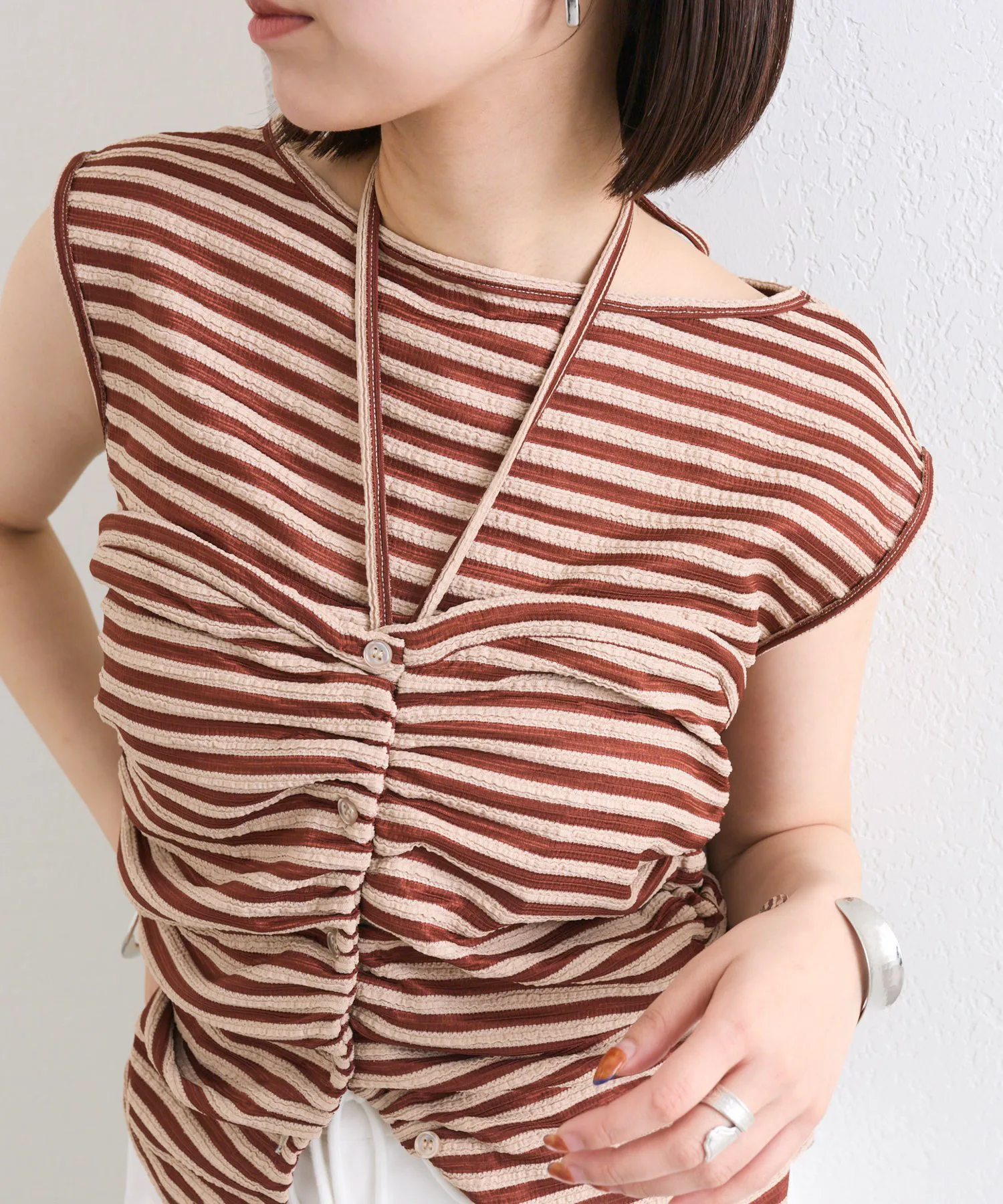 Еще одна особенность — многослойный дизайн с контрастной отделкой на груди.