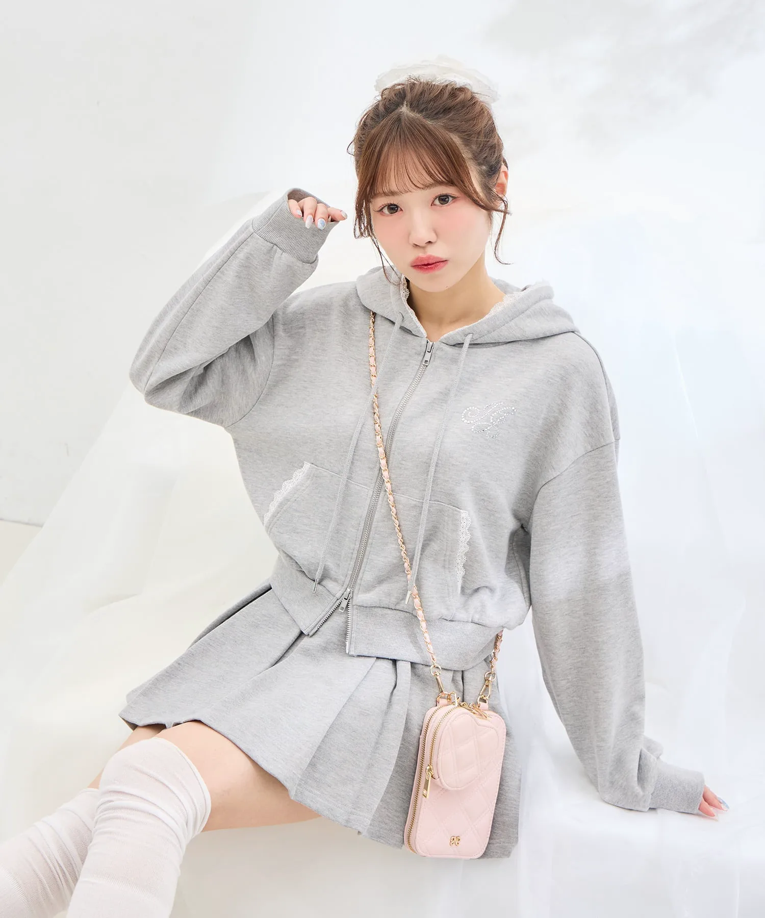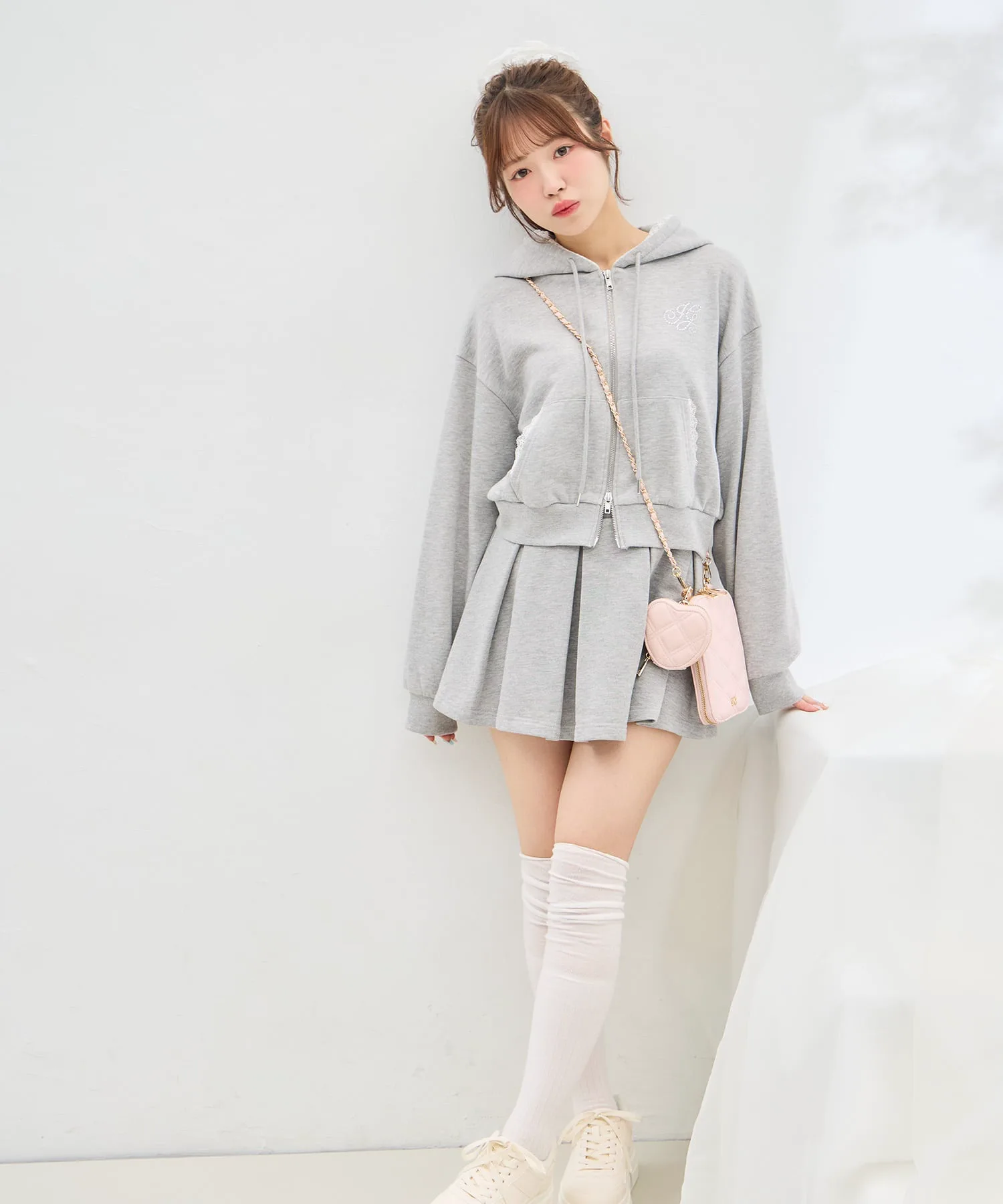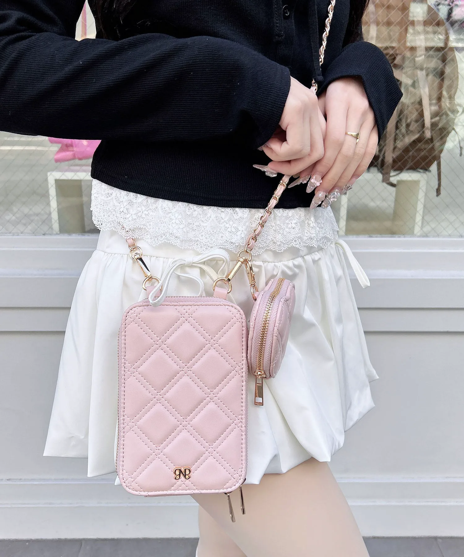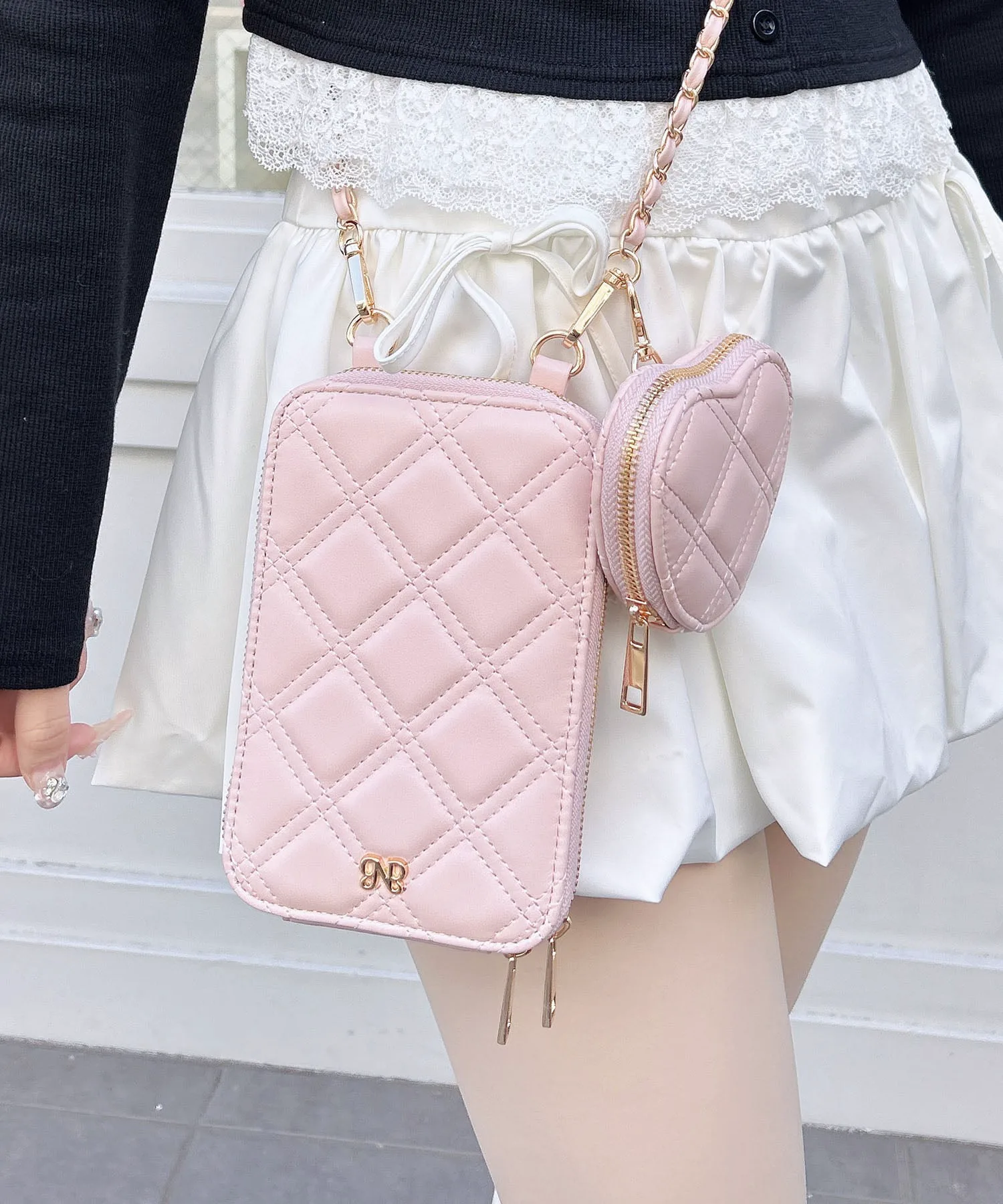 Съемная сумочка в форме сердца добавляет милый акцент.