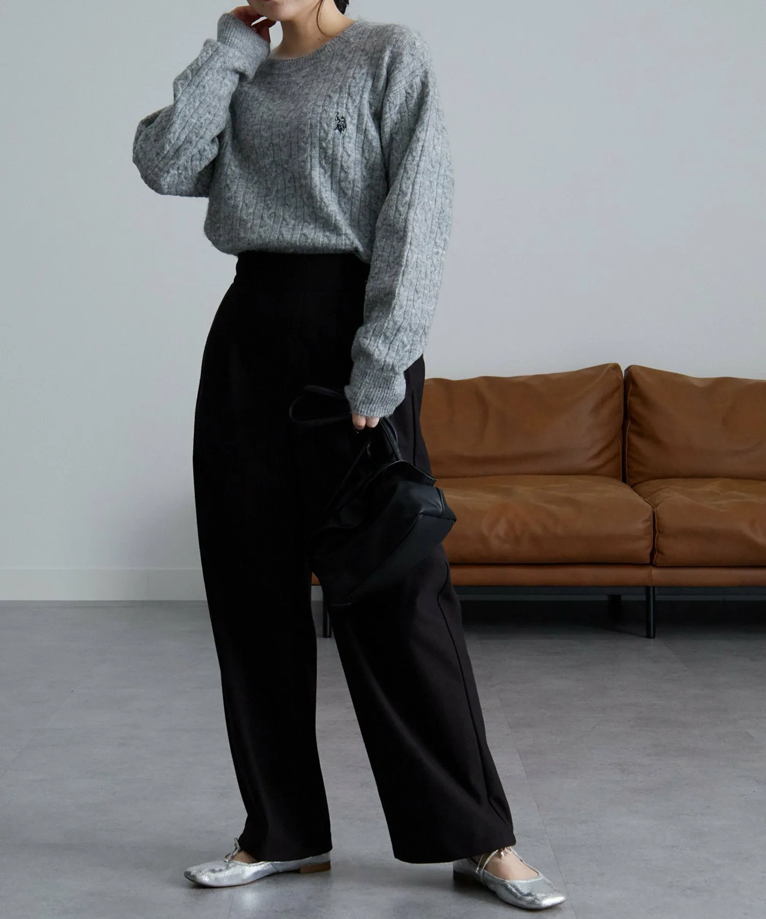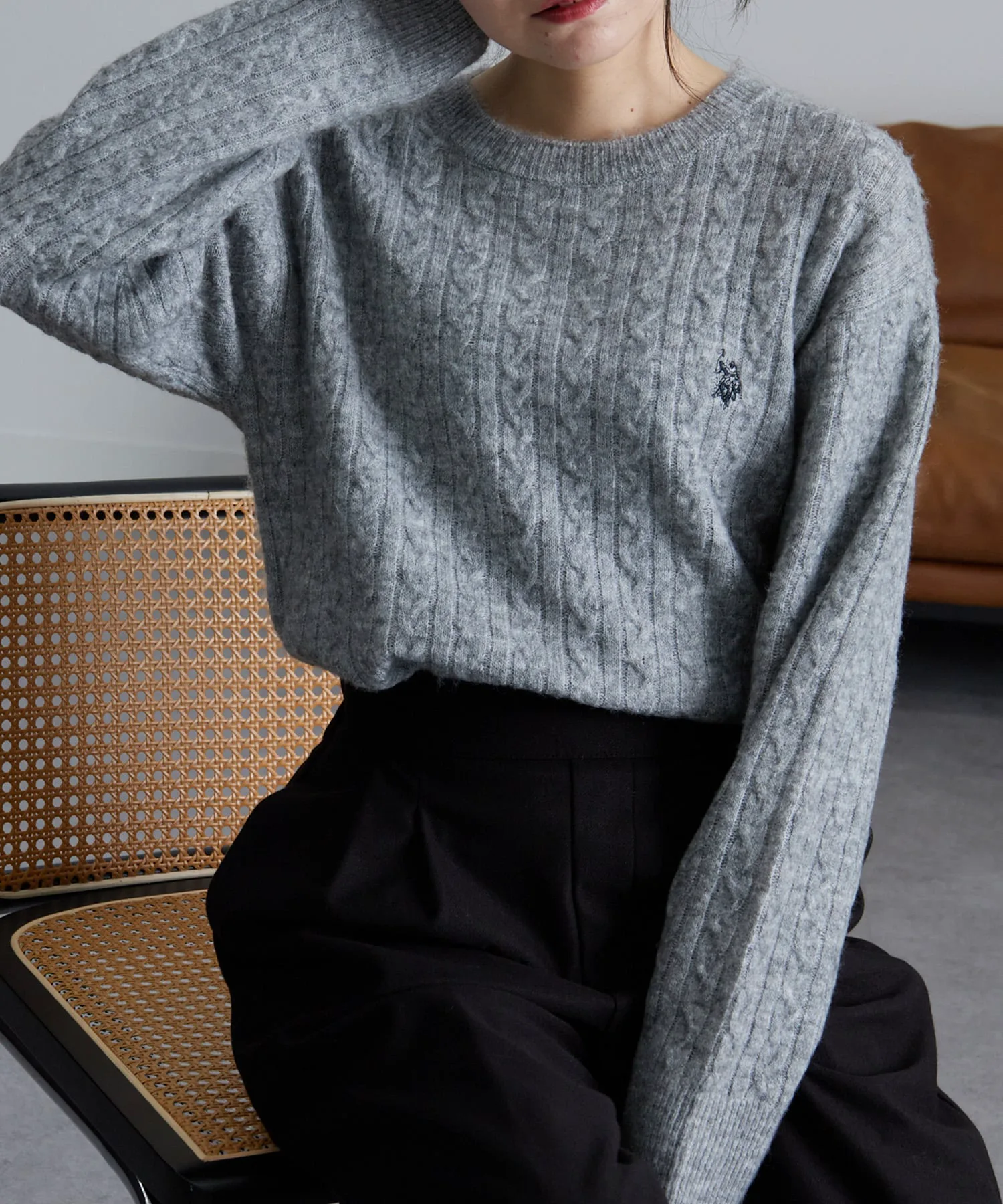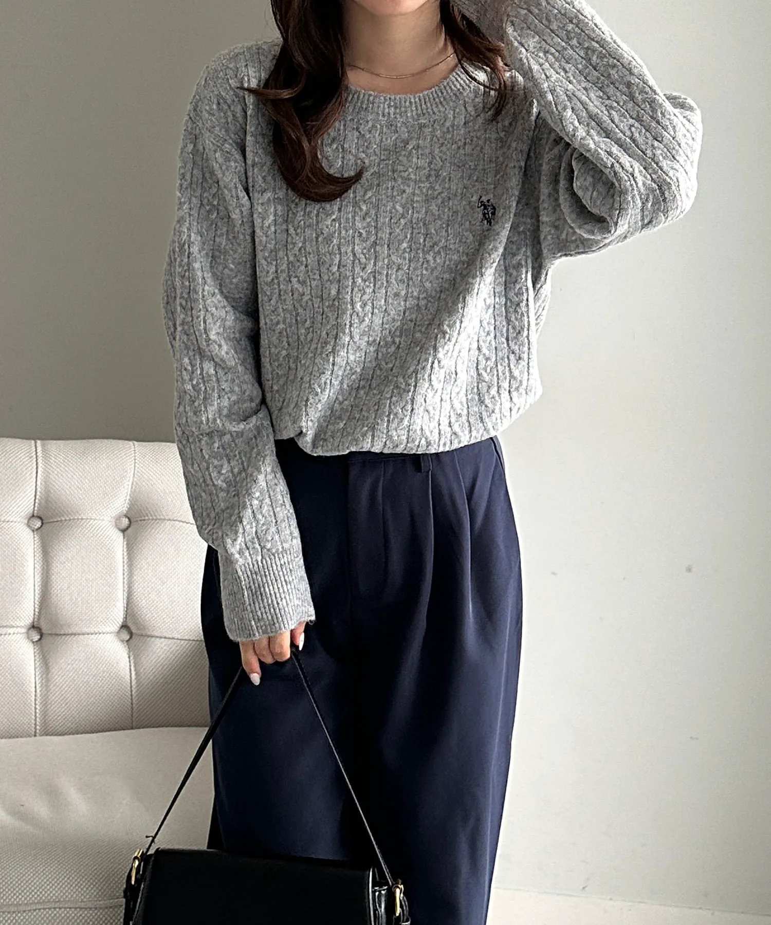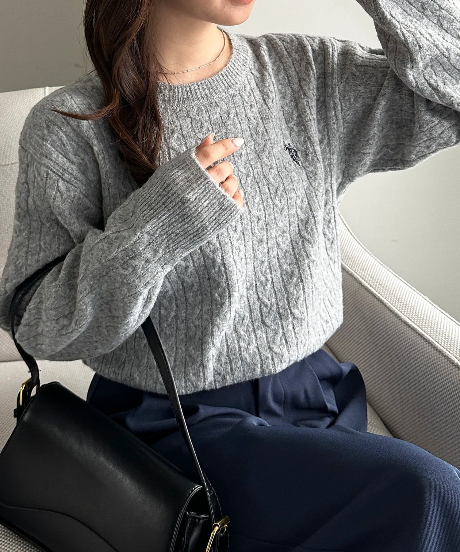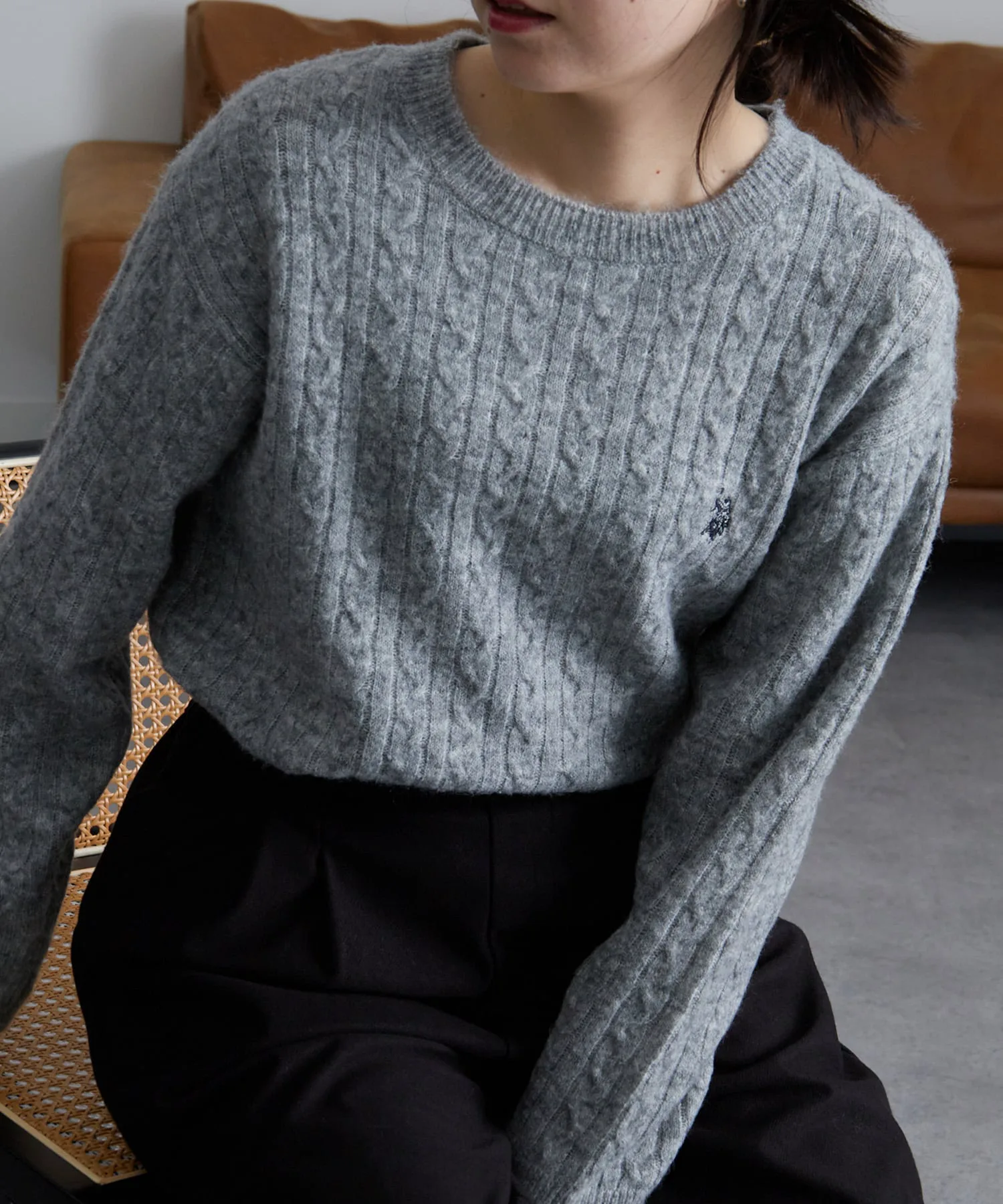 Вязаный свитер с косами, создающий ощущение легкого меланжа, который можно носить до начала весны.