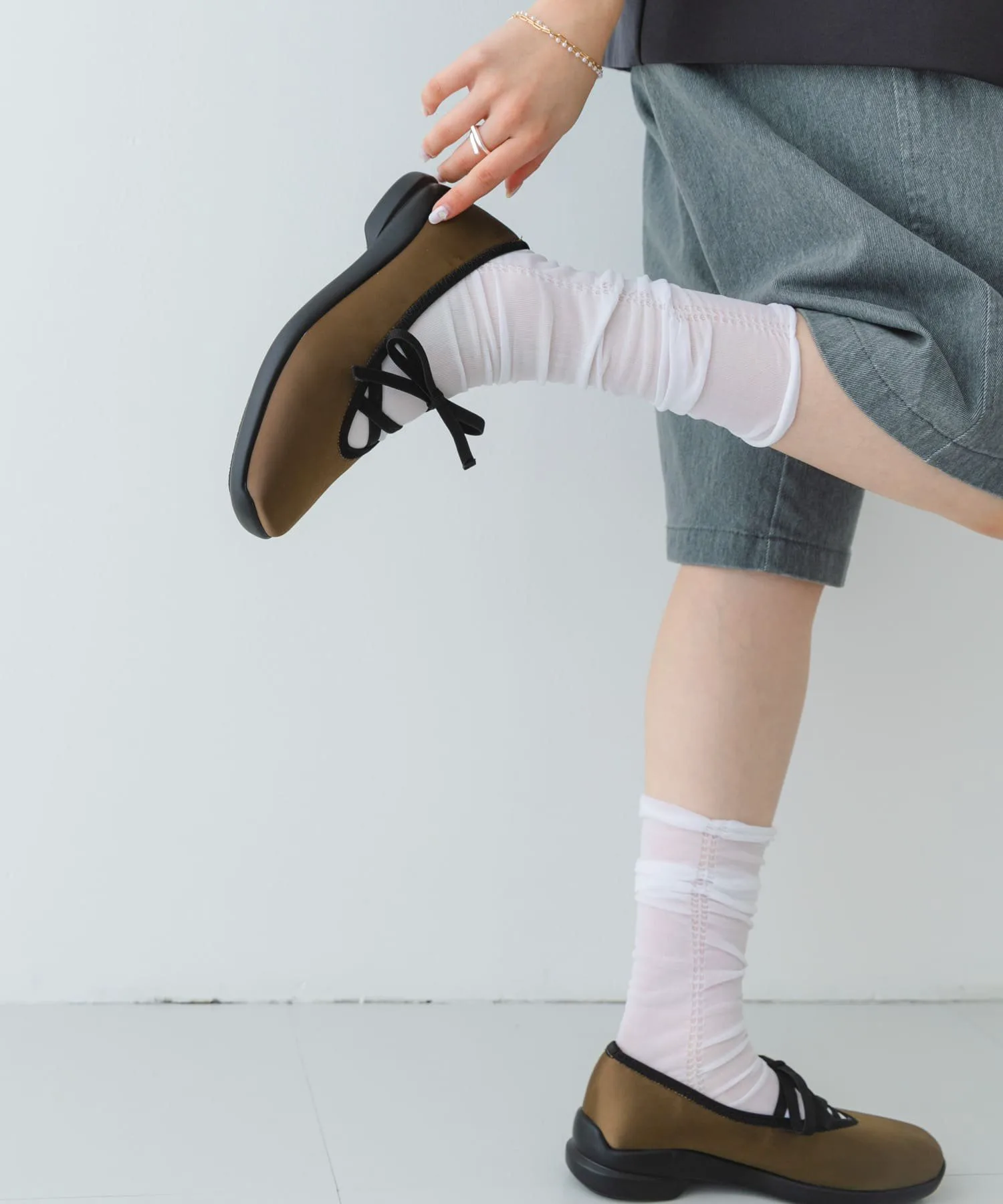 Сочетайте с широкими брюками для создания современного образа. Мы также рекомендуем сочетать их с кружевными носками или цветными носками для создания балетного образа.