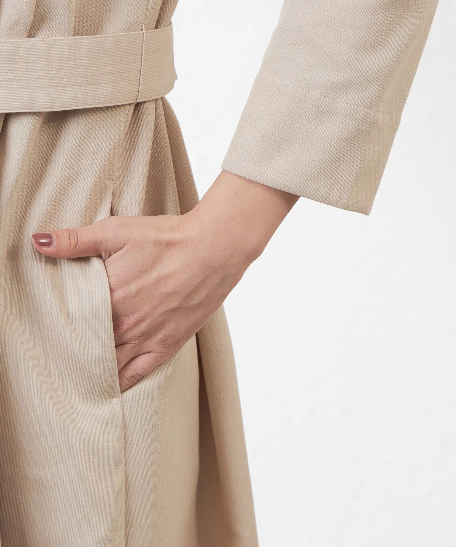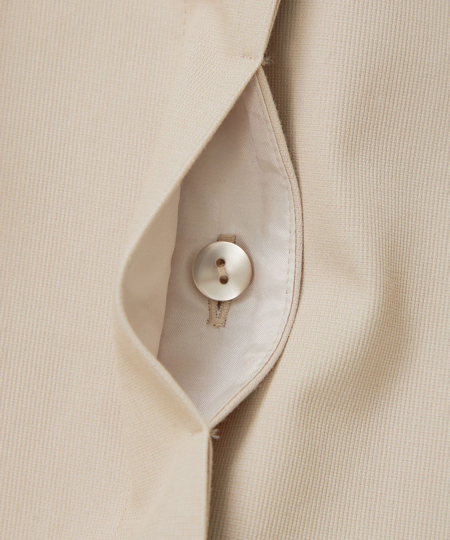 На жаккардовом станке создается богатое текстурированное пике. Количество нитей основы, текстура ткани и бежевый оттенок способствуют созданию изысканного, но не слишком повседневного образа.