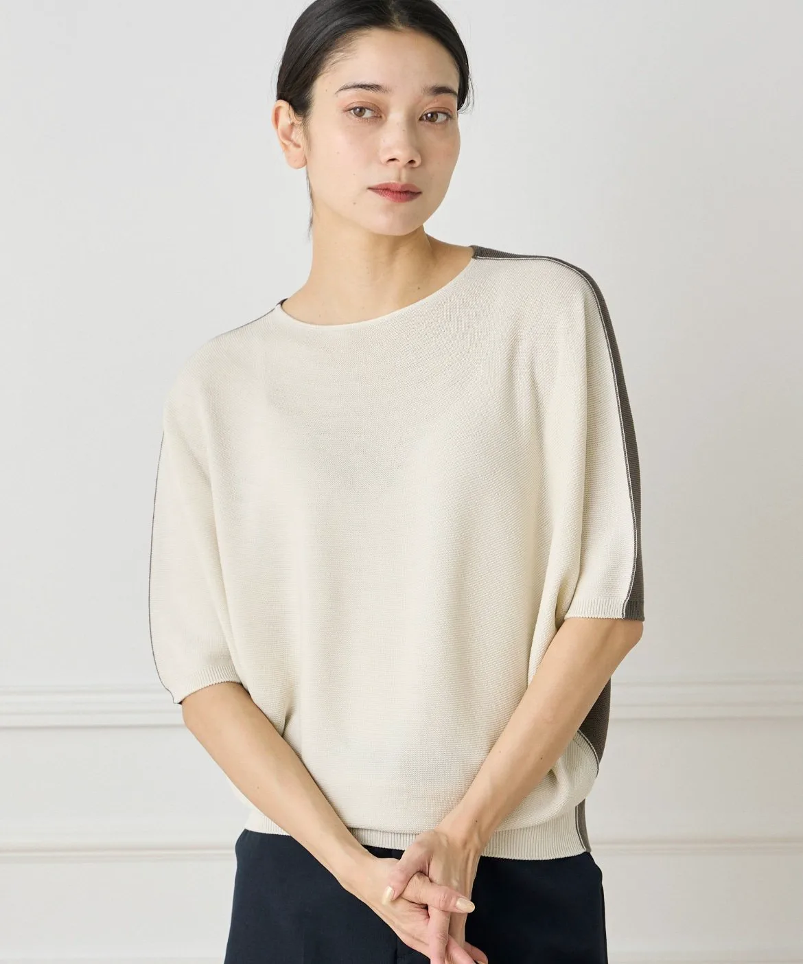 Бесшовный трикотаж, связанный на первой в мире бесшовной плосковязальной машине, разработанной эксклюзивно компанией Shima Seiki Mfg. Co., Ltd. Это усиливает естественное ощущение и легкость трикотажа, улучшает драпировку и устраняет швы, которые могут вызывать жесткость, обеспечивая более комфортную посадку.
