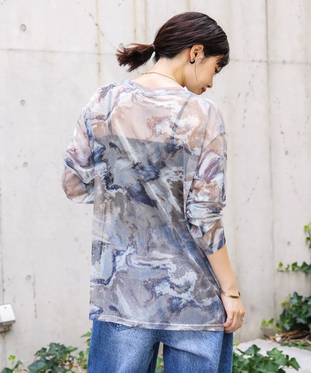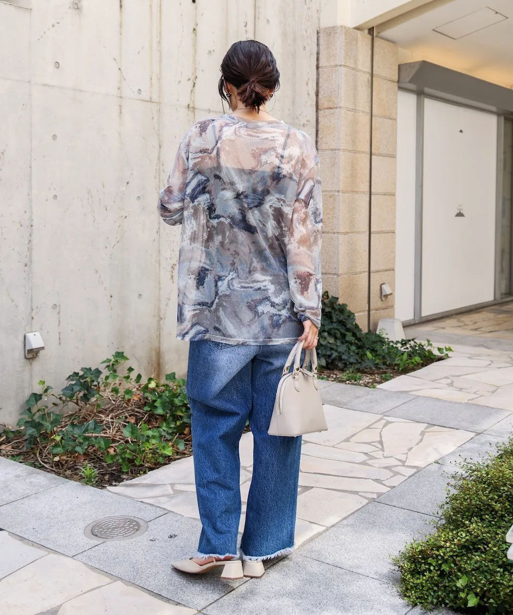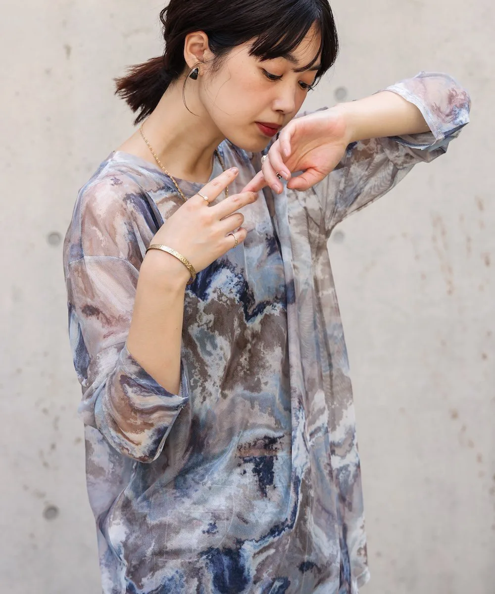 ТОЧКАРазличные нюансированные узоры каждого цвета создают элегантный образ со сдержанной нежностью. Умеренная прозрачность создает расслабленный образ, а вырез горловины аккуратный. Свободный силуэт не облегает тело, поэтому не подчеркивает фигуру, что также является привлекательной особенностью. Его можно использовать не только как нижний слой, но и как топ, надев под майку. Он также хорошо смотрится под платьем, жакетом или трикотажем.