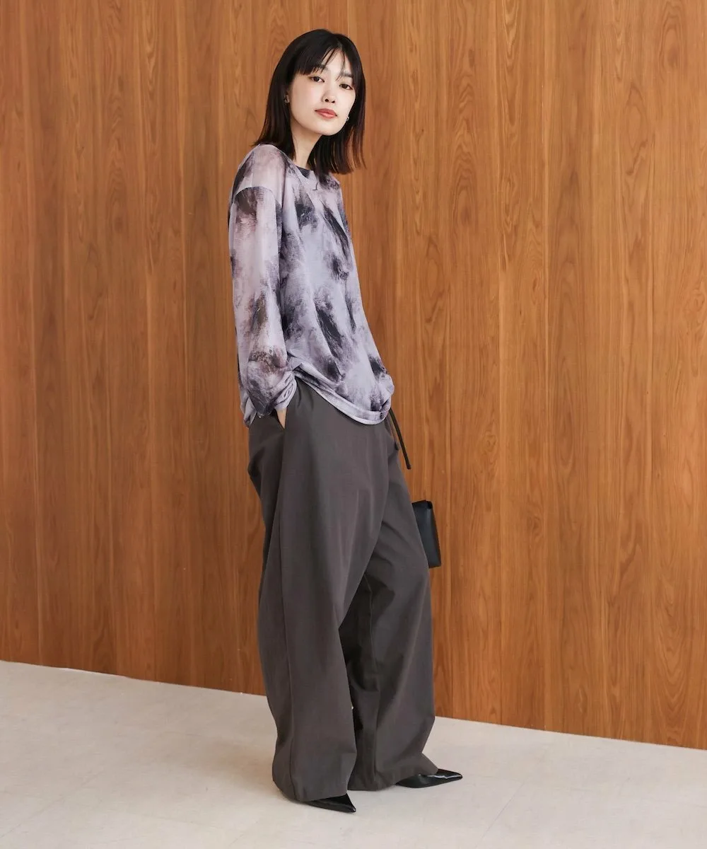 ТОЧКАРазличные нюансированные узоры каждого цвета создают элегантный образ со сдержанной нежностью. Умеренная прозрачность создает расслабленный образ, а вырез горловины аккуратный. Свободный силуэт не облегает тело, поэтому не подчеркивает фигуру, что также является привлекательной особенностью. Его можно использовать не только как нижний слой, но и как топ, надев под майку. Он также хорошо смотрится под платьем, жакетом или трикотажем.