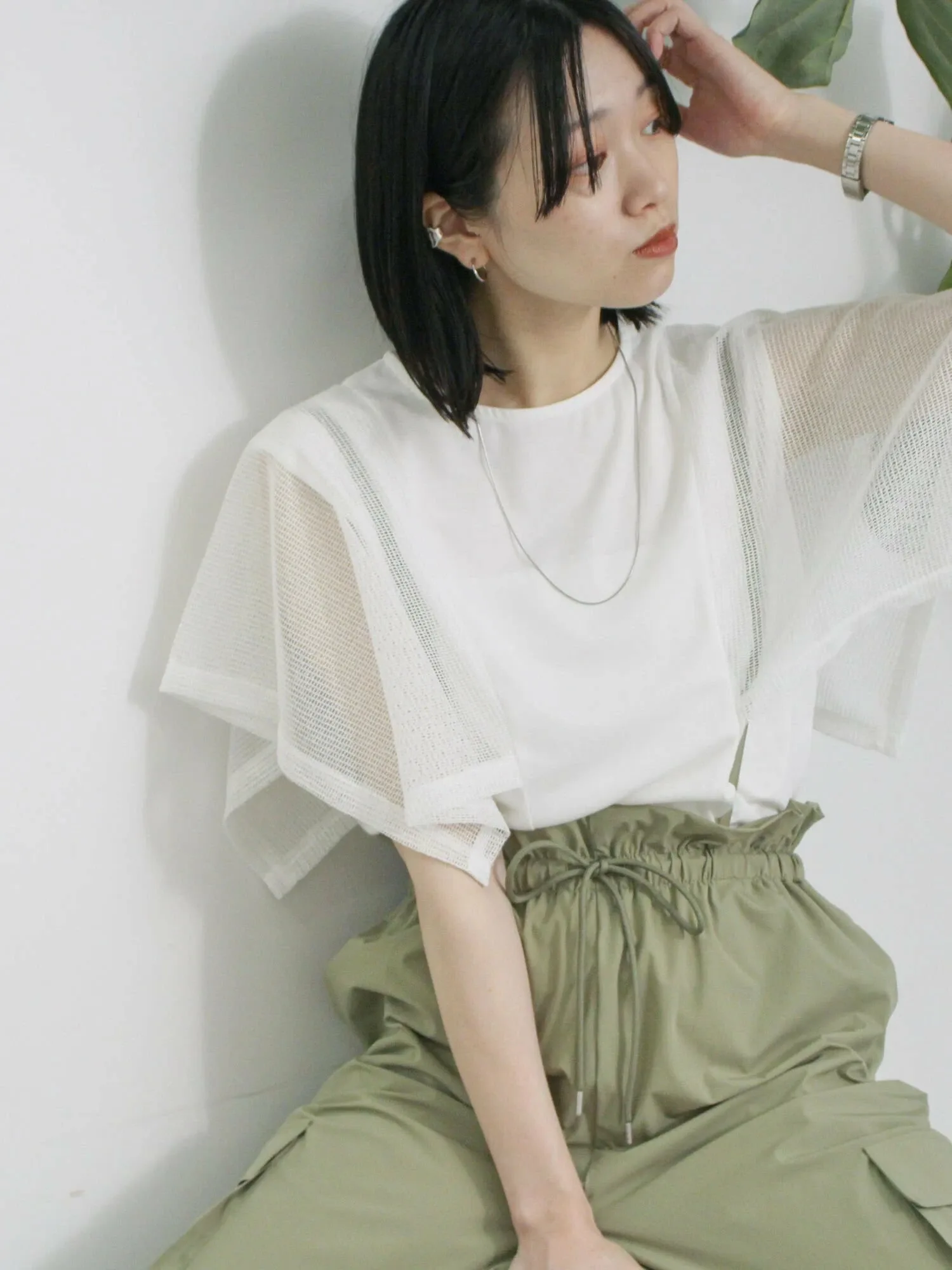 Пуловер с сетчатыми рукавами, придающий ему свежий вид.