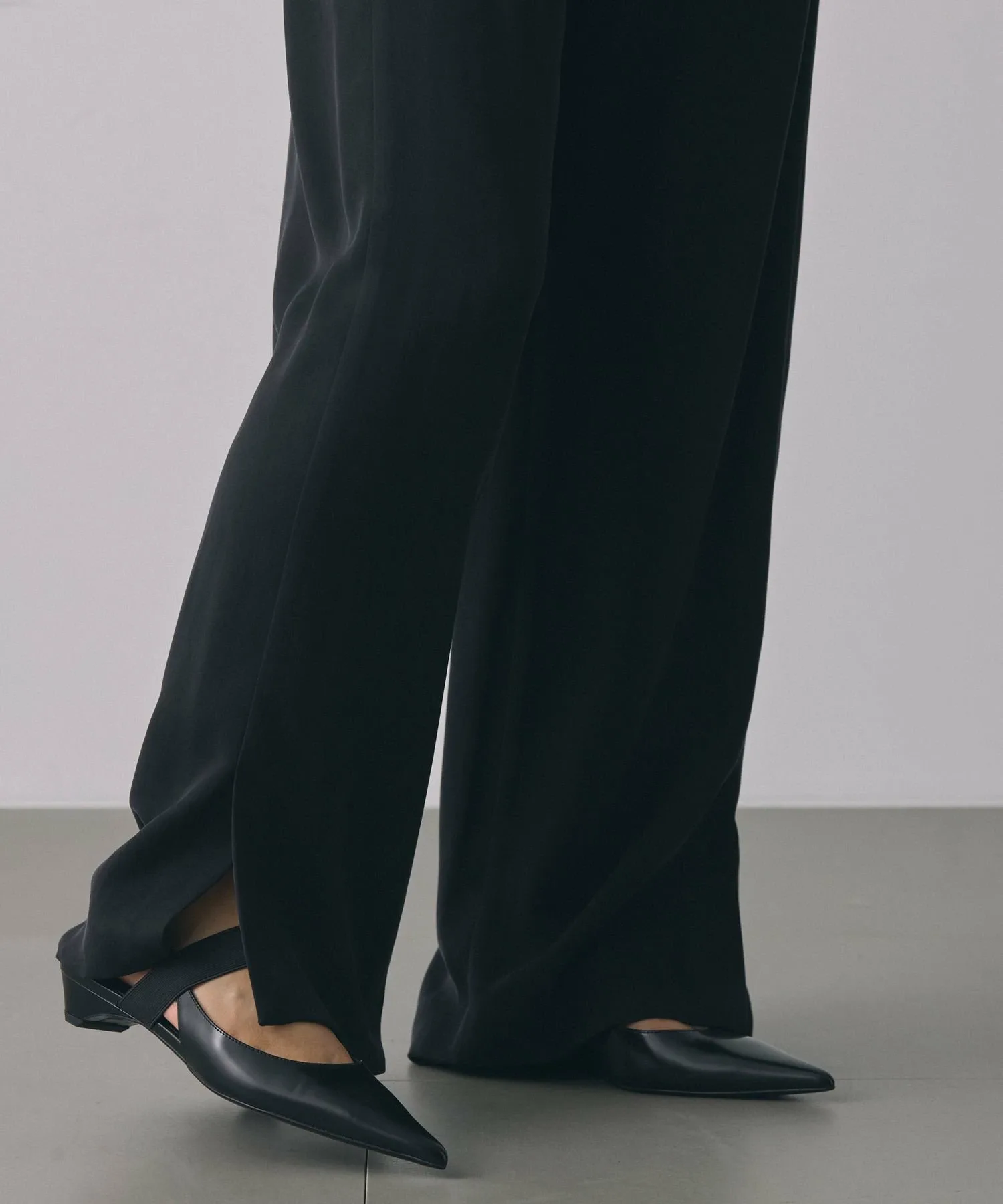 Силуэт прямой, но боковые разрезы придают подолу расклешенный вид, визуально удлиняя ноги.