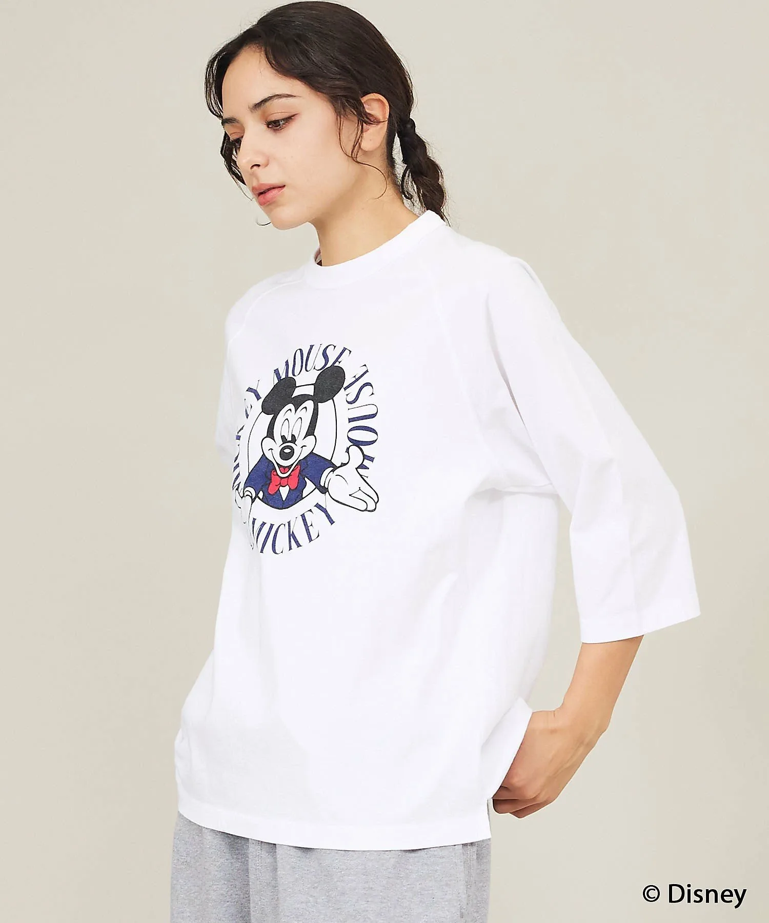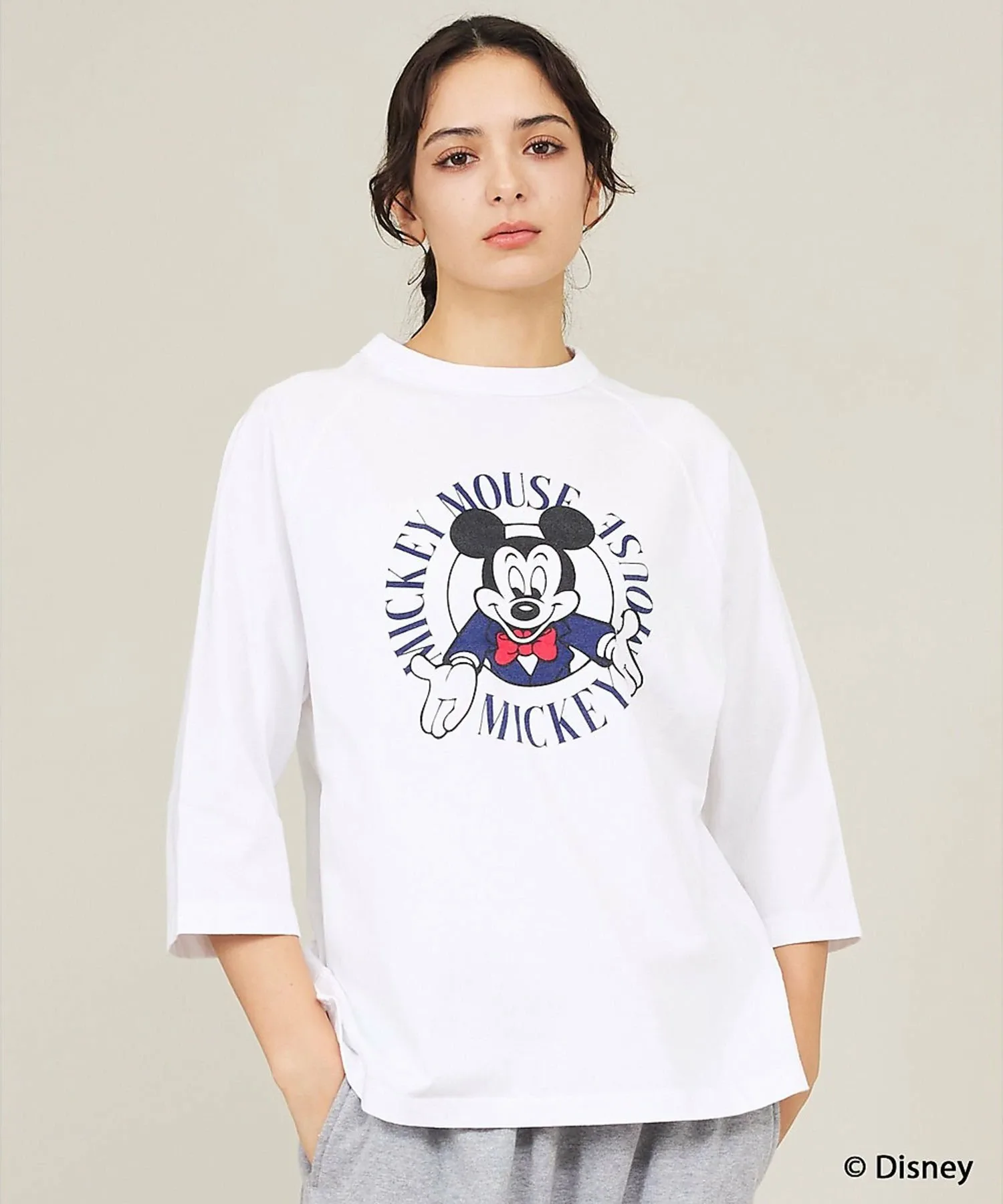 Ретро-принт с изображением лица «Микки» и логотипом в виде круга создает изысканный винтажный стиль, делая эту вещь привлекательной и стильной, просто надев ее.
