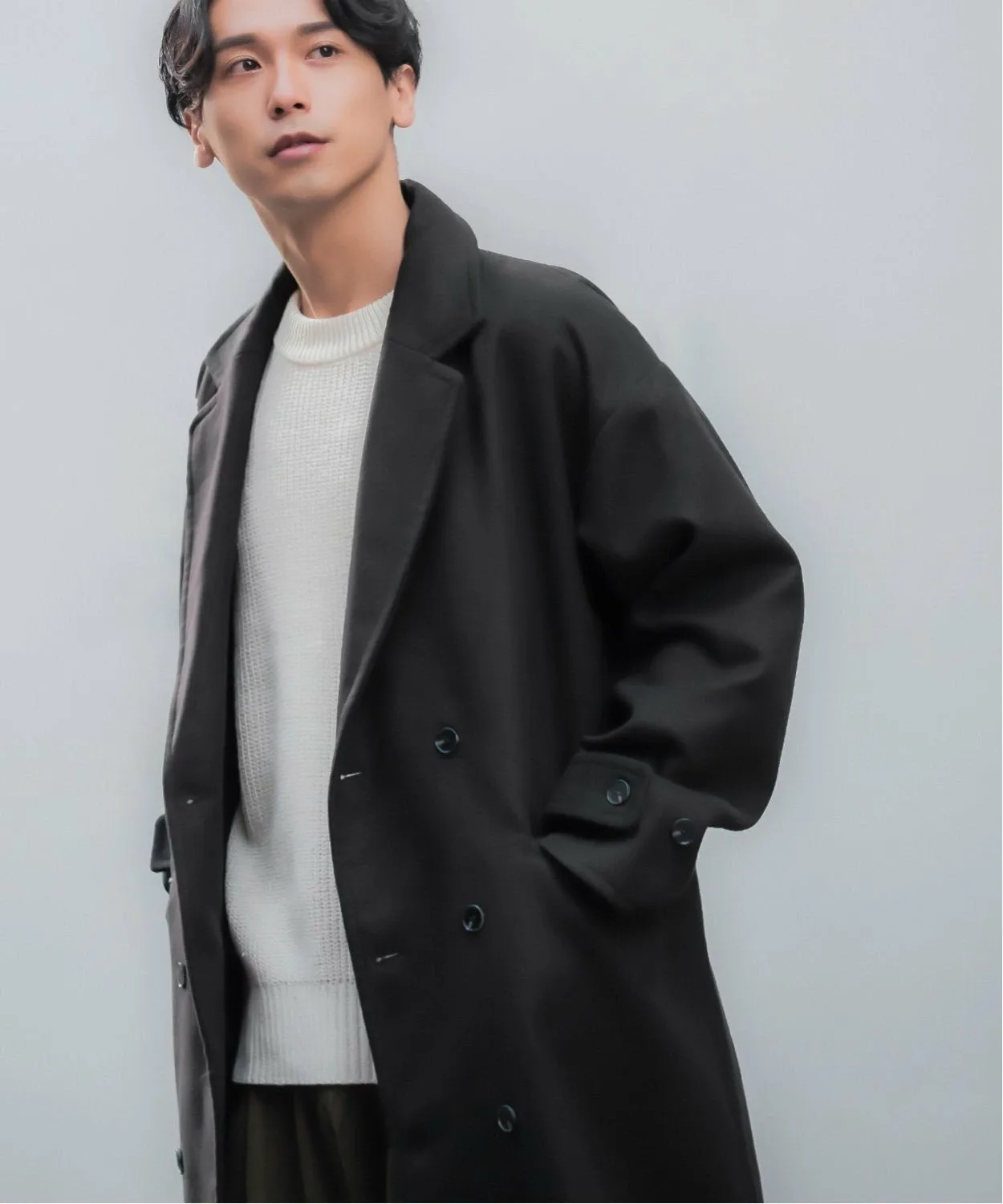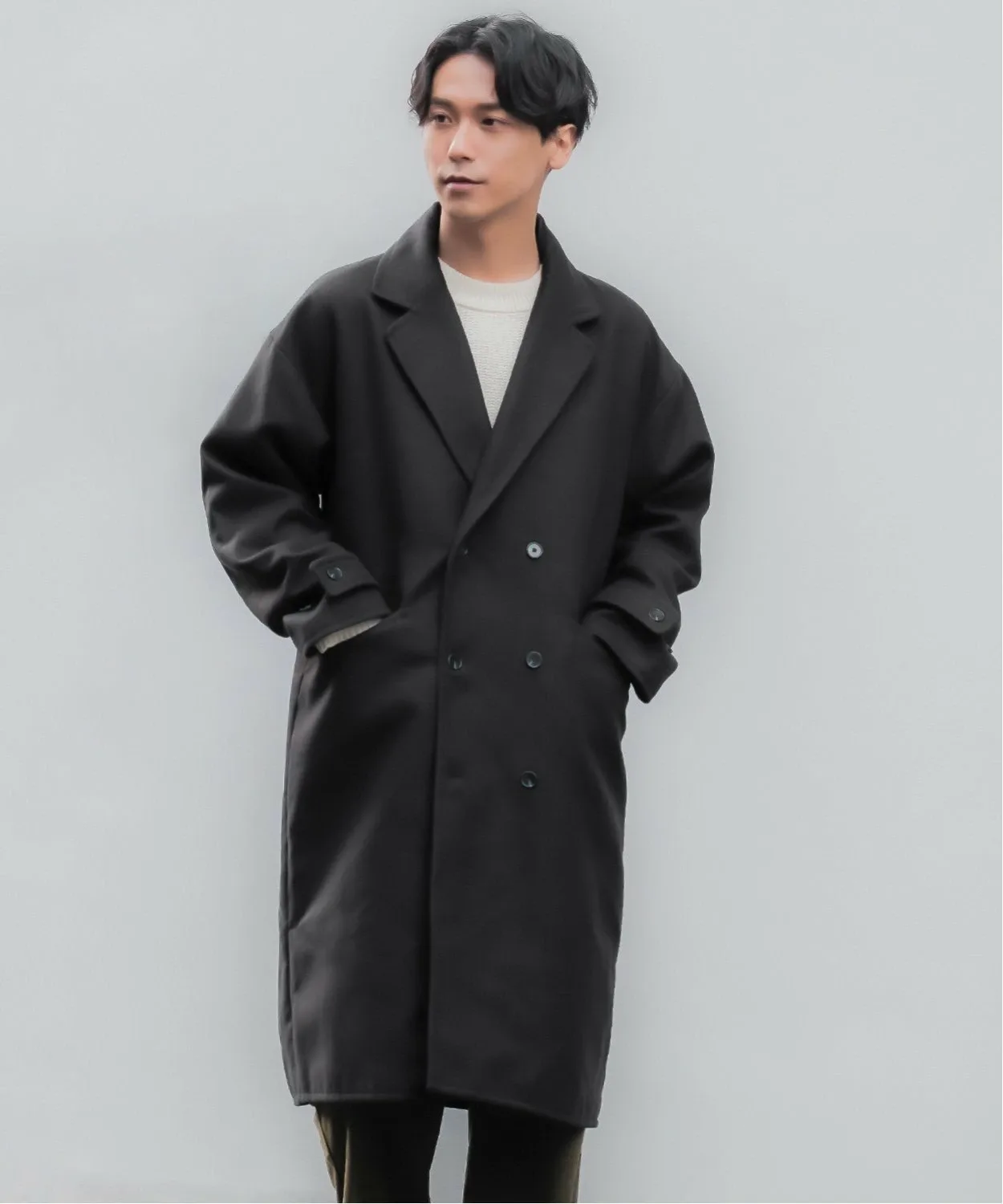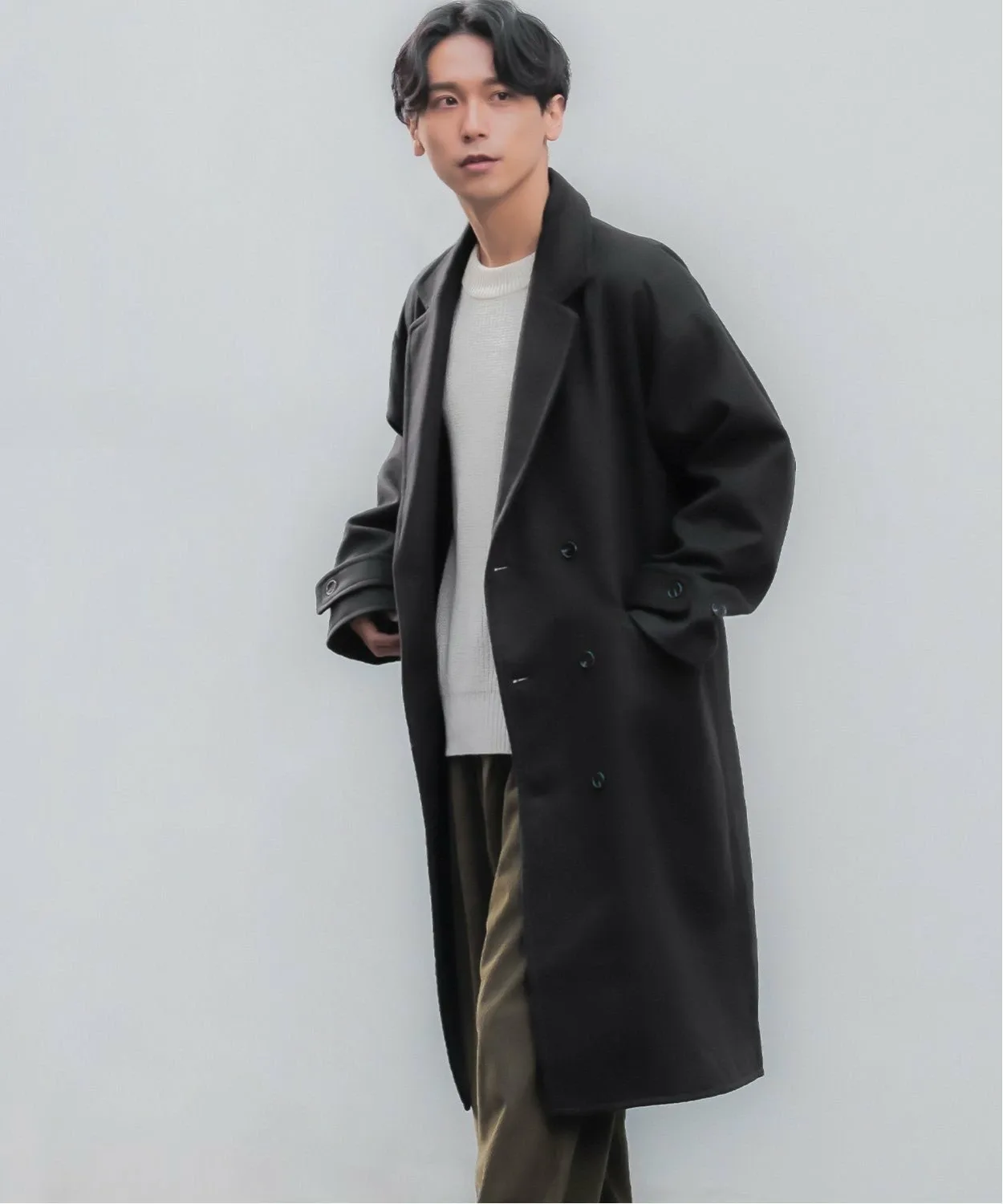 ●Двойная застежка на пуговицах для сдержанного, элегантного образа.