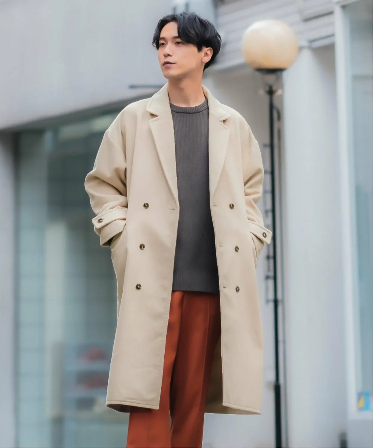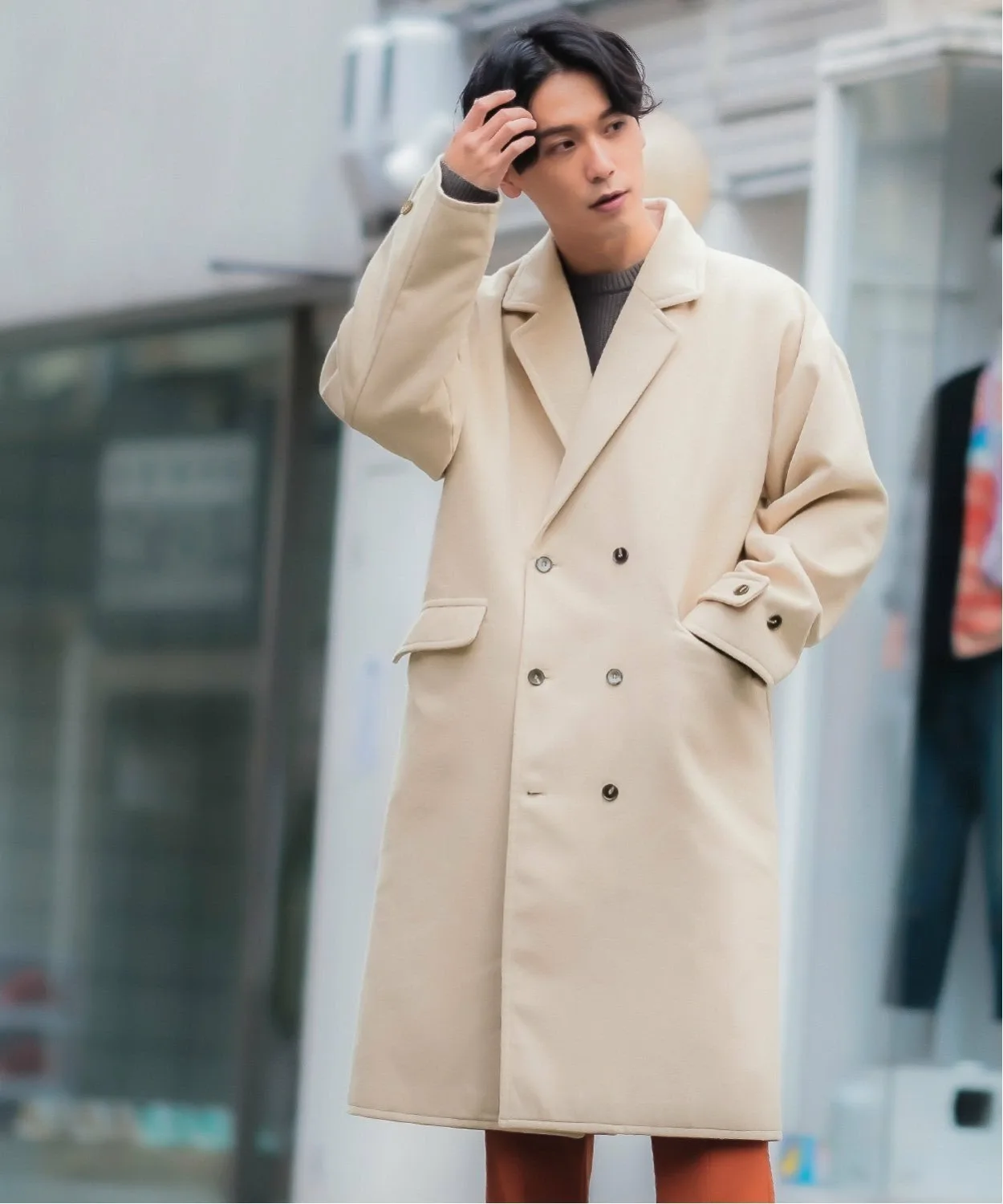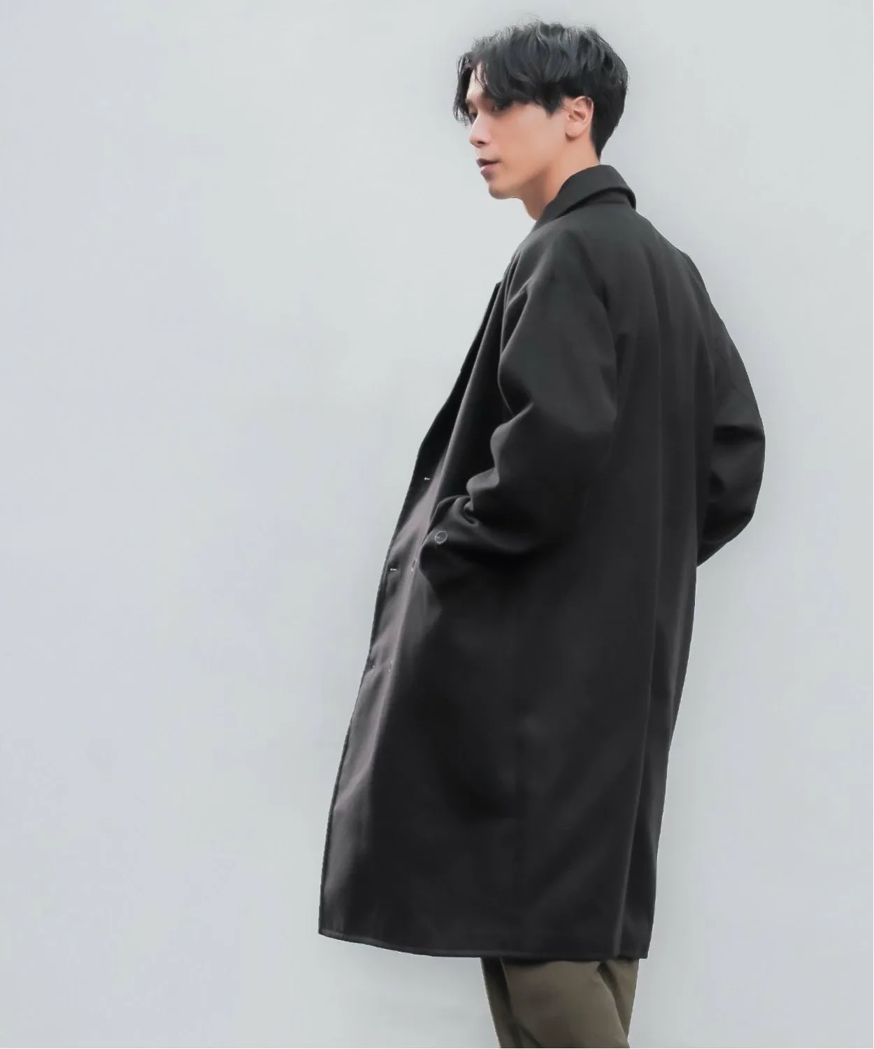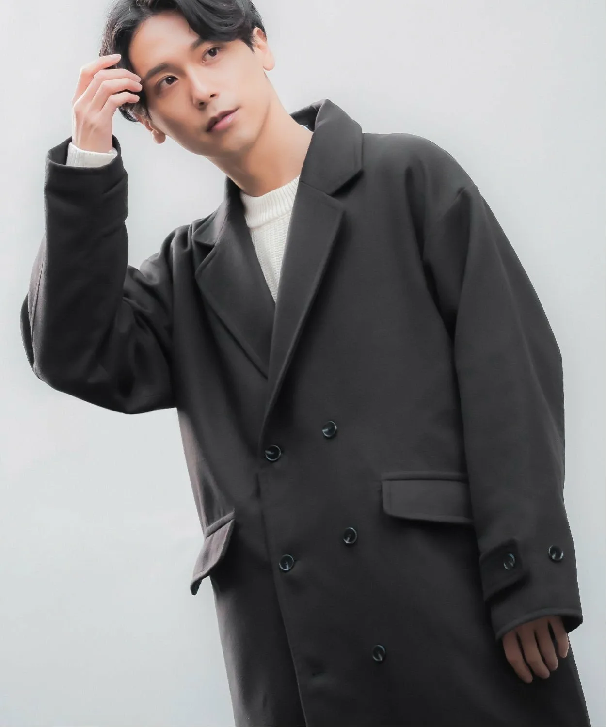 ●Двойная застежка на пуговицах для сдержанного, элегантного образа.
