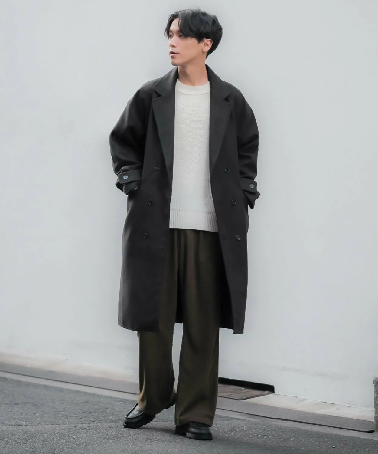 Его можно сочетать с брюками и вязаным свитером или с широкими брюками и толстовкой для более повседневного образа. Это пальто понравится как мужчинам, так и женщинам с мужественной фигурой.