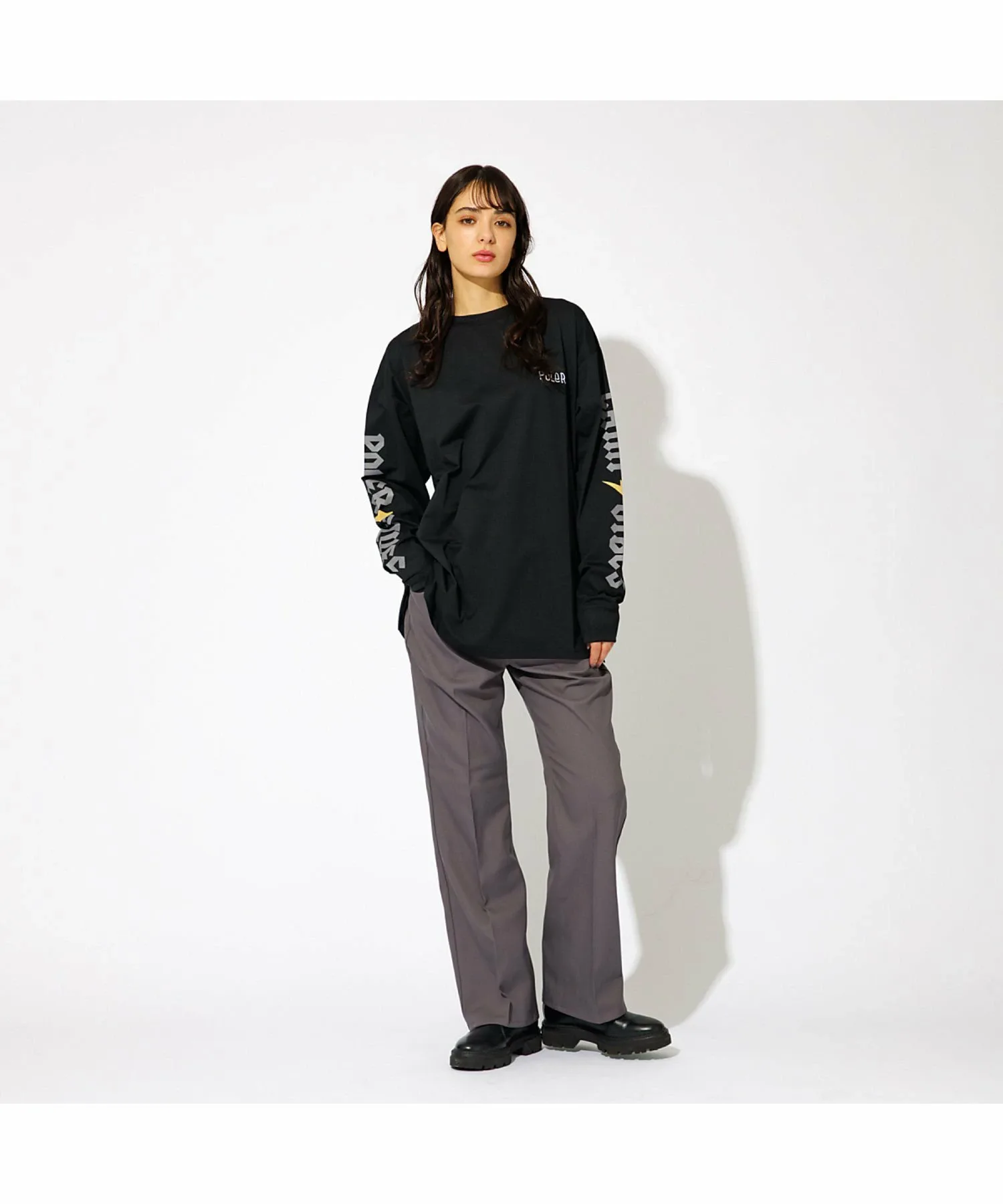 Эти брюки имеют центральную застежку и силуэт, плавно расширяющийся к низу, что позволяет создавать широкий спектр образов независимо от обуви, включая ботинки, кожаные туфли или кроссовки. Изготовленные из легкого и мягкого полиэстера, они не мнутся даже после многократного ношения и стирки, что делает их простыми в уходе.