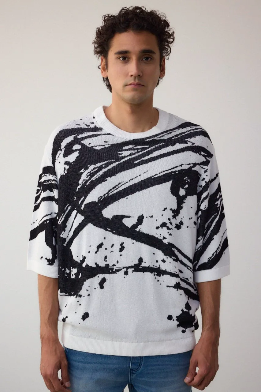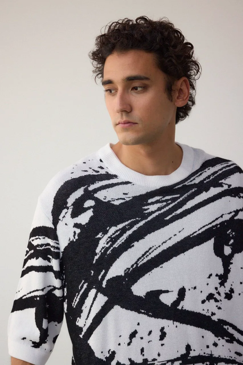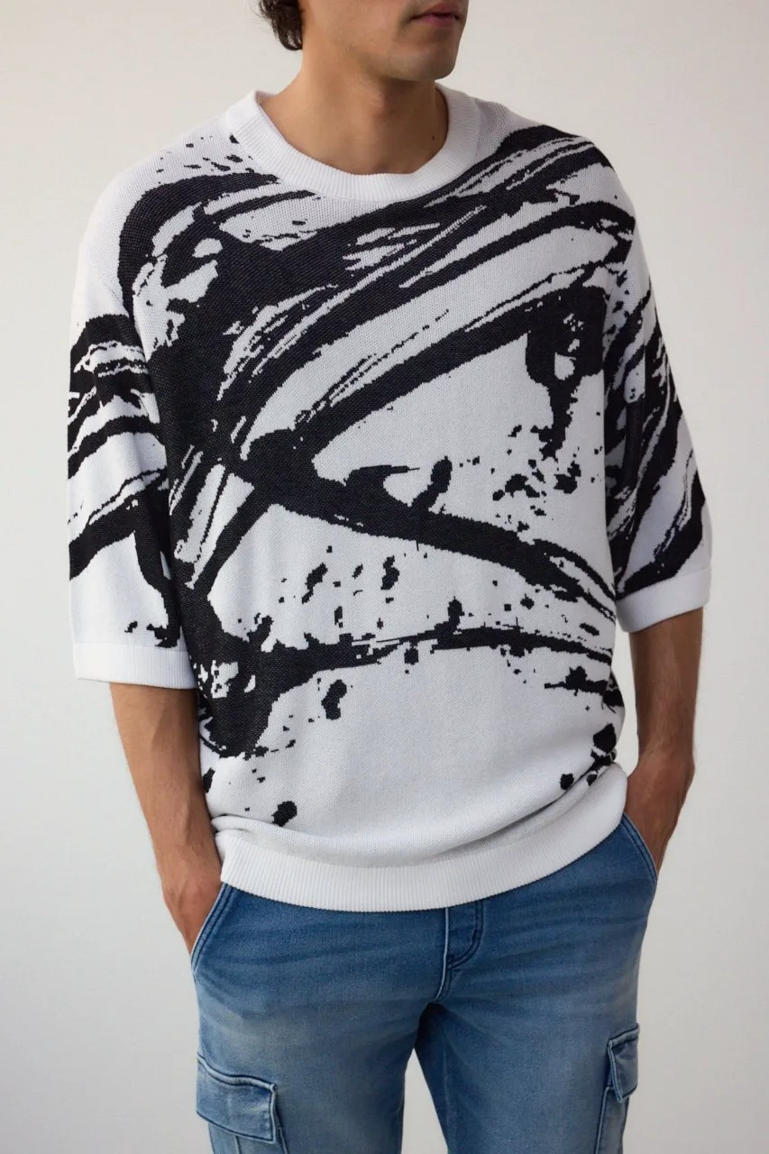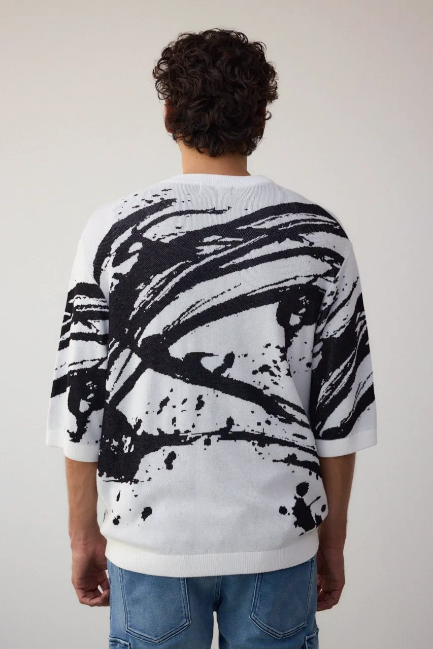 Трикотаж с рукавами 5/4 и абстрактным жаккардовым узором