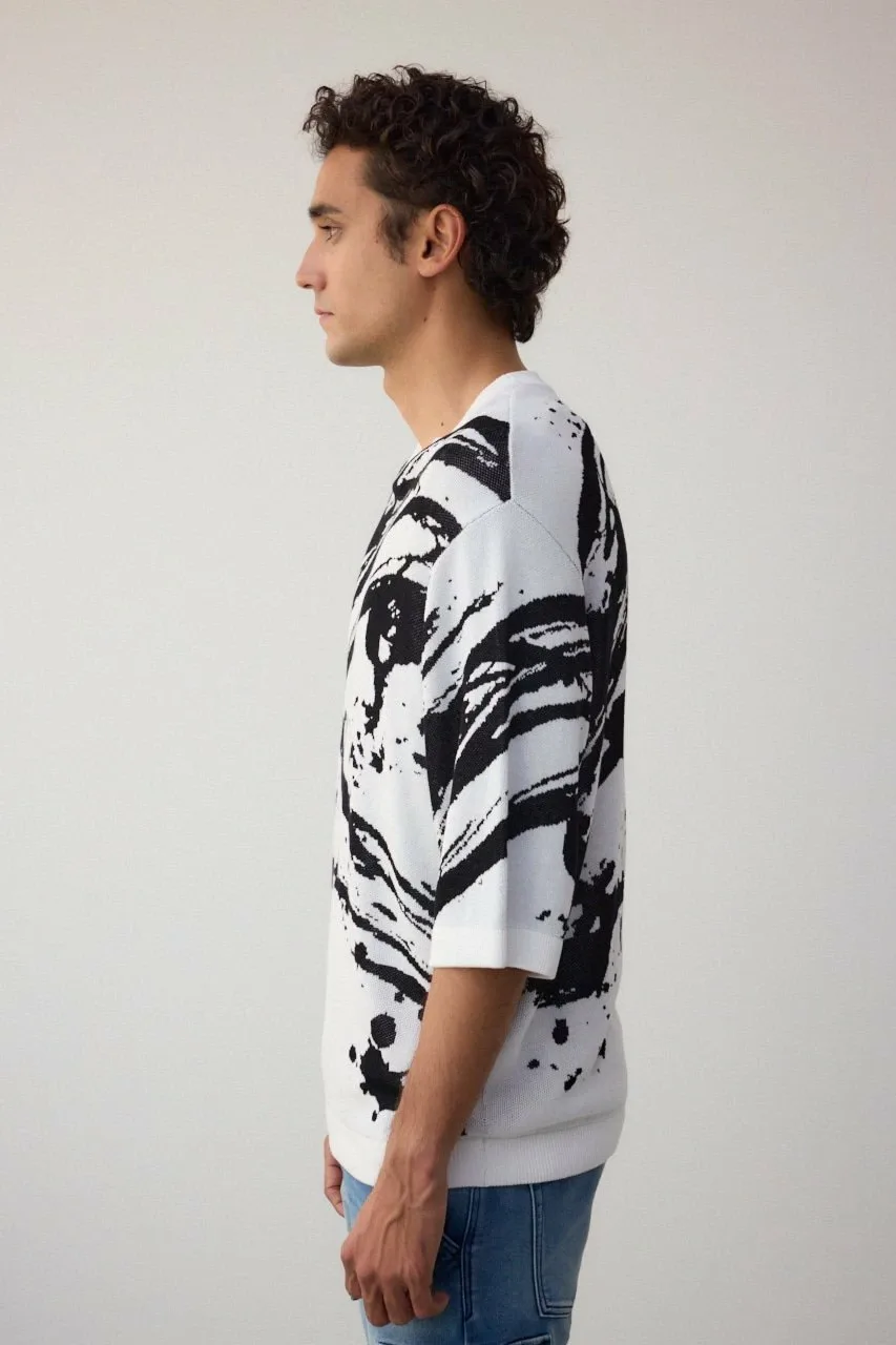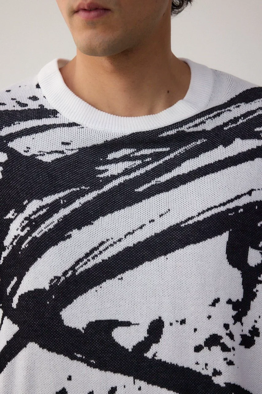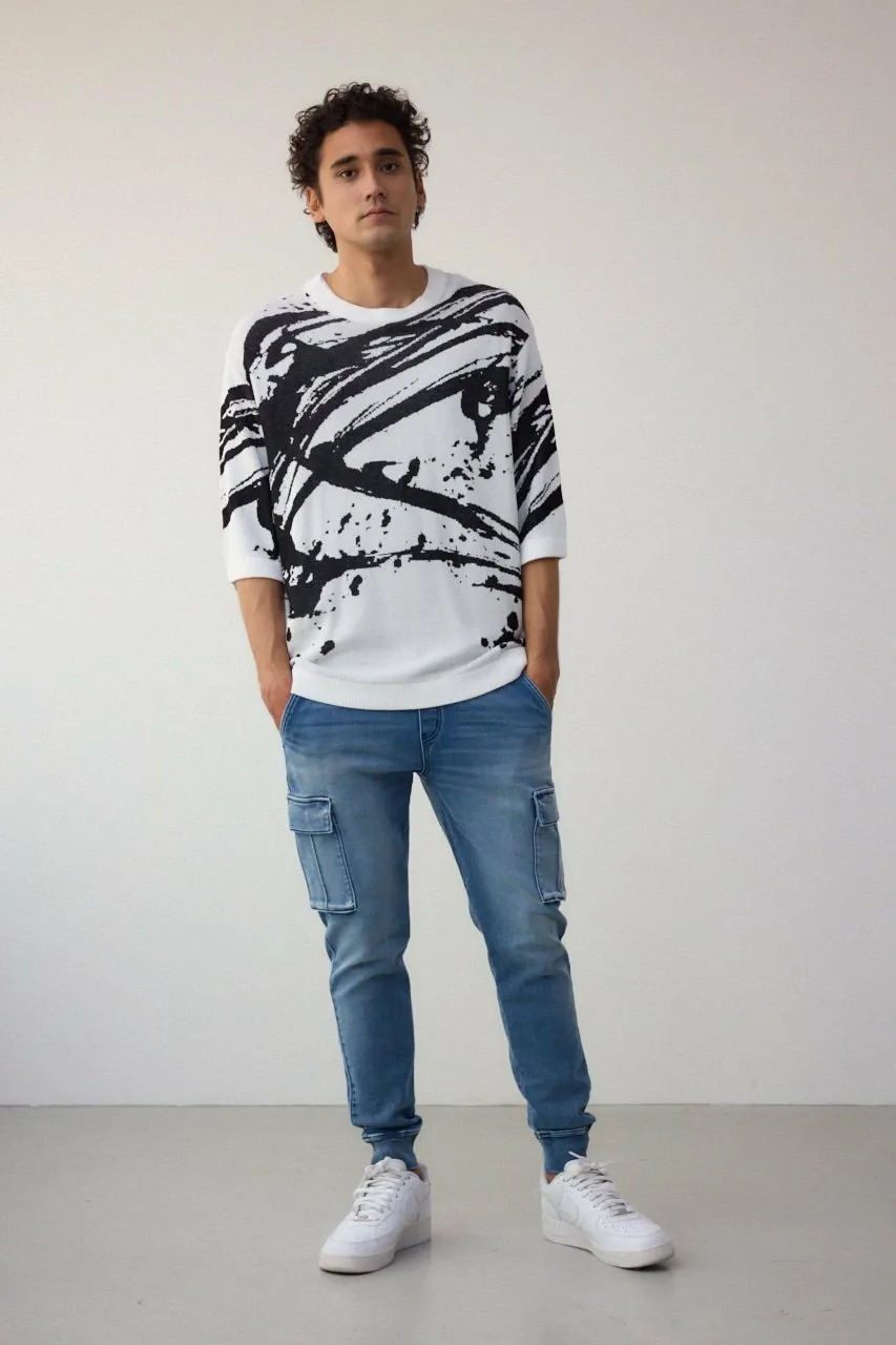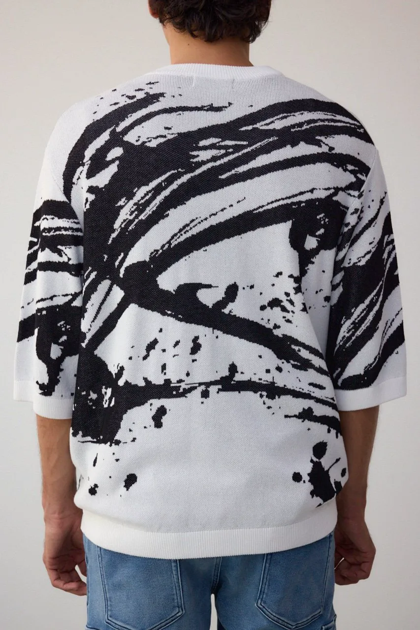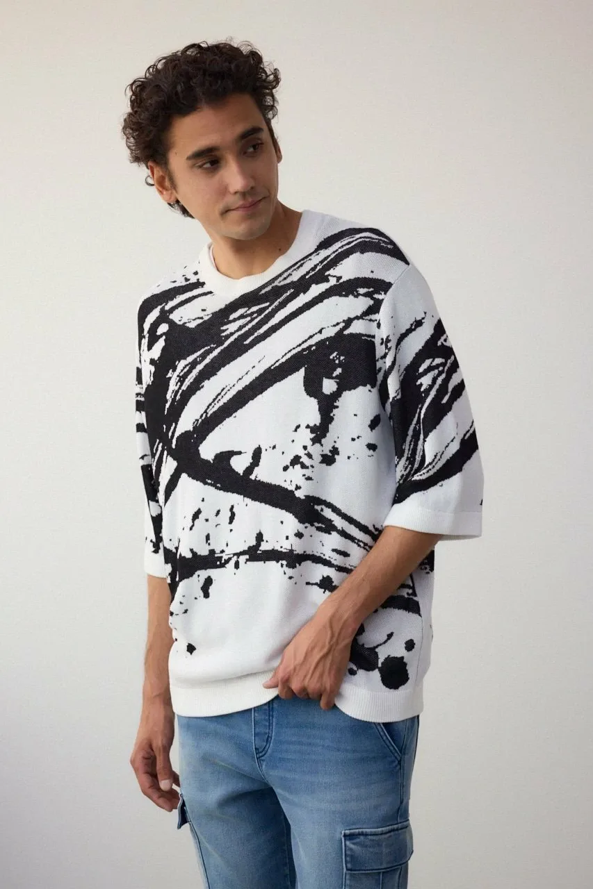 Трикотаж с рукавами 5/4 и абстрактным жаккардовым узором