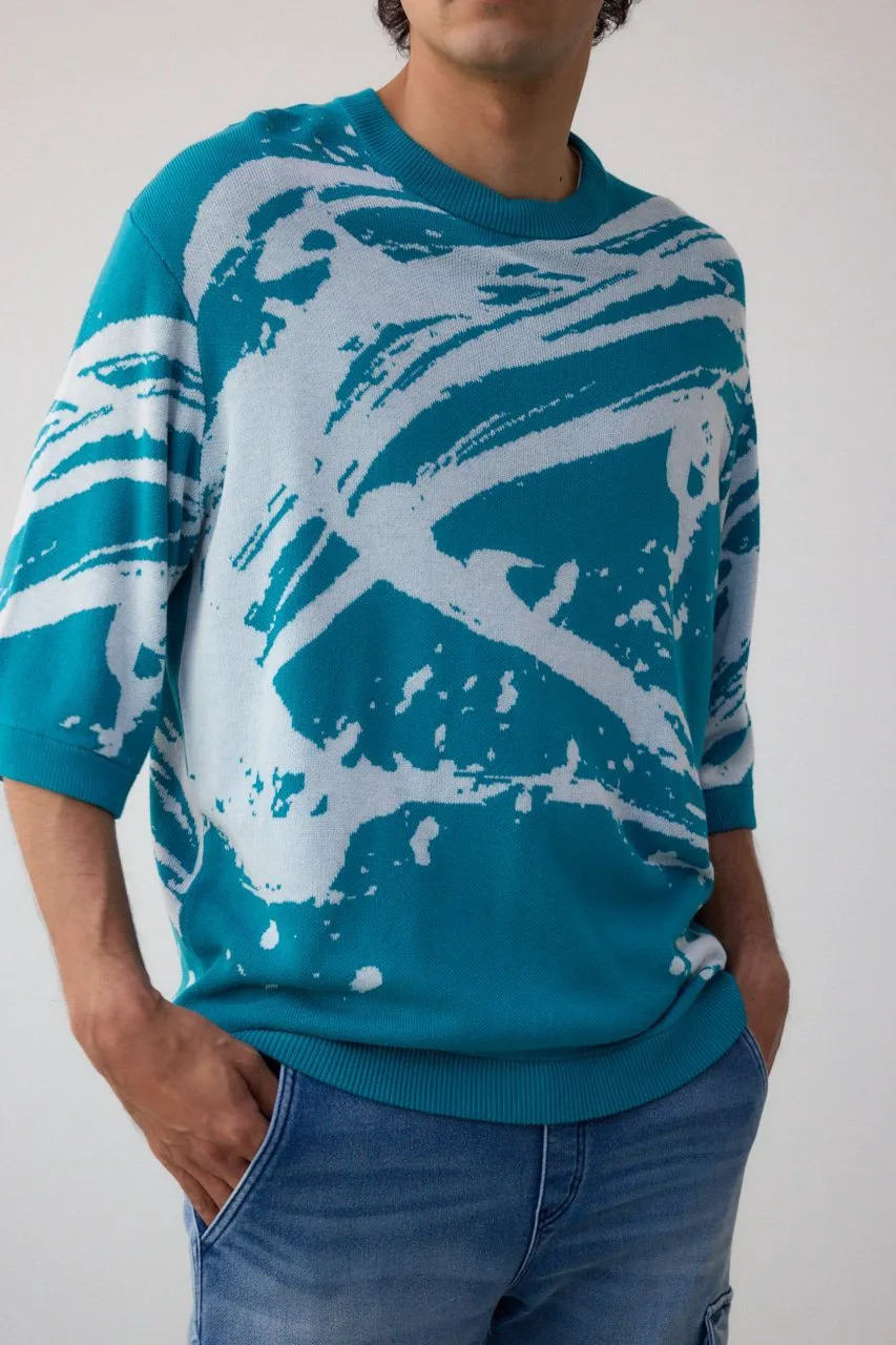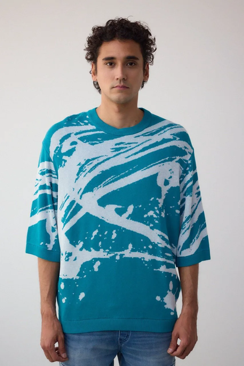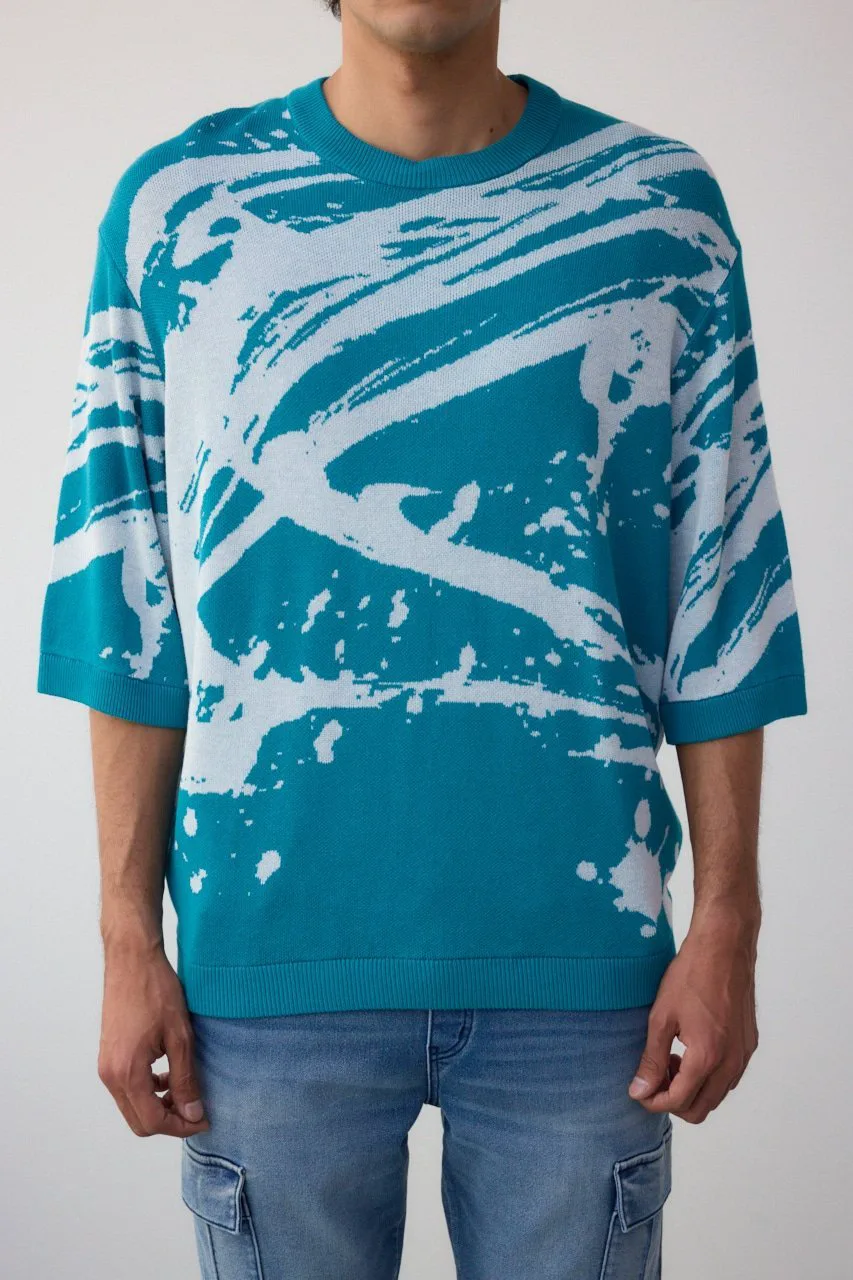 Трикотаж с рукавами 5/4 и абстрактным жаккардовым узором