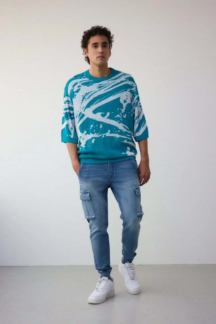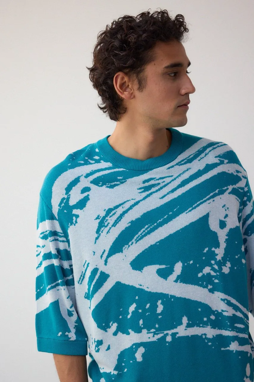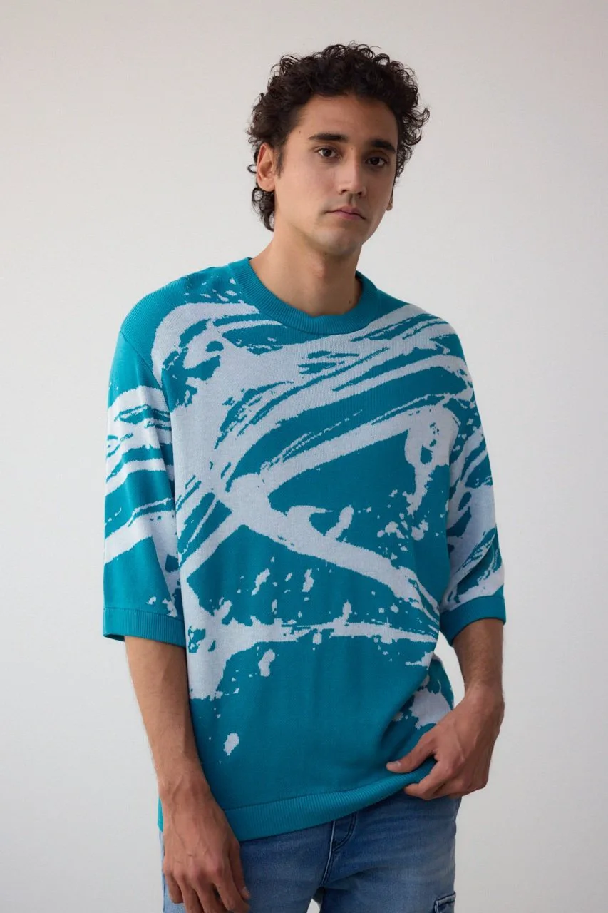 Трикотаж с рукавами 5/4 и абстрактным жаккардовым узором