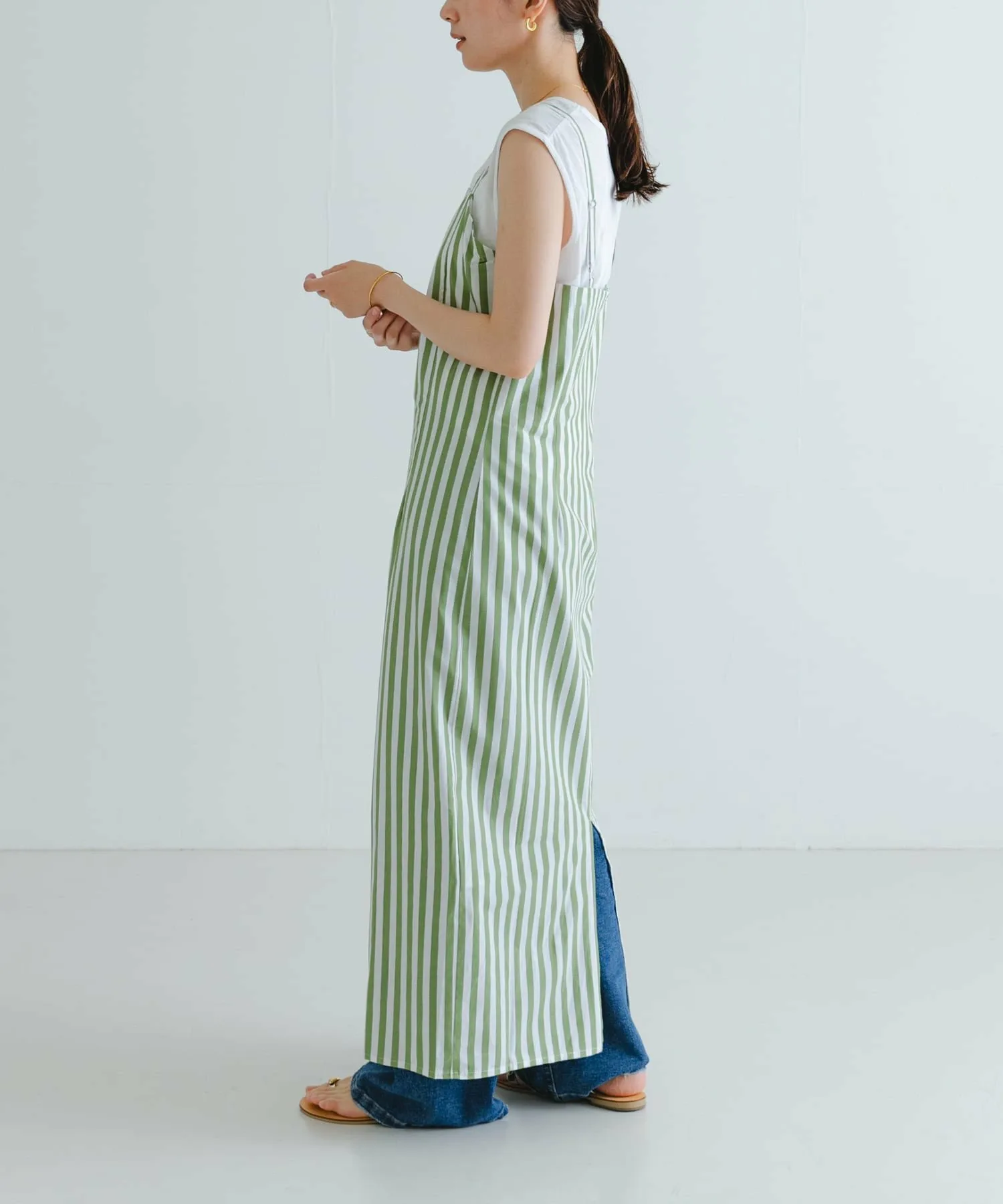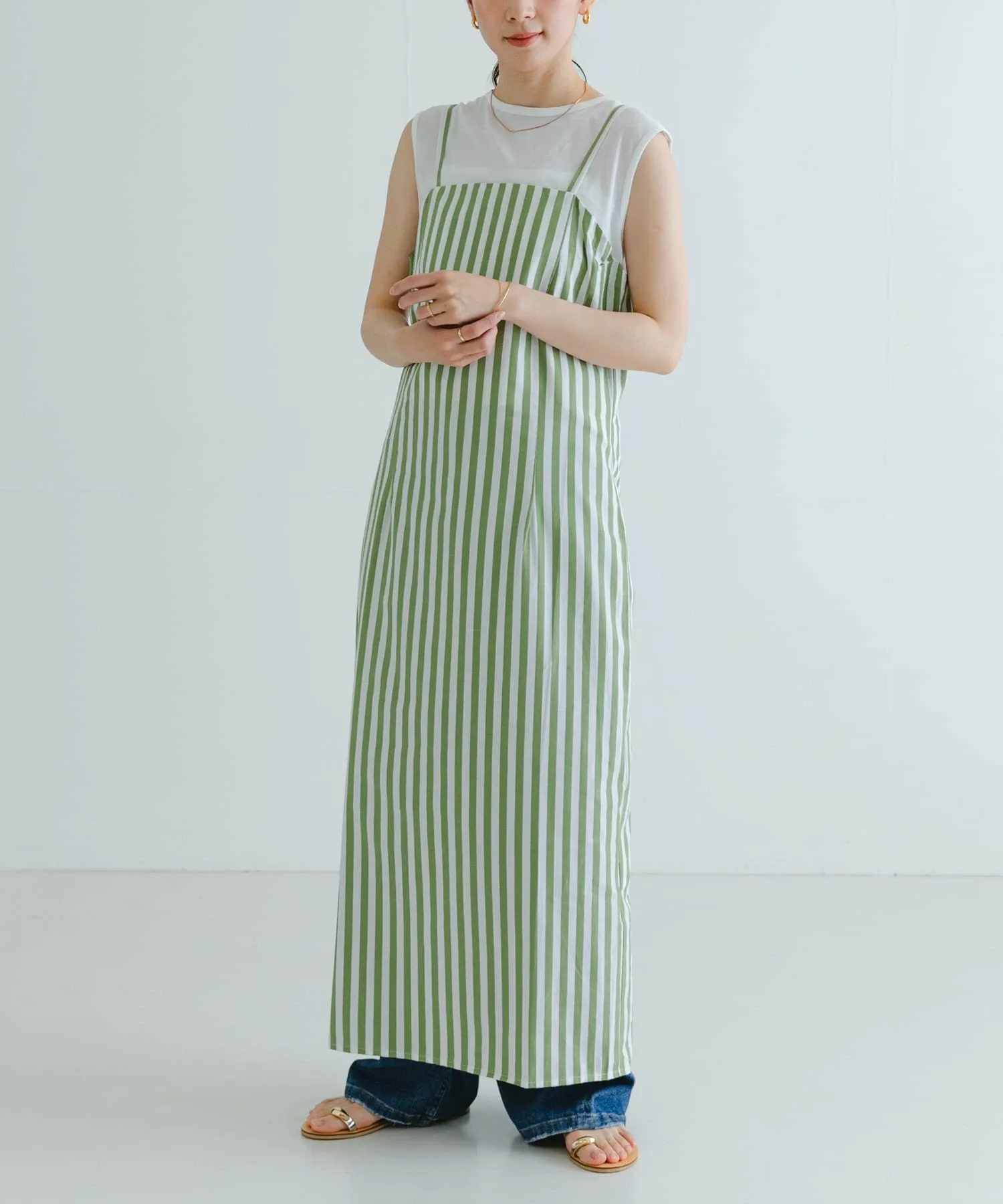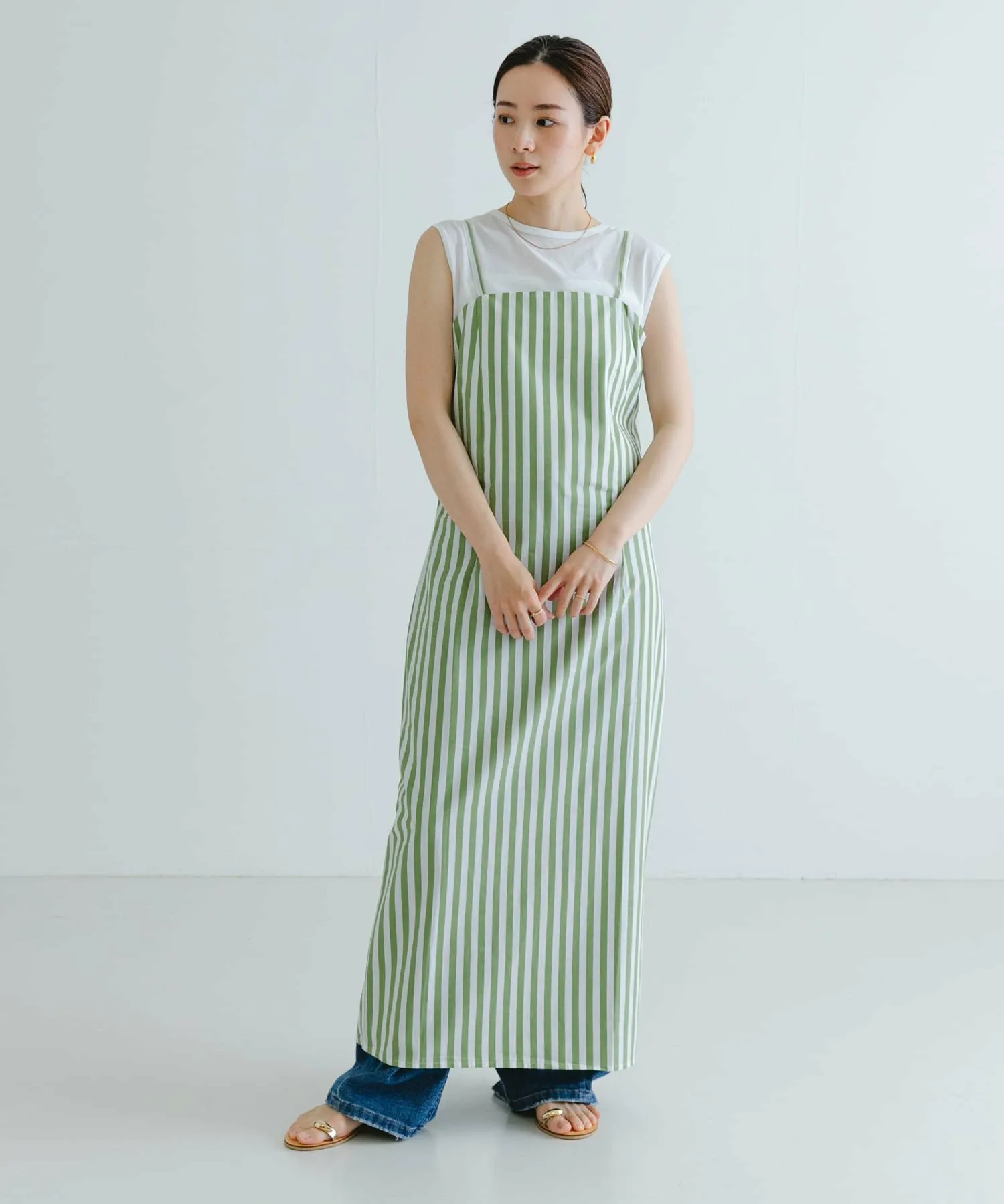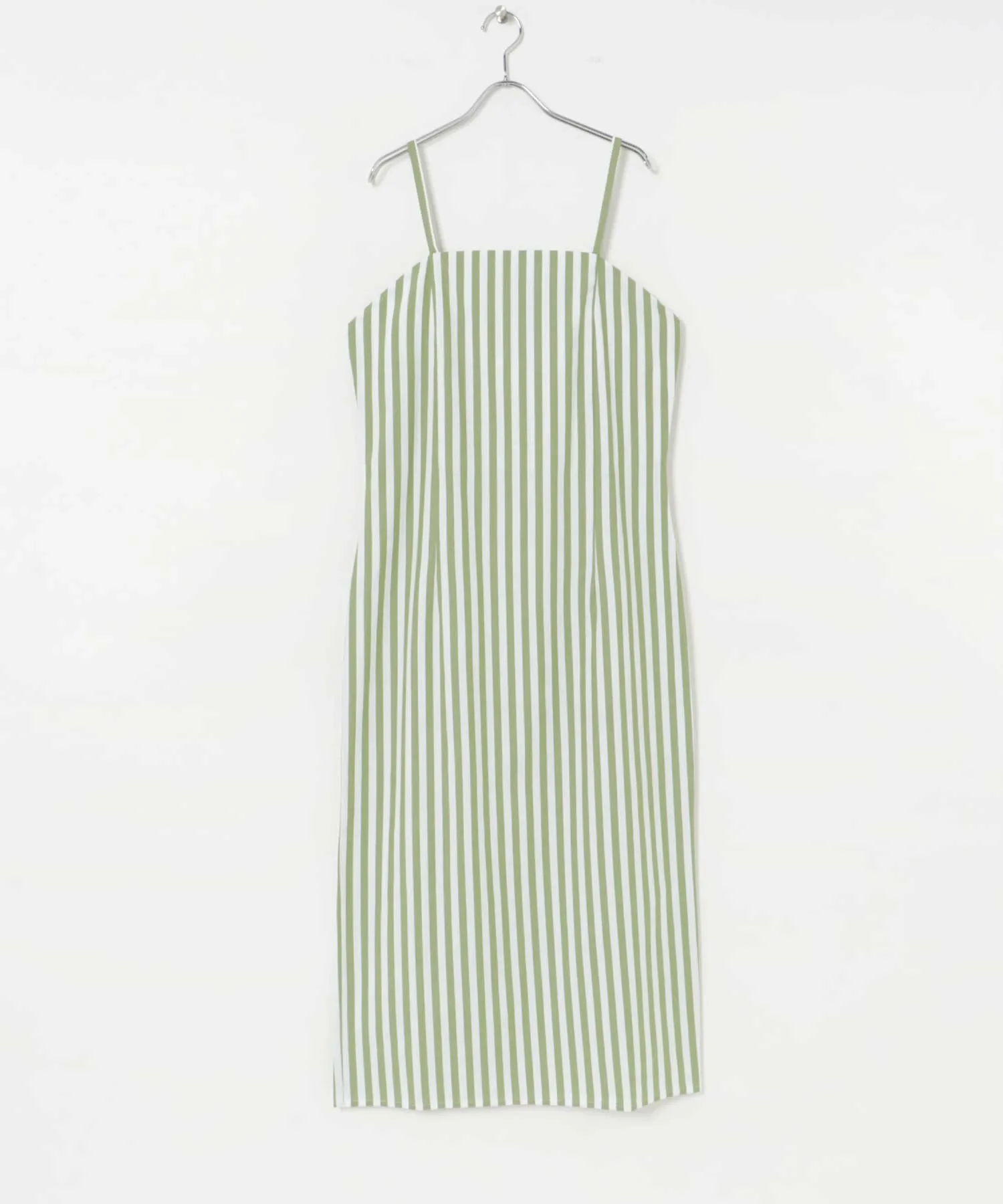 Платье с квадратным вырезом и полосатым узором.