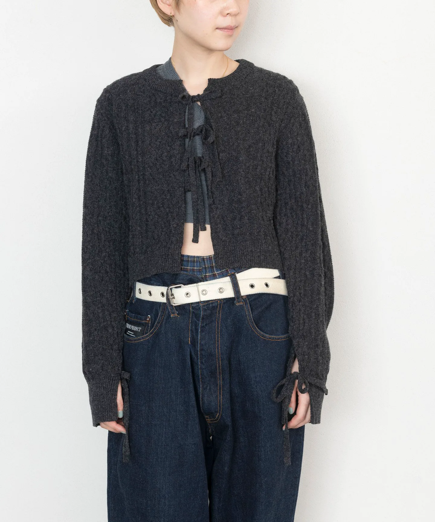 Ленточные завязки на манжетах добавляют акцент, делая его женственным и повседневным.
