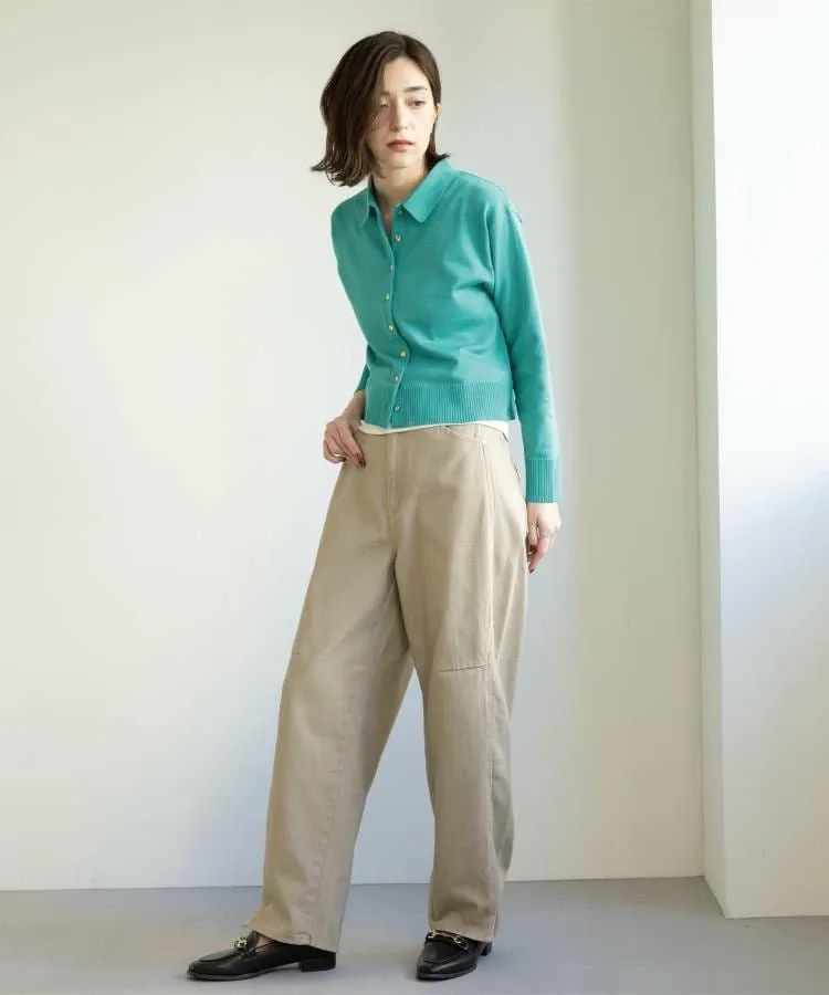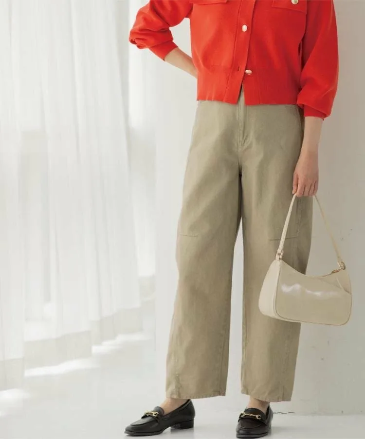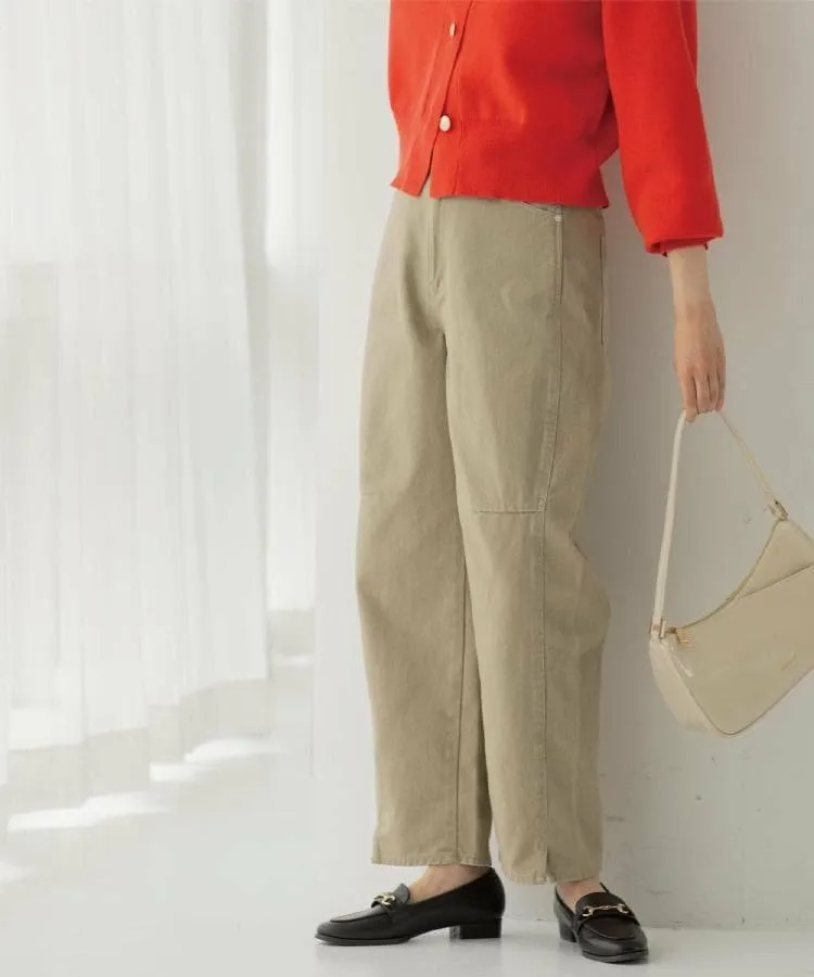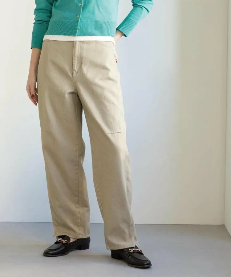 - Джинсовые брюки с модным изогнутым силуэтом.