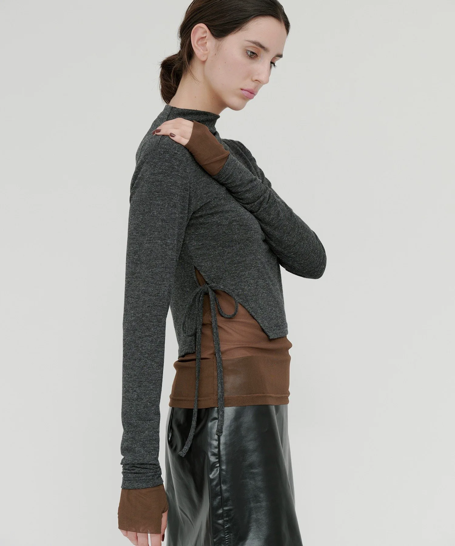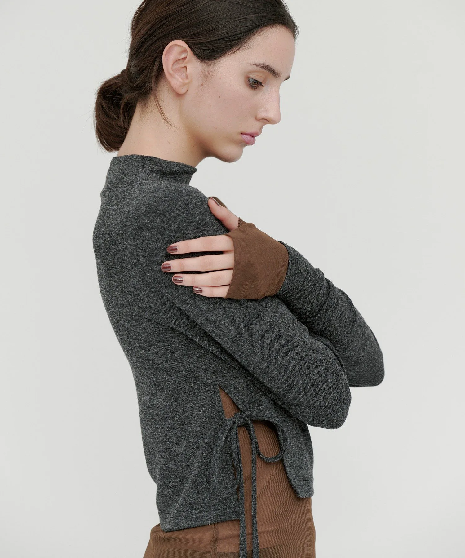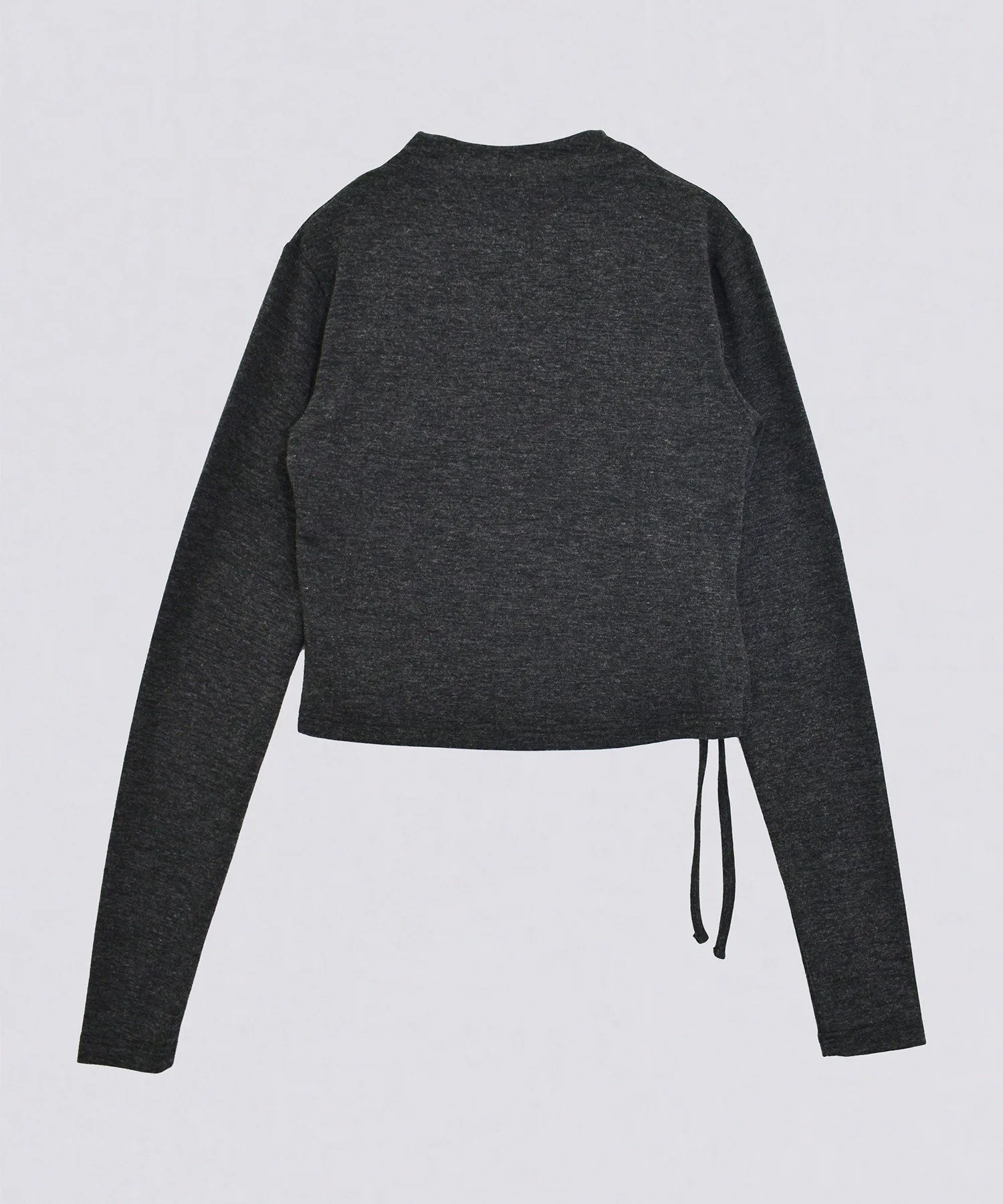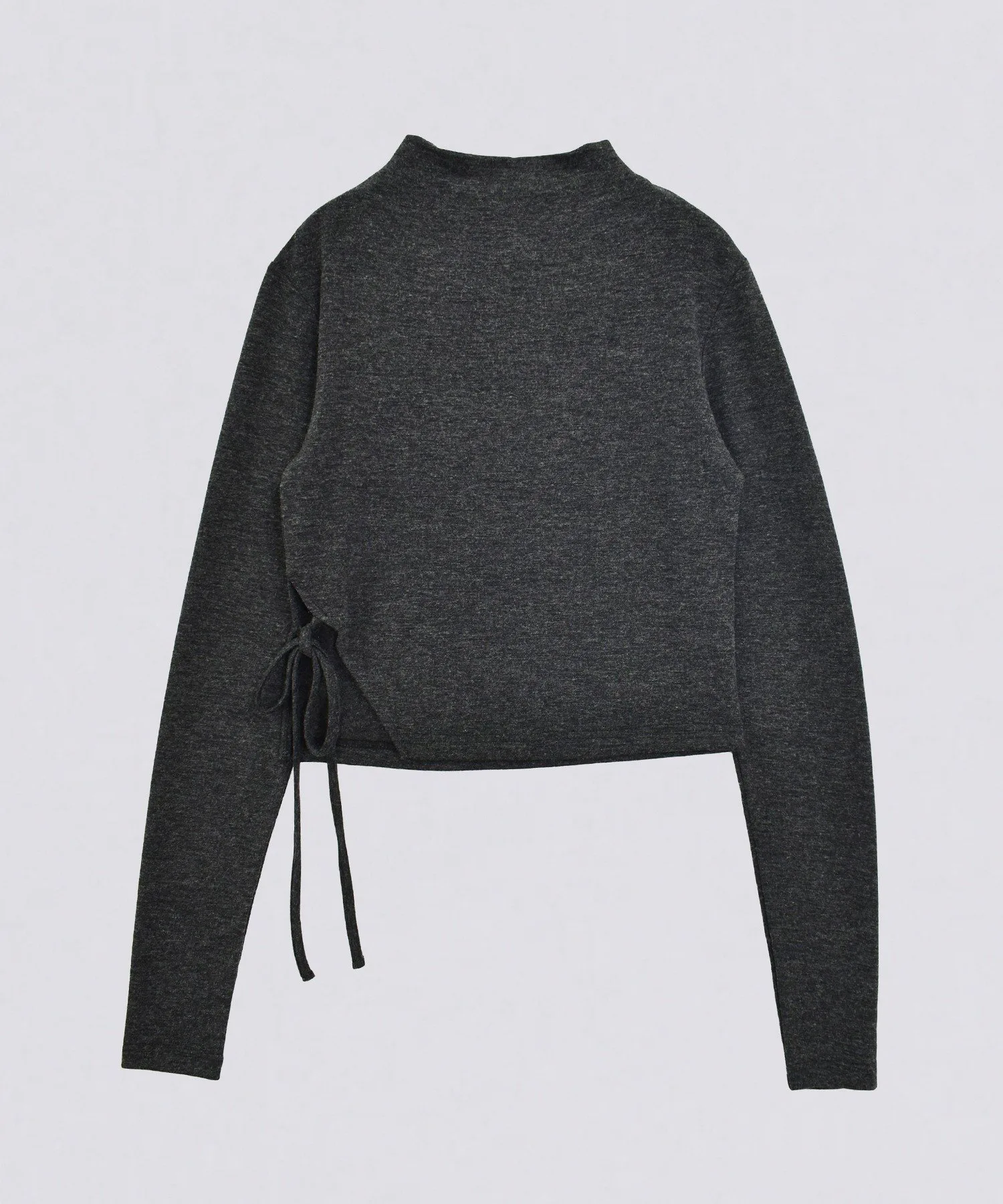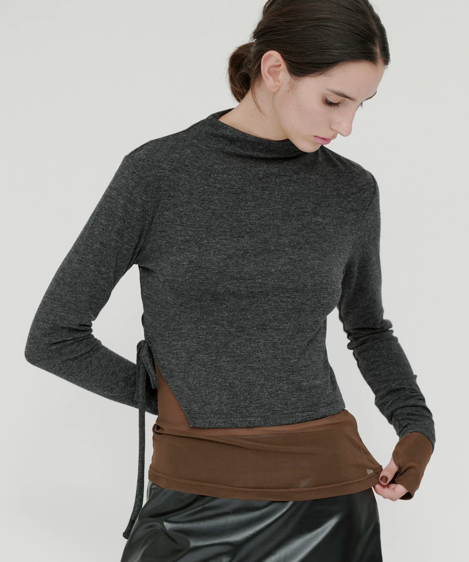 Топ, сшитый по фигуре, с боковым разрезом для эффектного образа.Ленточный шнурок у разреза можно завязать бантом или свободно, что позволяет создавать самые разные стили.Воротник-стойка подчеркивает затылок, а короткая длина выгодно выделяет фигуру.Завышенная линия талии создает сбалансированный образ.Ткань, напоминающая трикотаж, приятна на ощупь. Умеренная толщина уменьшает прозрачность, что делает его подходящим для длительного ношения.Вы также можете создать образ, продемонстрировав свое нижнее белье.Доступен в трех цветах: черном и темно-сером, которые легко носить каждый день, и цвете слоновой кости, который выглядит элегантно.