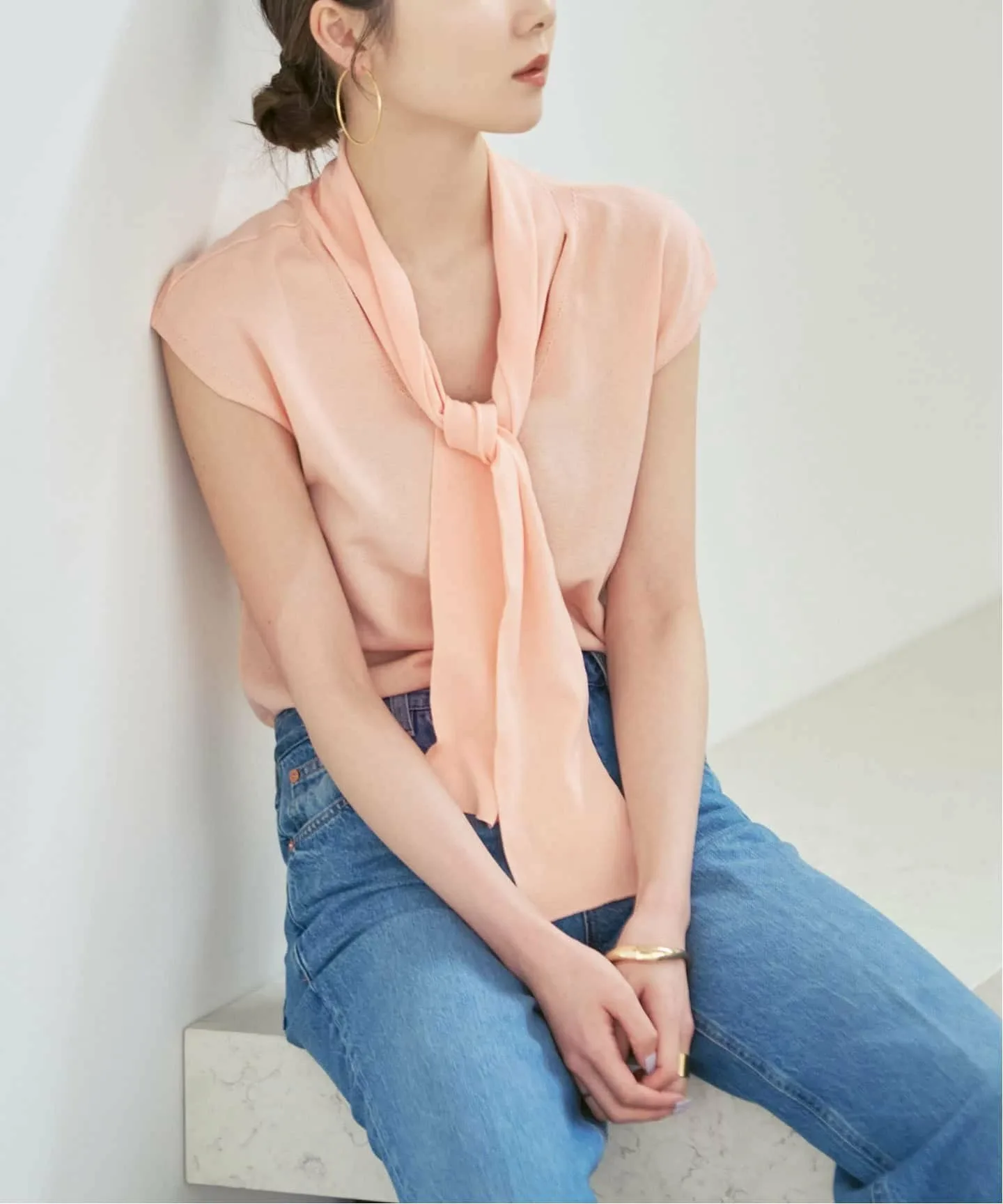 Этот вязаный топ выполнен в весенних тонах и украшен великолепным бантом на шее.