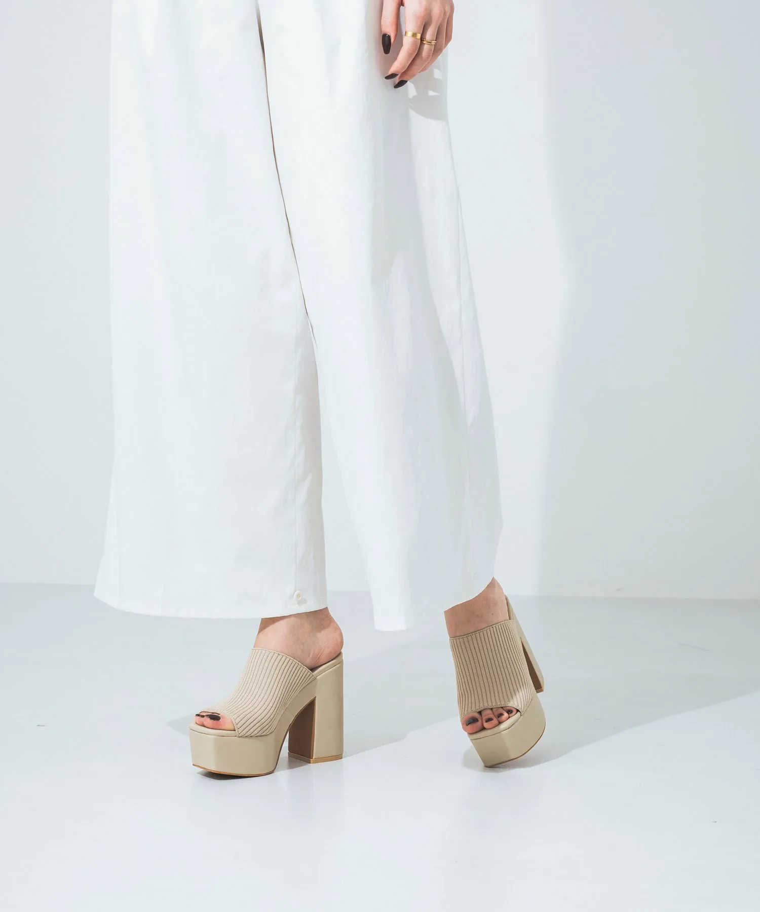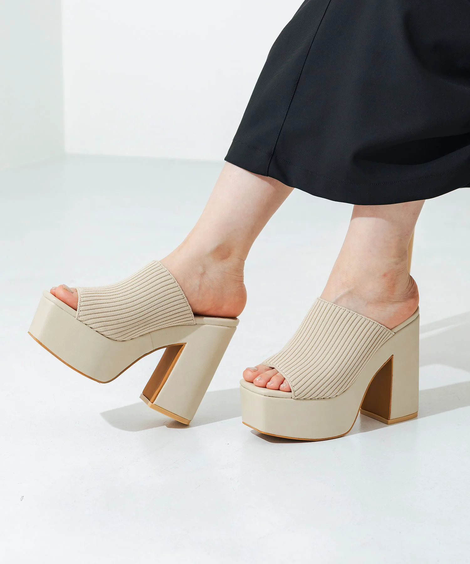 Доступны размеры от XS до LL! Эти сандалии имеют толстую подошву и широкий каблук, что придает им эффектный вид. Тщательно продуманная подошва толщиной 12 см создает силуэт, который выгодно подчеркивает ноги, создавая объемную, но при этом изящную линию. Простой дизайн мюлей позволяет легко надевать сандалии, а трикотажный материал обеспечивает удобную посадку и отличную устойчивость. Эти сандалии, подчеркивающие фигуру, подойдут к любому образу, от повседневных до платьев.