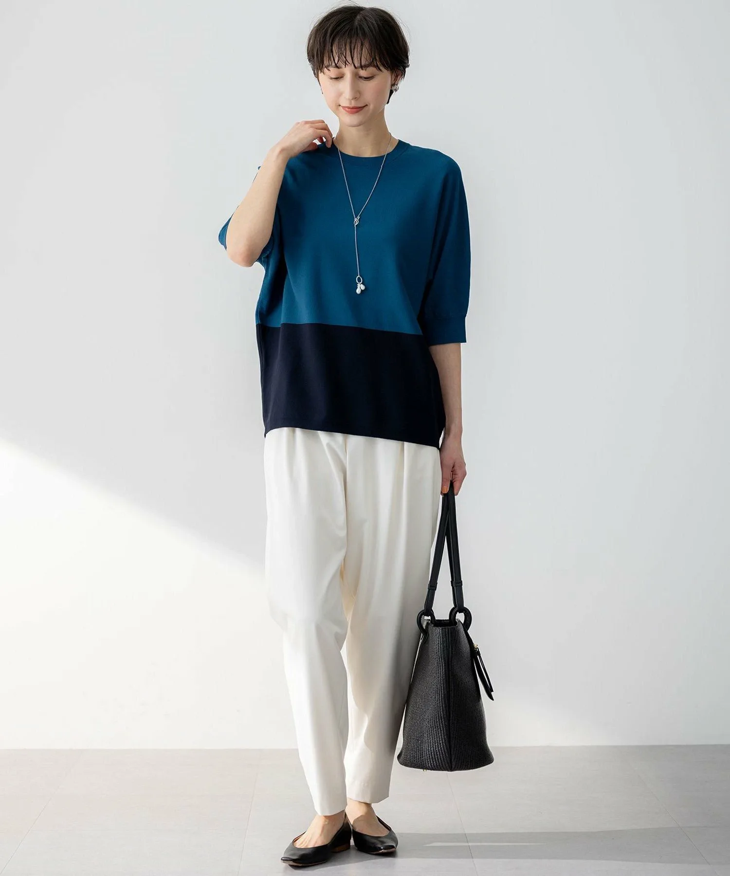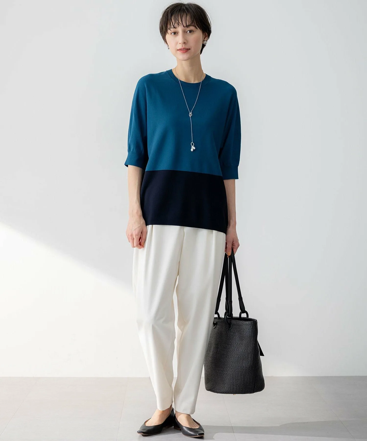 Этот трикотажный пуловер имеет объемные, не стесняющие движения рукава «летучая мышь» длиной до локтя, что придает ему женственный вид. Универсальный дизайн позволяет создавать различные образы: носить его навыпуск для создания широкого силуэта или заправить, чтобы подчеркнуть рукава для современного, элегантного образа. Изготовлен из эластичного материала, прост в уходе и удобен в носке. Универсальная вещь, идеально подходящая для всех сезонов, от лета до начала осени. Доступен в восьми однотонных и двухцветных вариантах, этот универсальный предмет одежды легко сочетается как с формальными, так и с повседневными случаями, что делает его незаменимым для любого случая. Доступен в шести однотонных цветах: чистый белый (#001), базовый черный (#005), яркий оранжевый (#020), мягкий бежевый (#033), акцентный горчичный (#040) и изысканный темно-зеленый (#065). Двухцветная расцветка представлена в двух вариантах: привлекательный контраст бежевого и черного (#533) и стильный темно-зеленый и темно-синий (#565).
