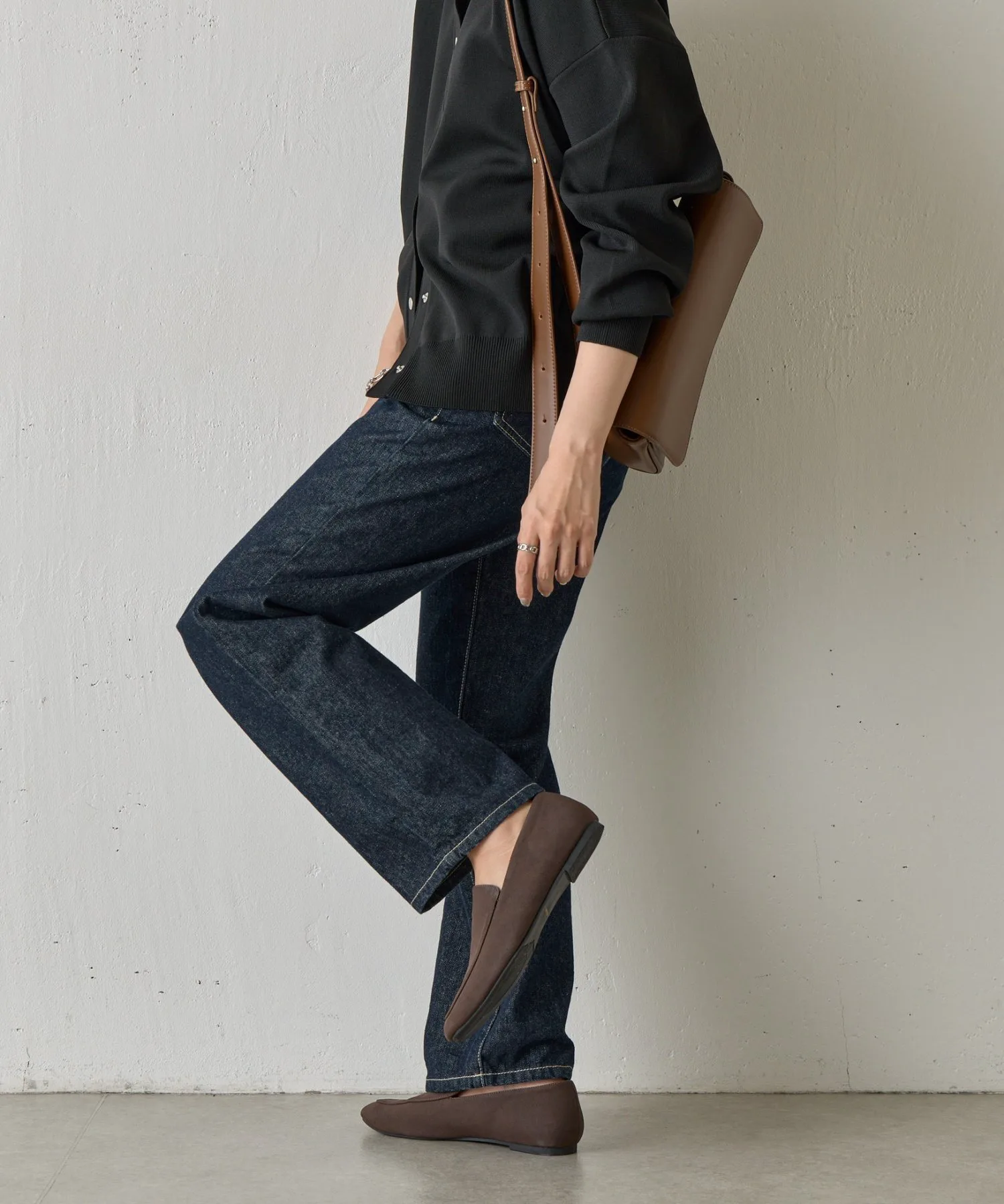 Свободный силуэт прямых джинсов отлично подчеркивает фигуру и делает вас стройнее◎