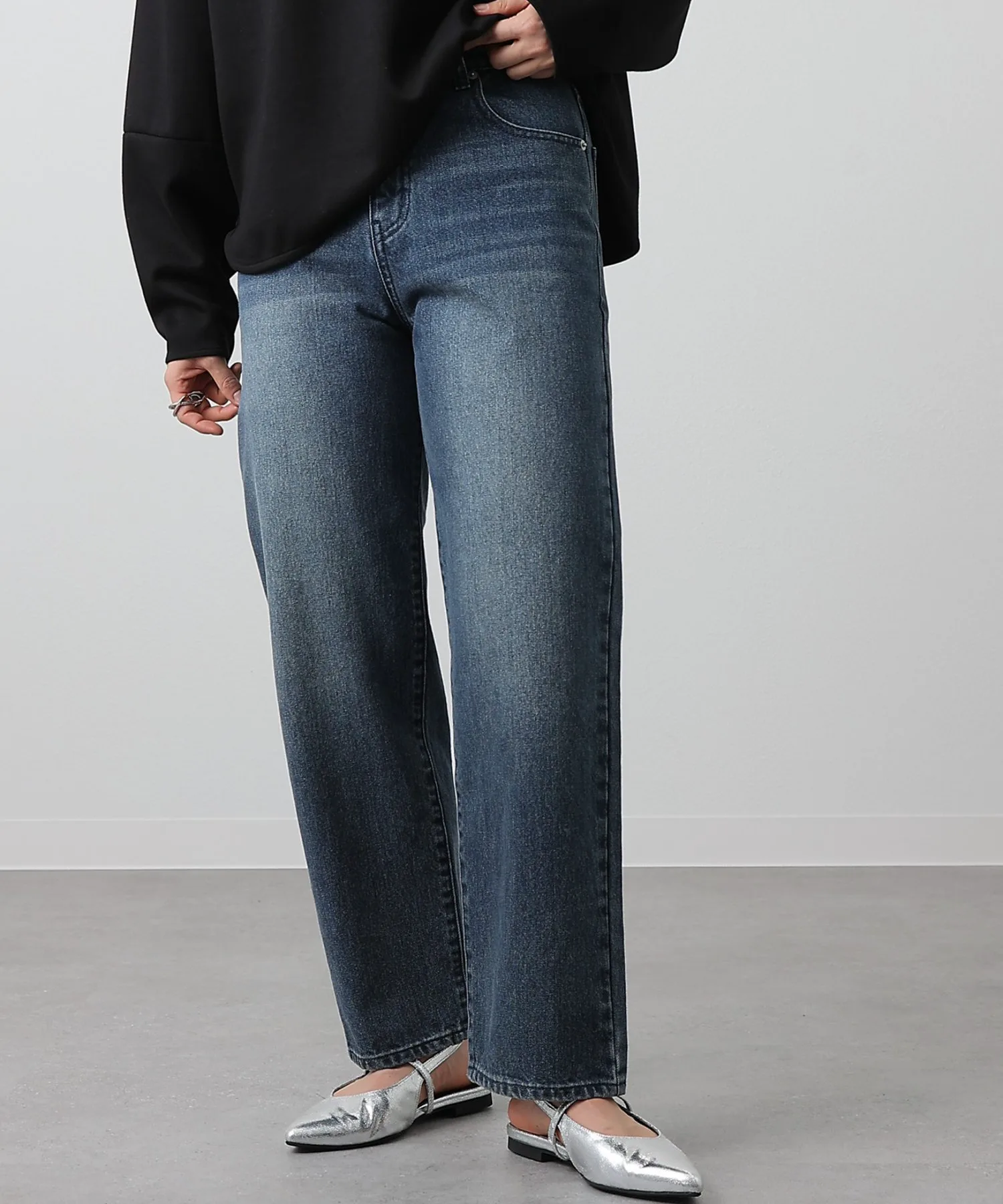 Свободный силуэт прямых джинсов отлично подчеркивает фигуру и делает вас стройнее◎
