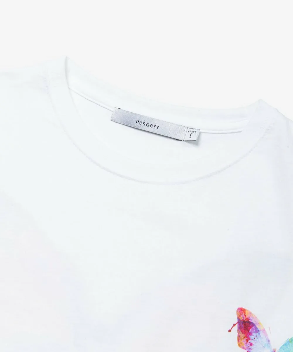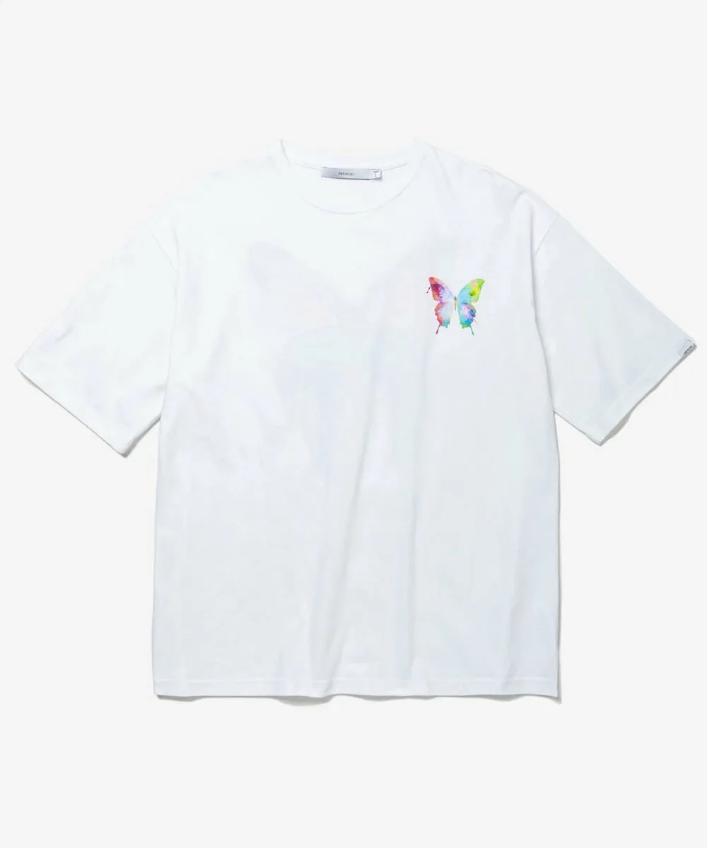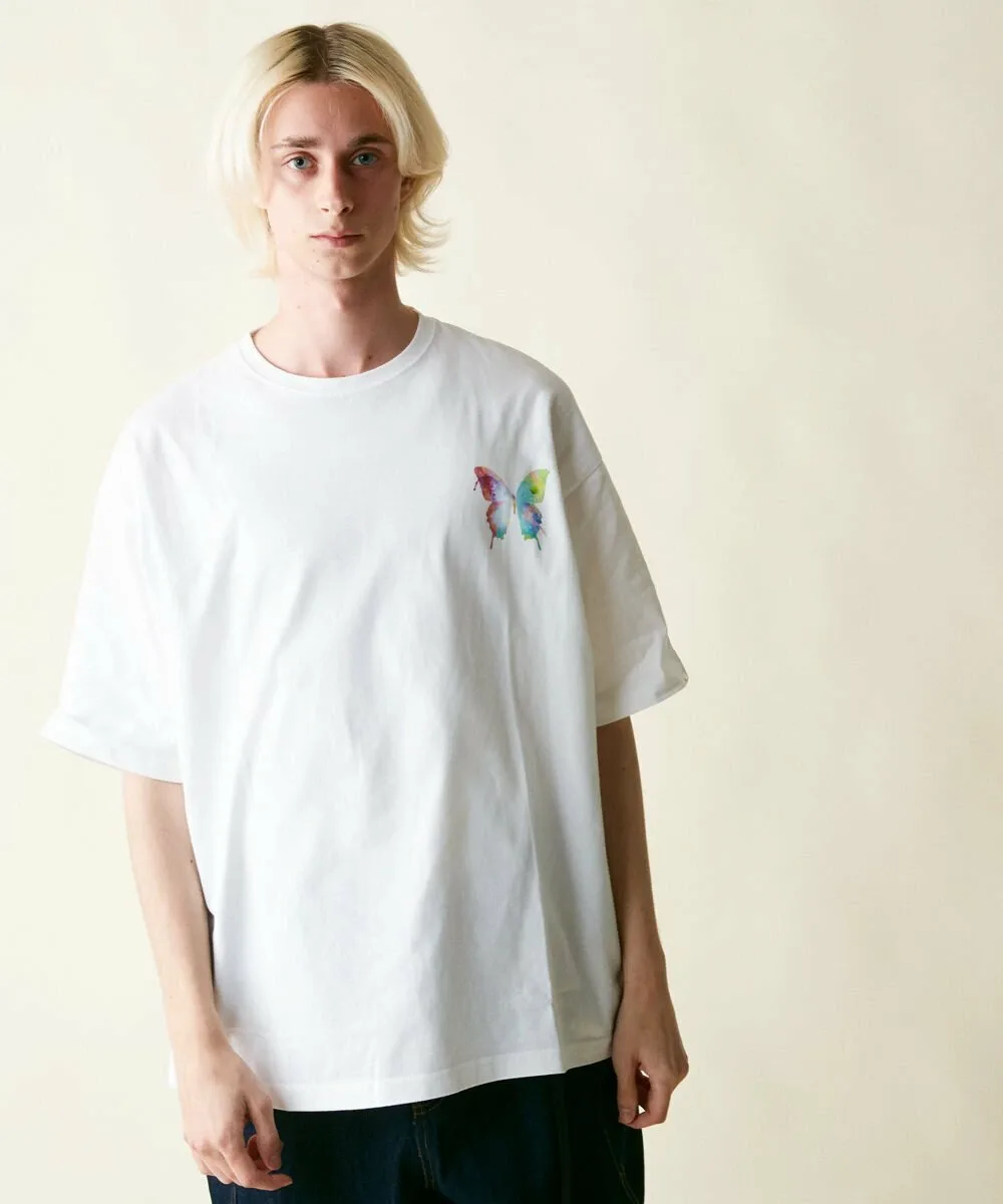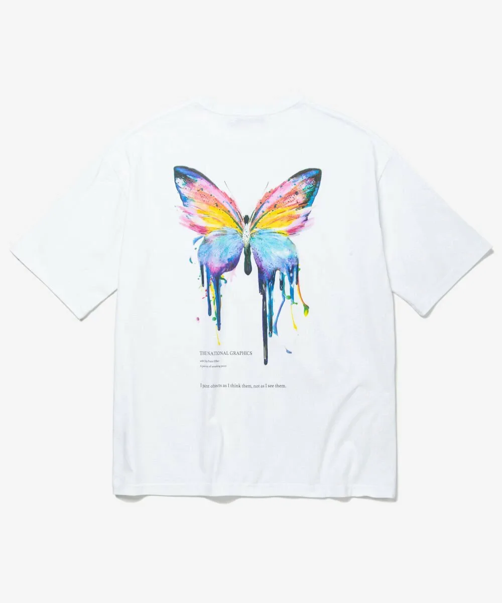Этот крой и силуэт украшен смелым графическим принтом, нарисованным от руки, на передней части и мотивом бабочки на спине.
