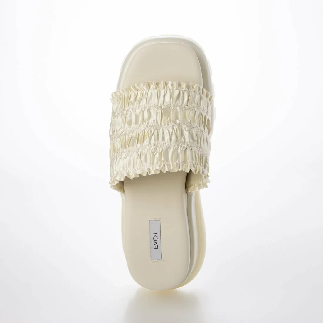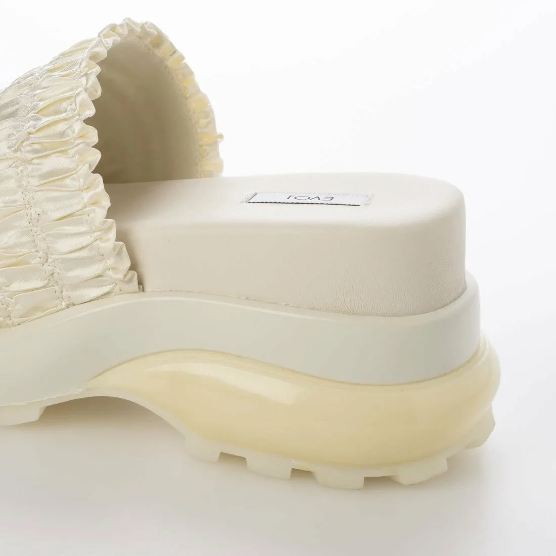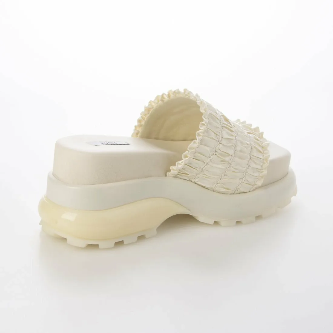 Классические летние сандалии-мюли. Нежные оборки и сборки создают женственный дизайн, а массивная подошва — сбалансированный повседневный образ. Эти сандалии сочетают в себе спортивный и одновременно женственный стиль. Мягкая стелька делает их удобными в ношении.