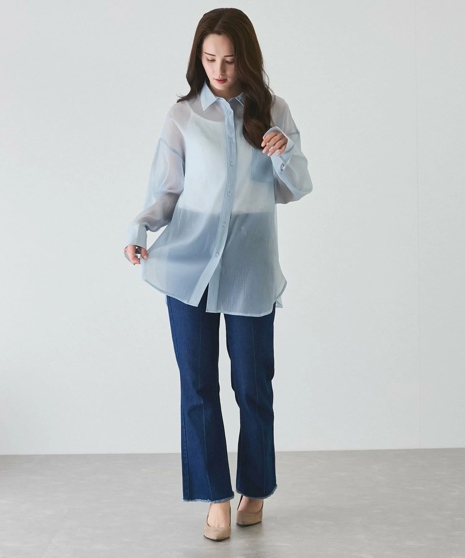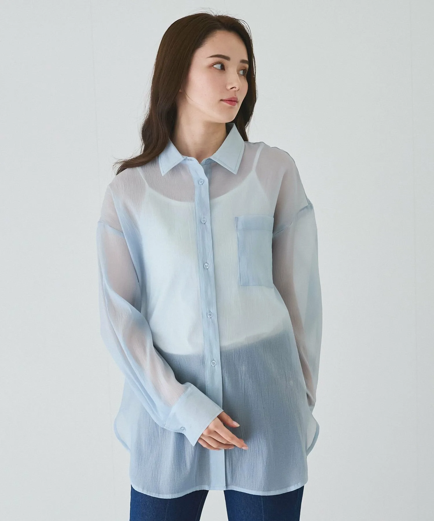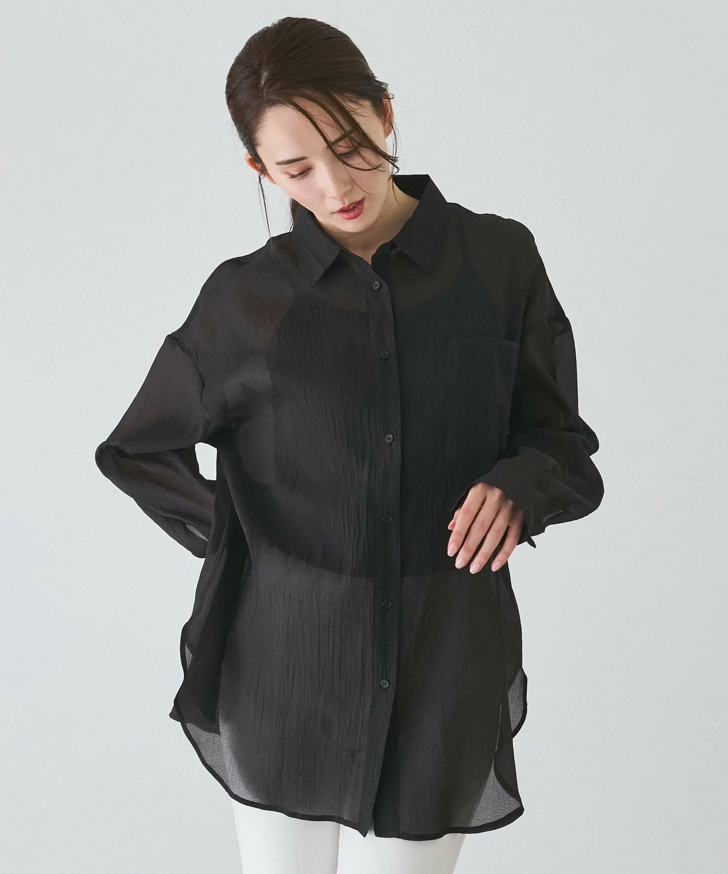 Прозрачная рубашка, идеально подходящая для весны и лета.
