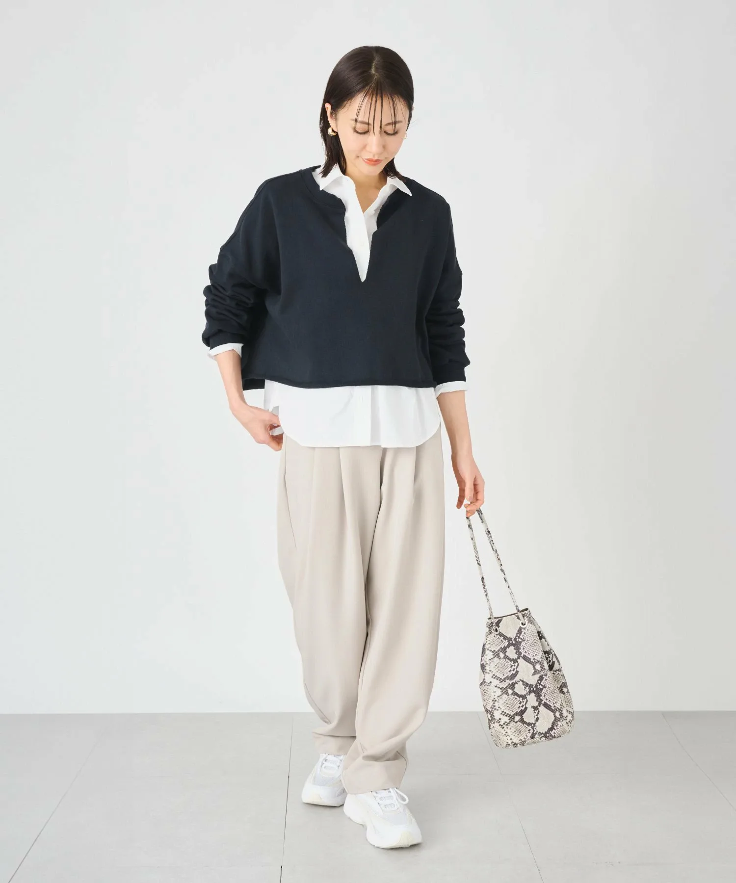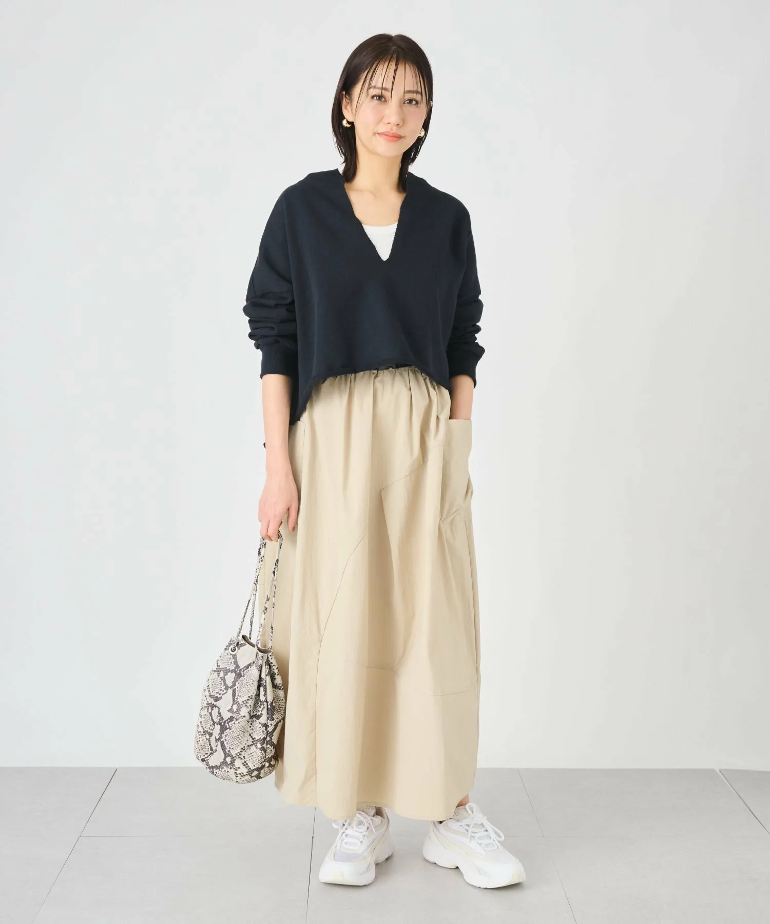 Модель[Серо-бежевый/Серо-меланжевый] Размер: Свободный Рост модели: 167 см[Черно-синий] Размер: Свободный Рост модели: 164 см