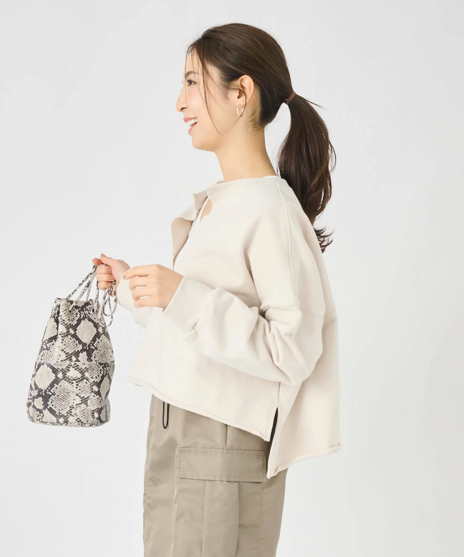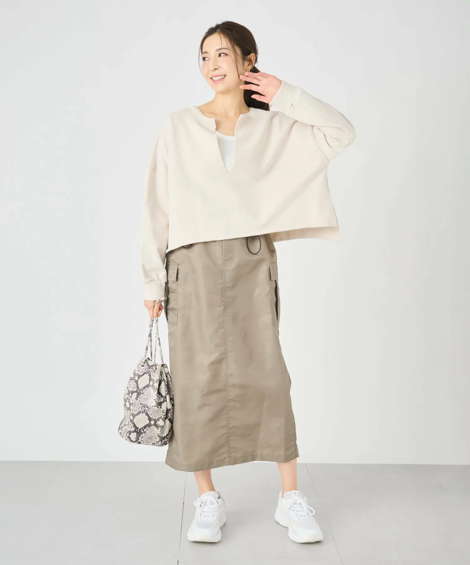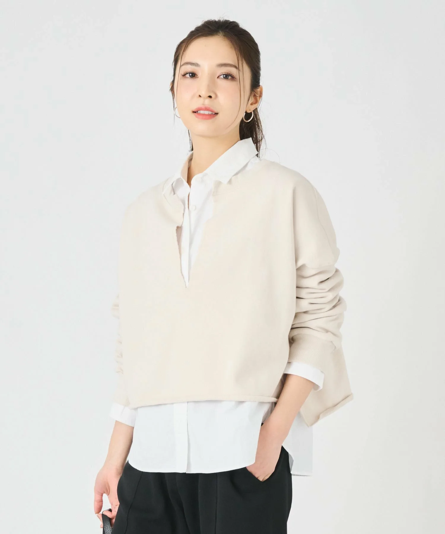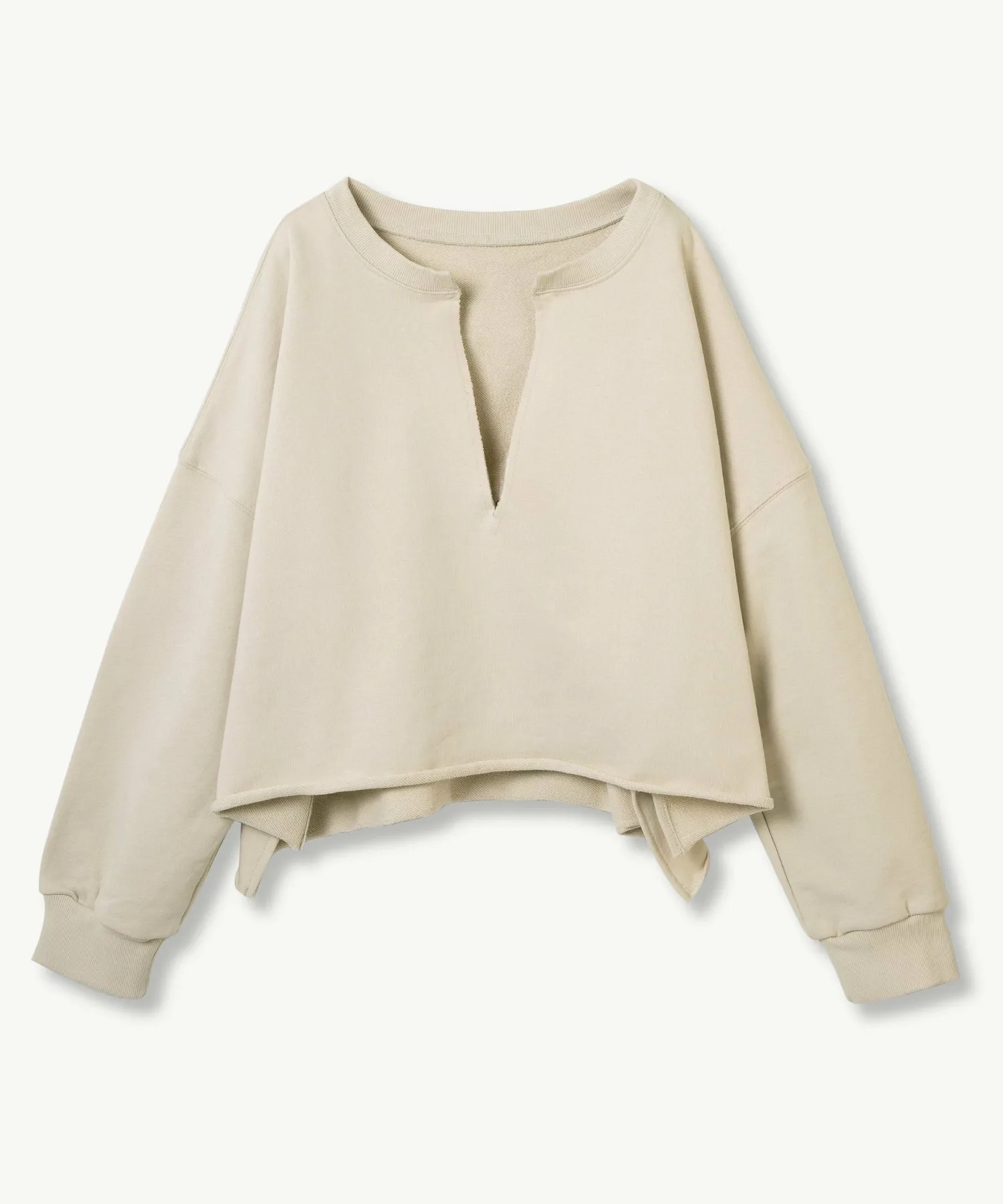 ДизайнГлубокий V-образный вырез создает эффект стройности вокруг лица, а свободный силуэт с достаточной шириной также помогает подчеркнуть вашу фигуру.Кроме того, короткая длина с умеренным различием в разрезах сзади и по бокам придает ей изысканный вид♪ МатериалИзготовлена из умеренно плотного флисового материала, который подходит для ношения круглый год.Ткань толстовки изготовлена из 100% хлопка, который обладает высокой впитываемостью и приятен на ощупь.Еще одна замечательная особенность – она не мнется даже после длительного ношения. ◎