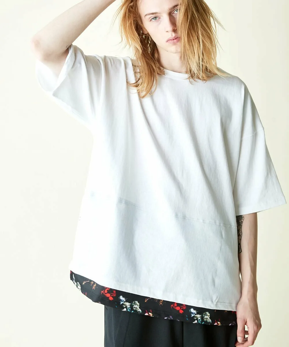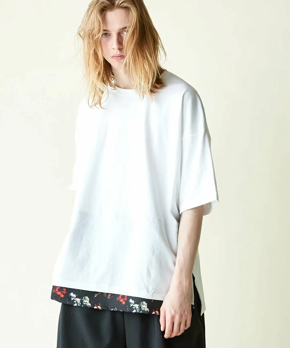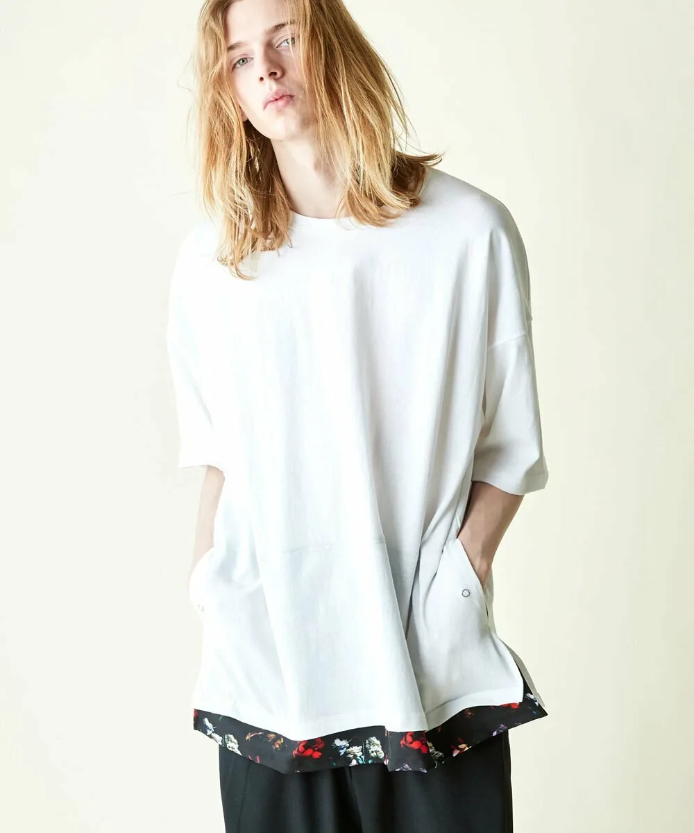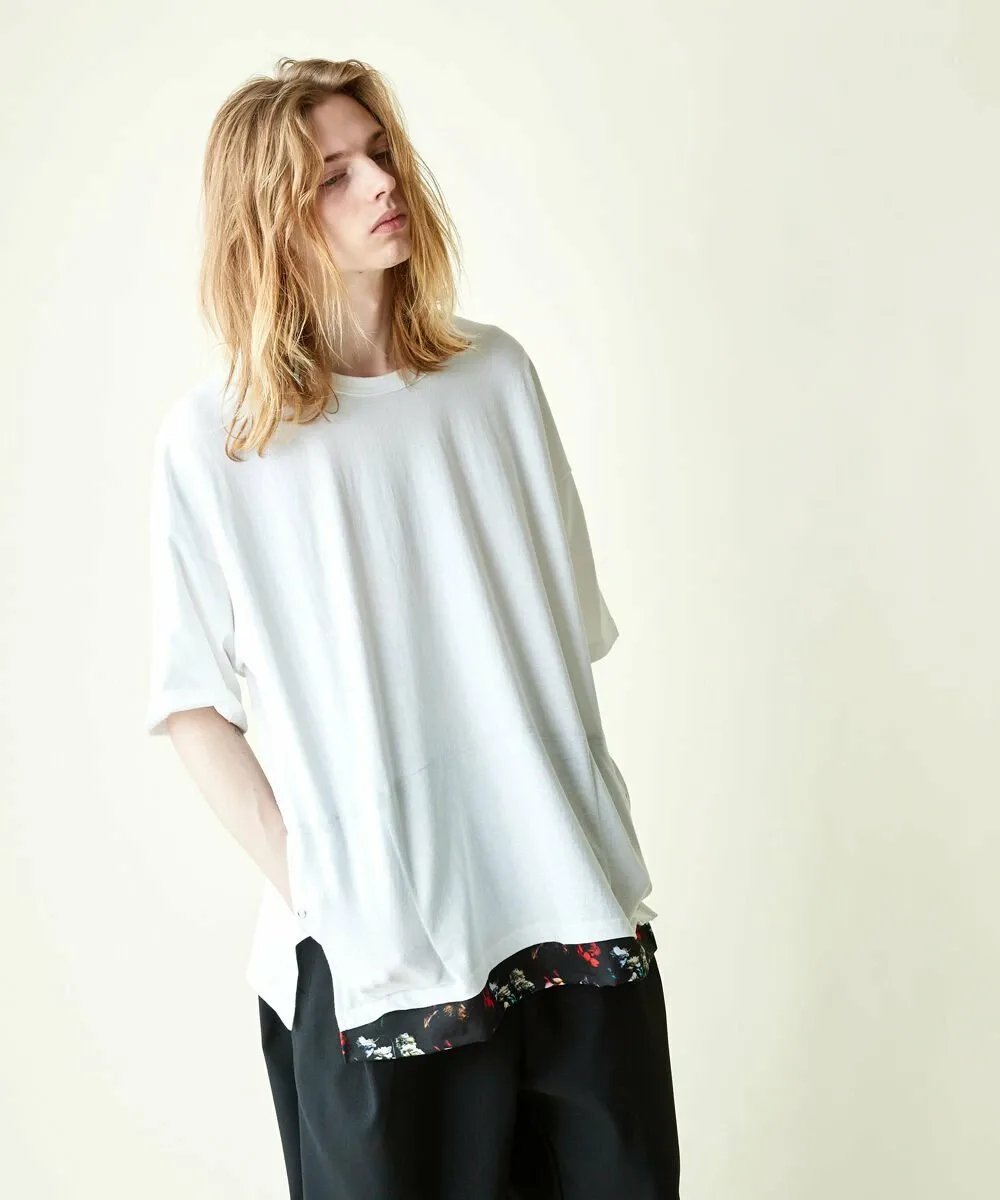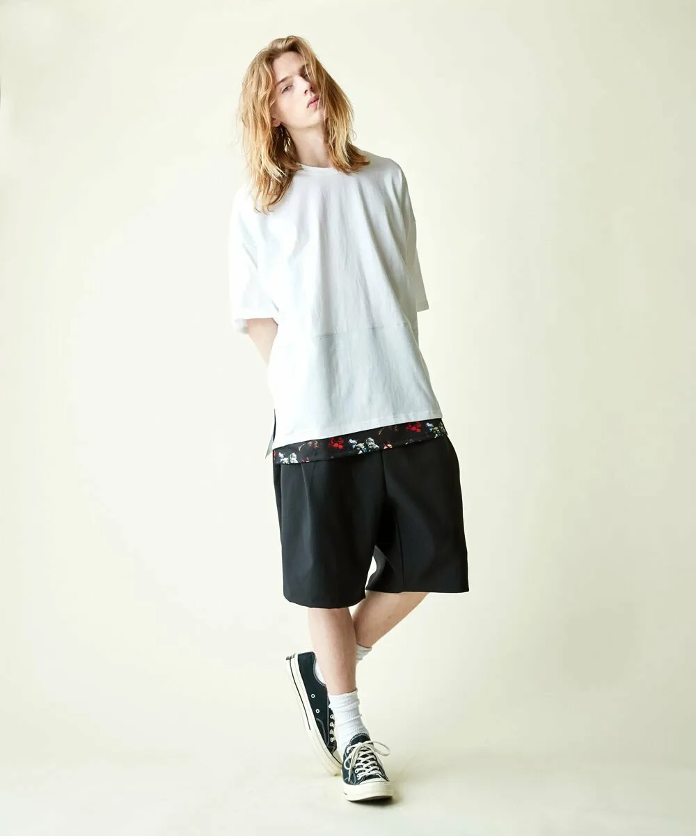 Этот топ с широкими штанинами имеет отдельную ткань по низу, создавая многослойный образ.
